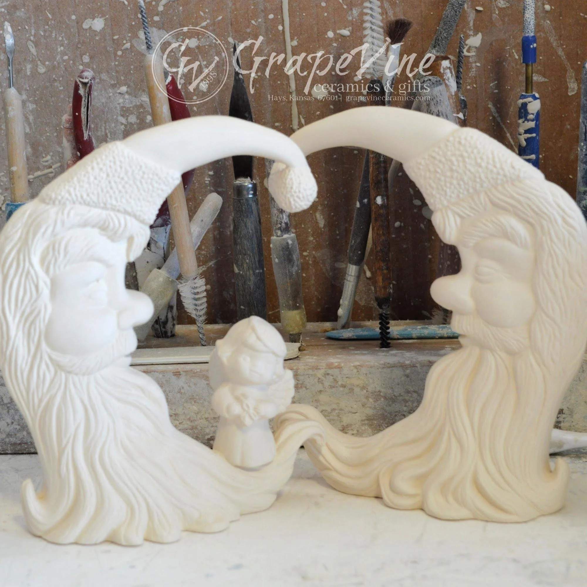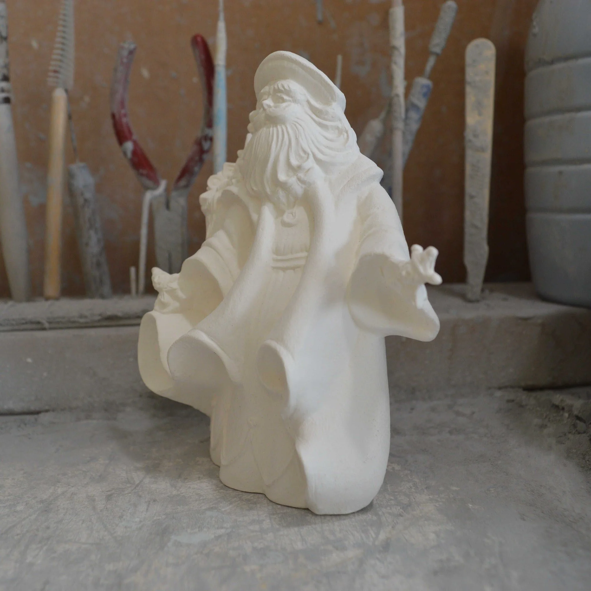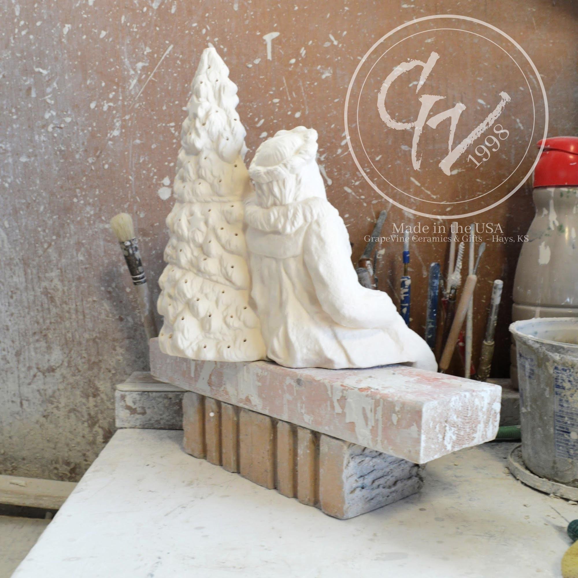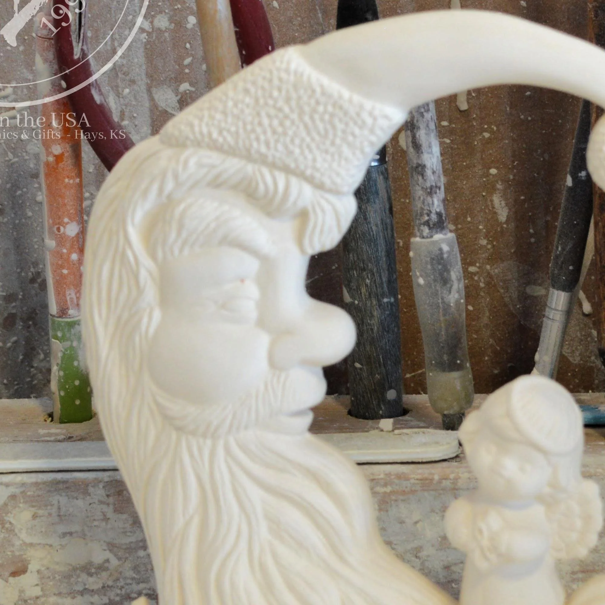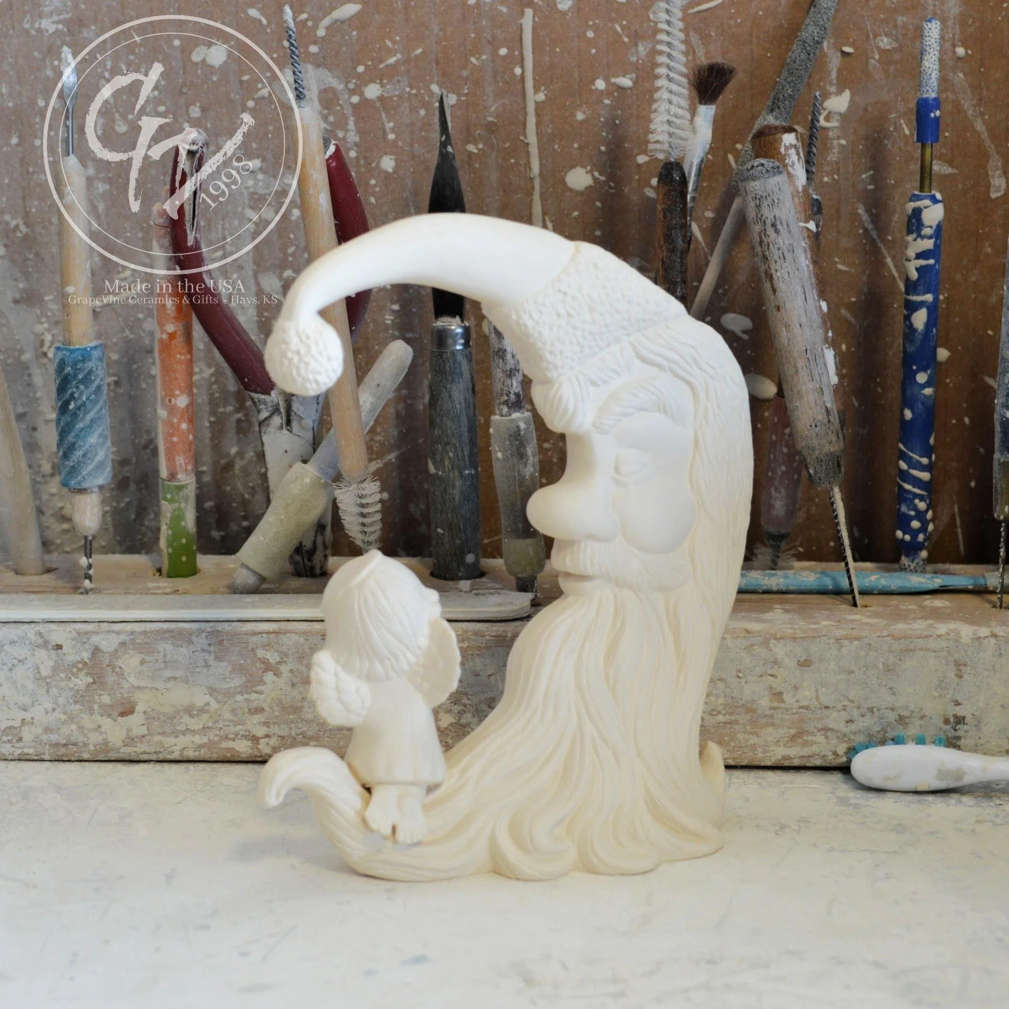 Ready-to-Paint Ceramic: Santa Moon with Angel Figurine (Riverview 484)
