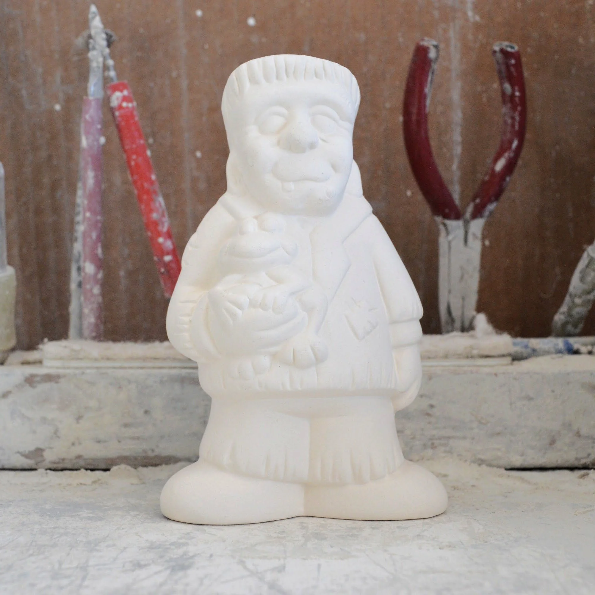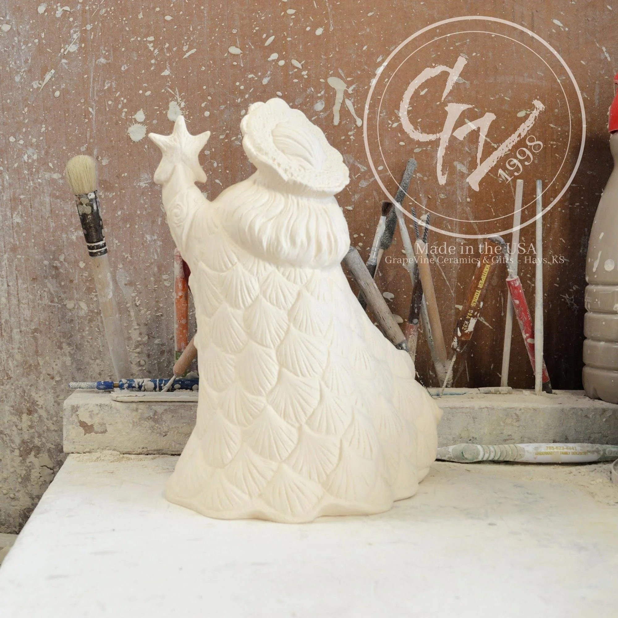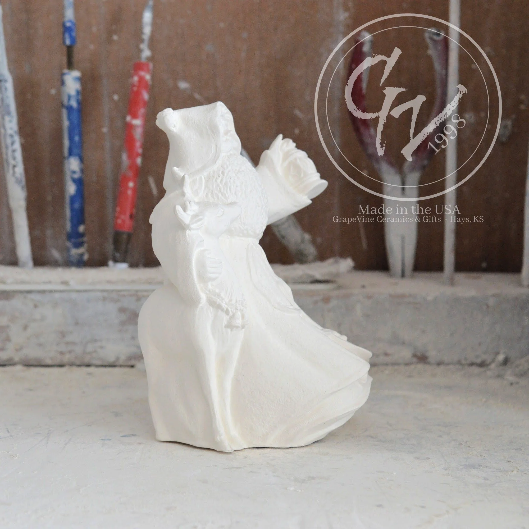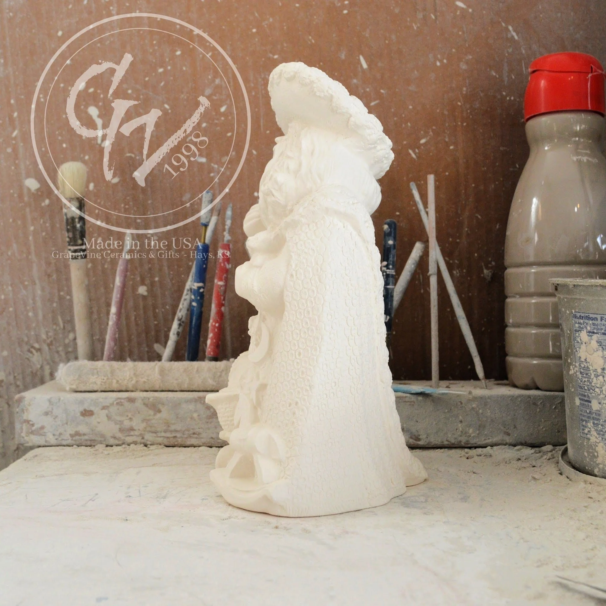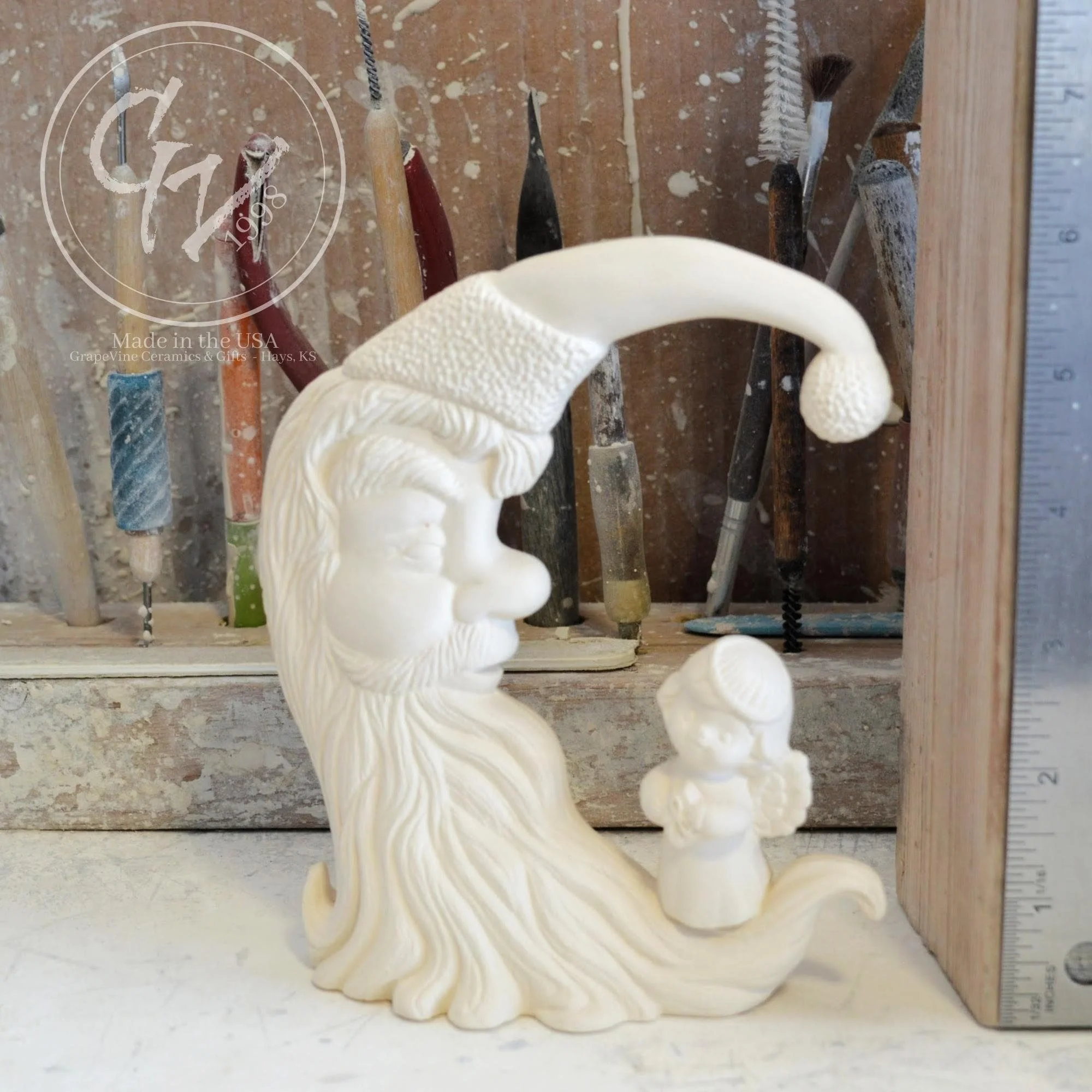 Ready-to-Paint Ceramic: Santa Moon with Angel Figurine (Riverview 484)
