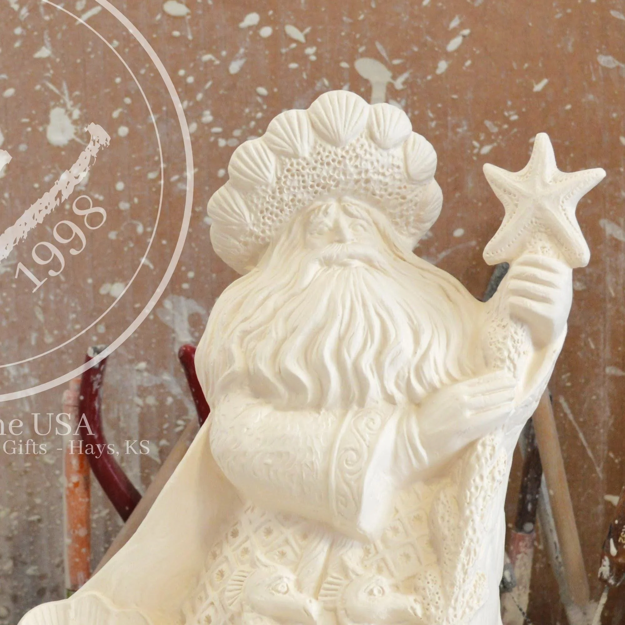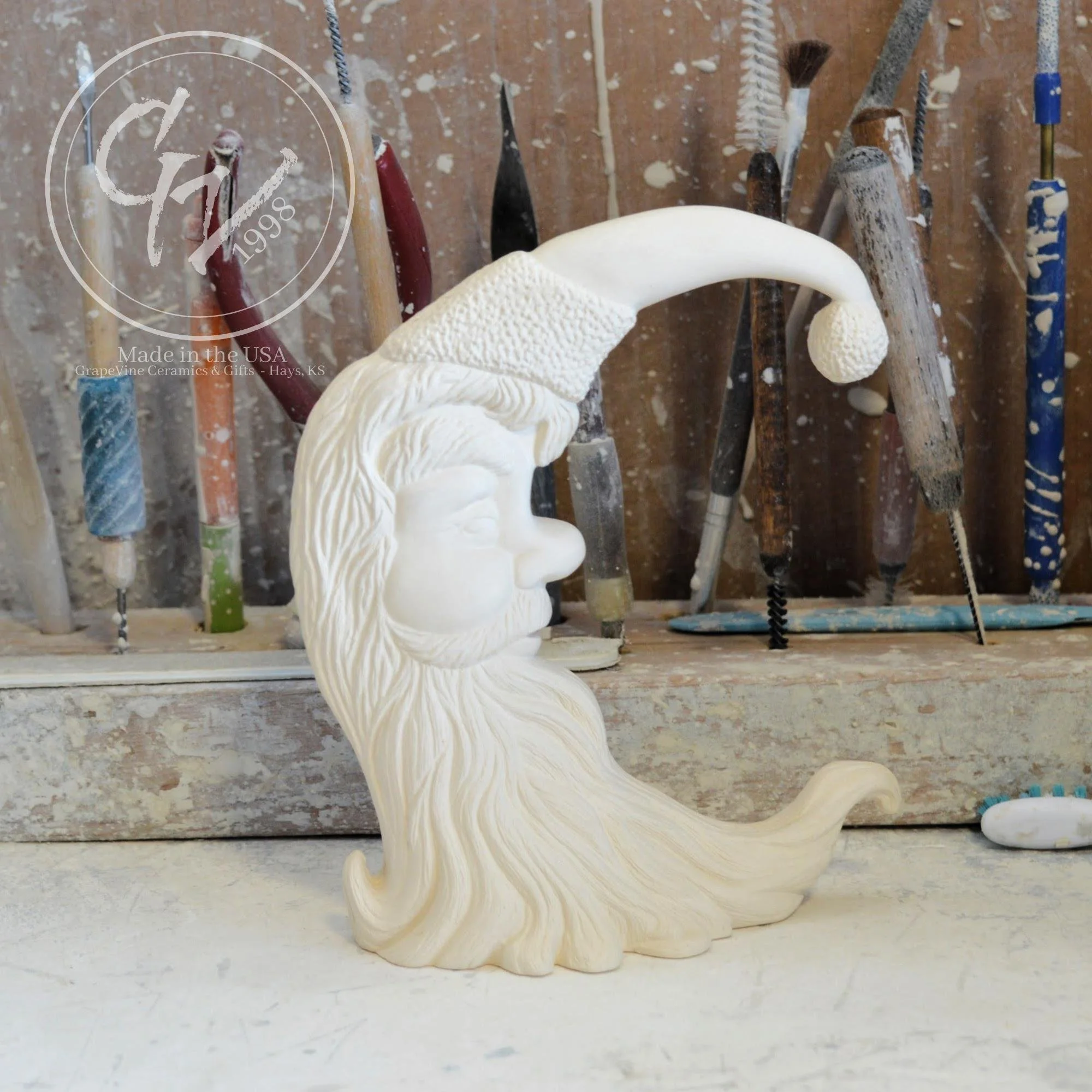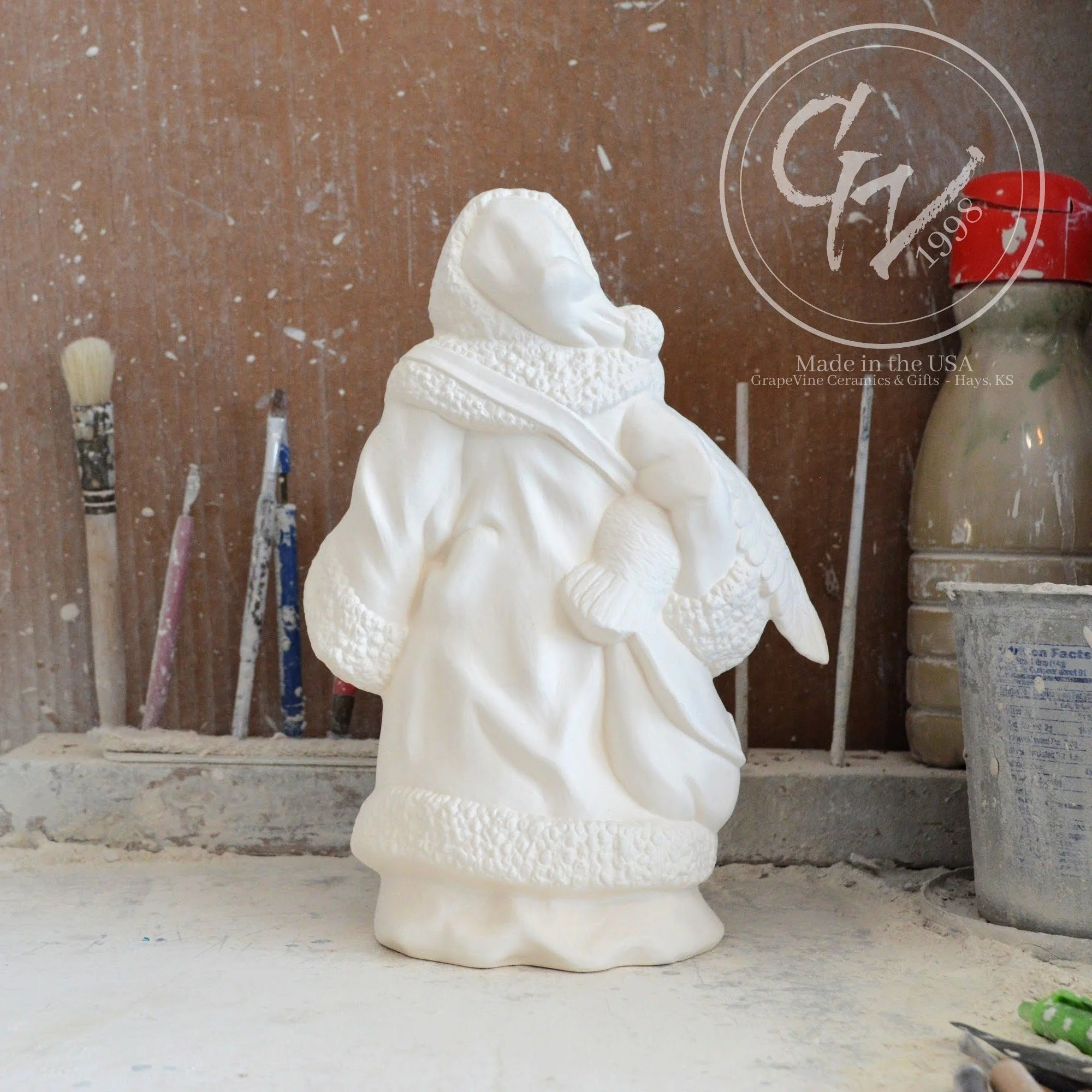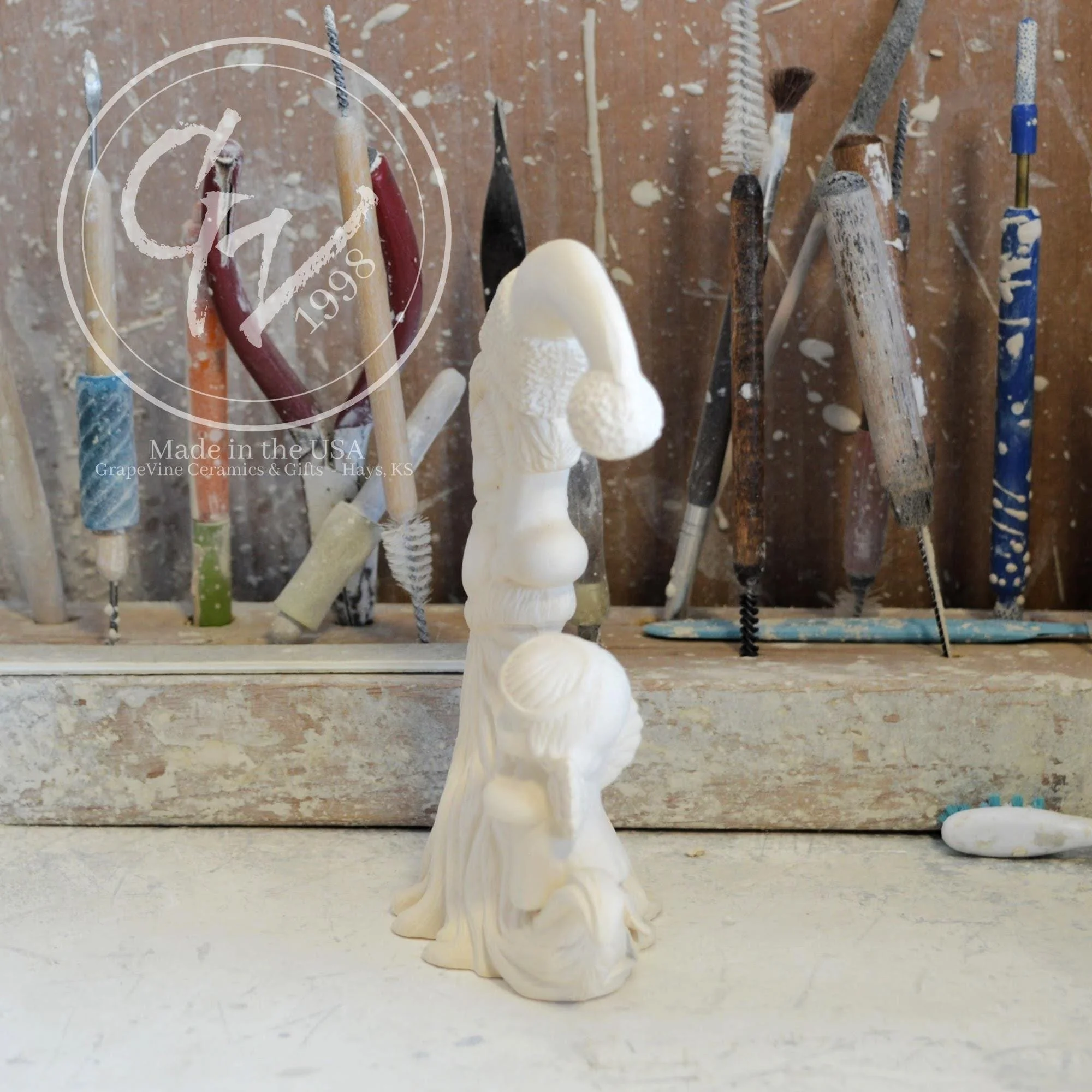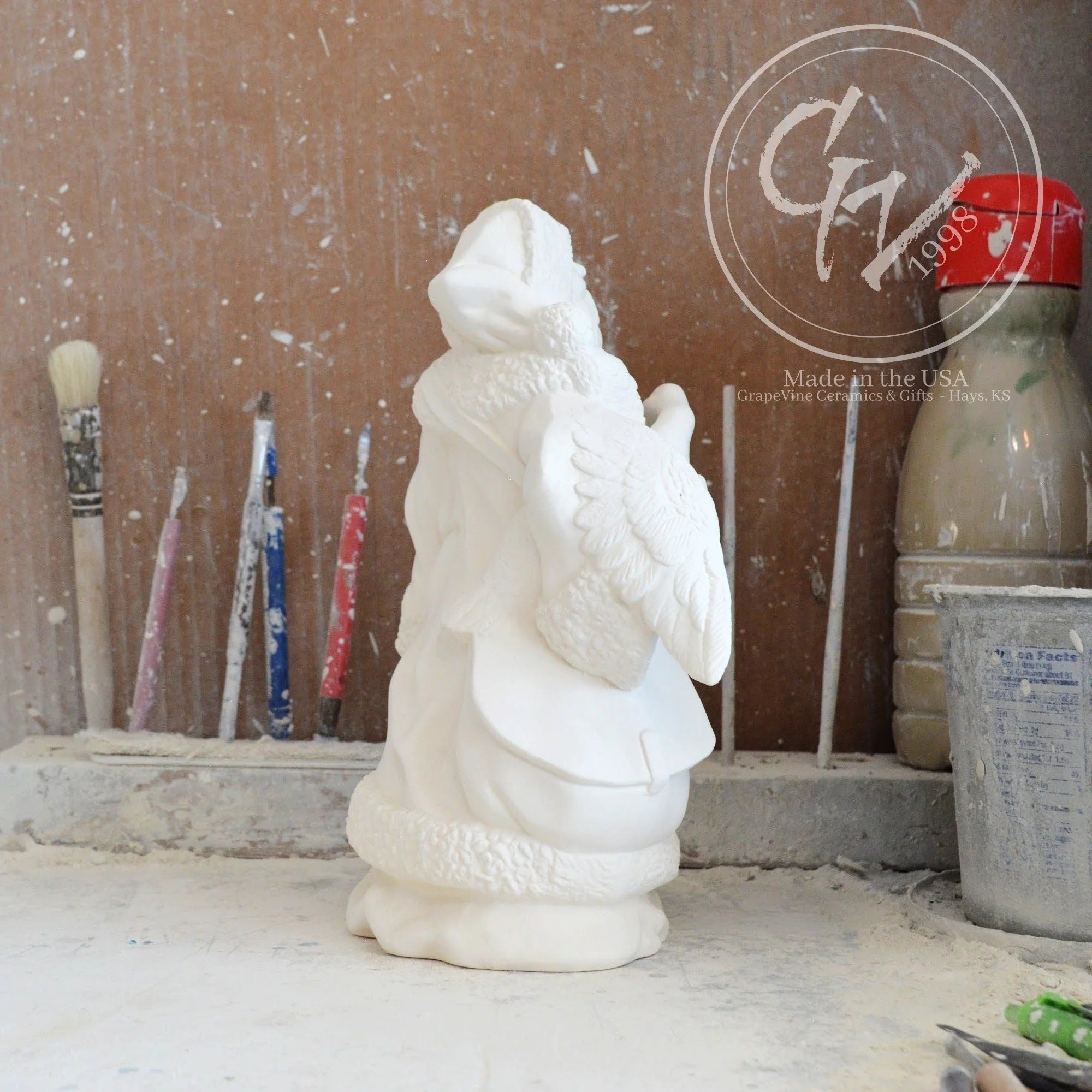 Ready-to-Paint Ceramic: Santa Moon with Angel Figurine (Riverview 484)