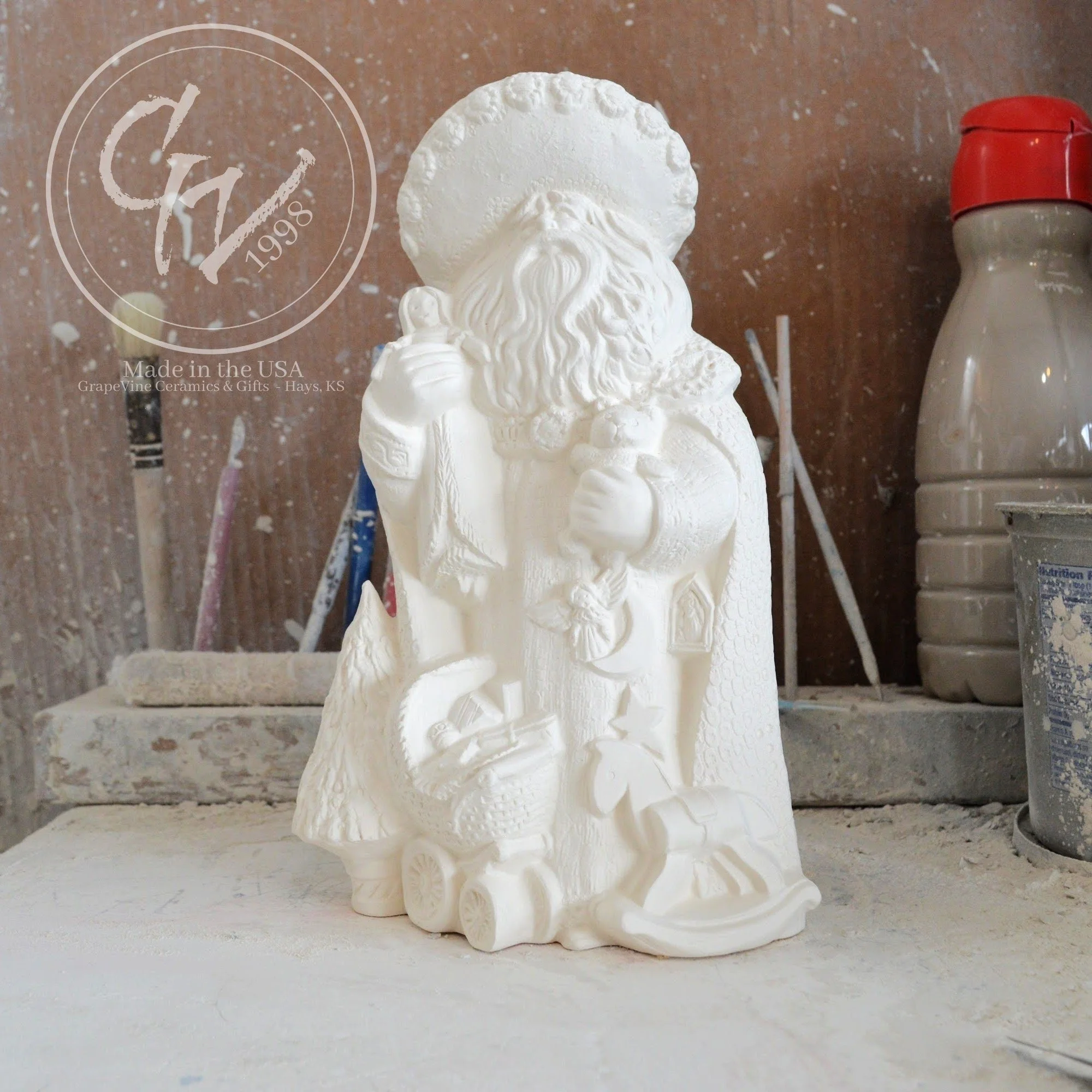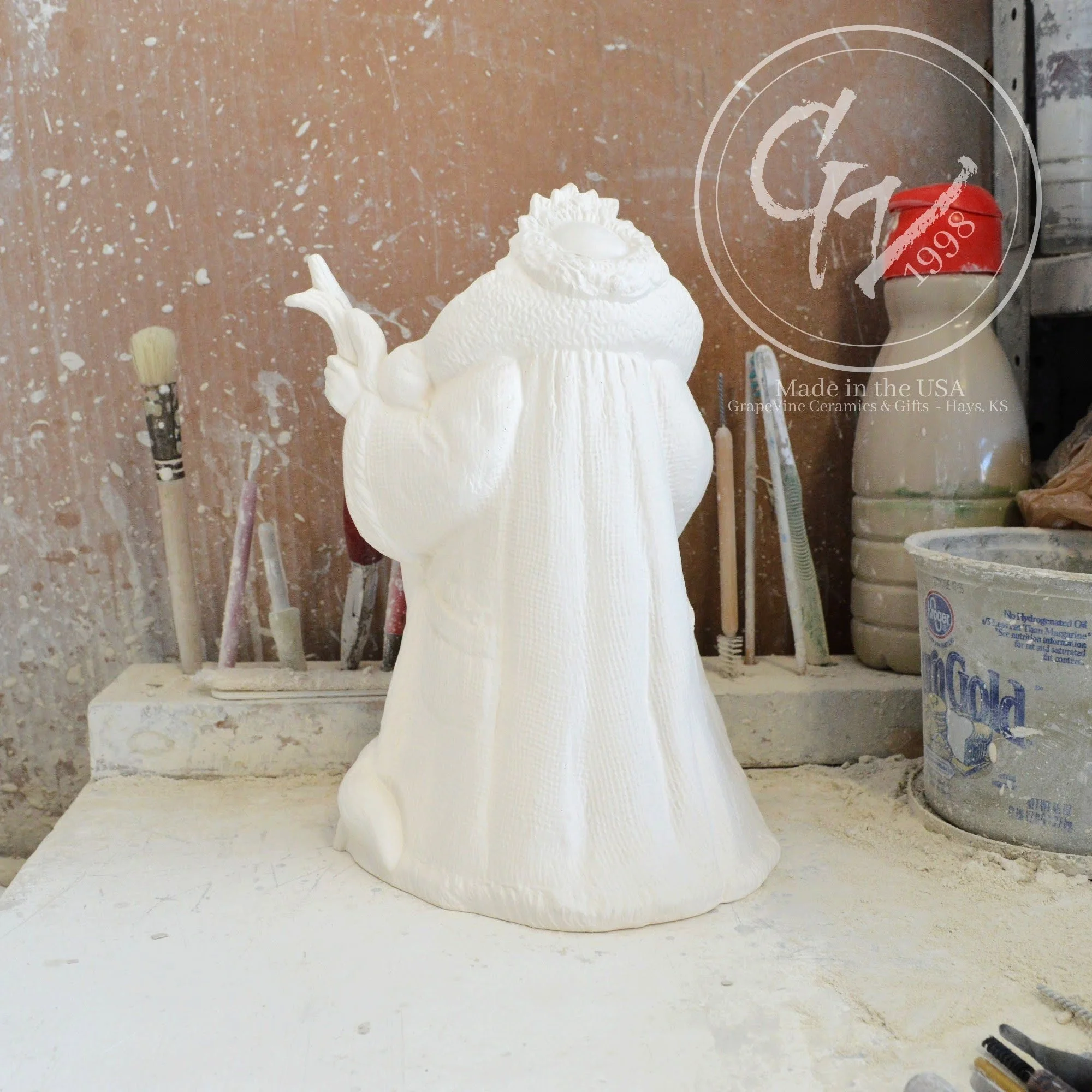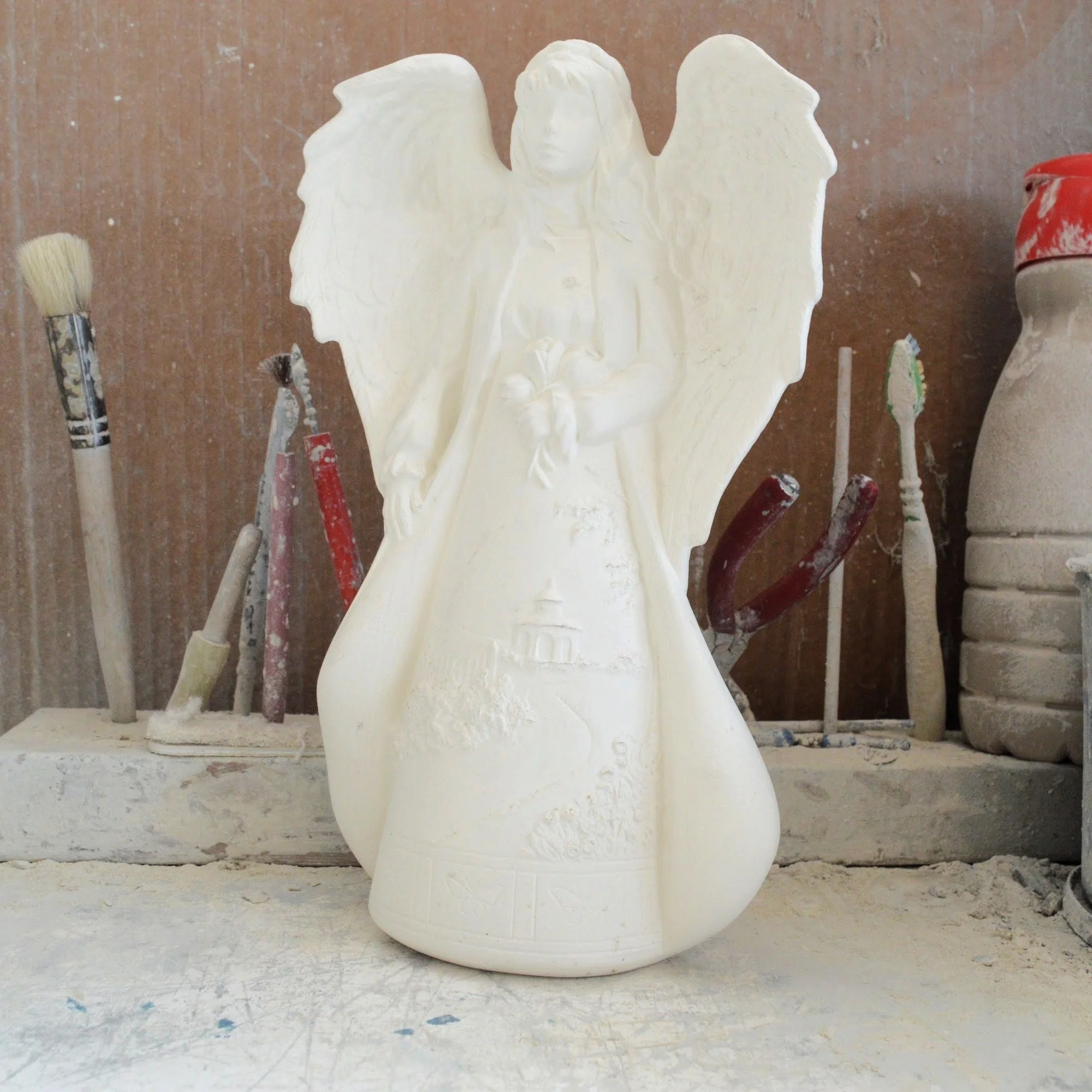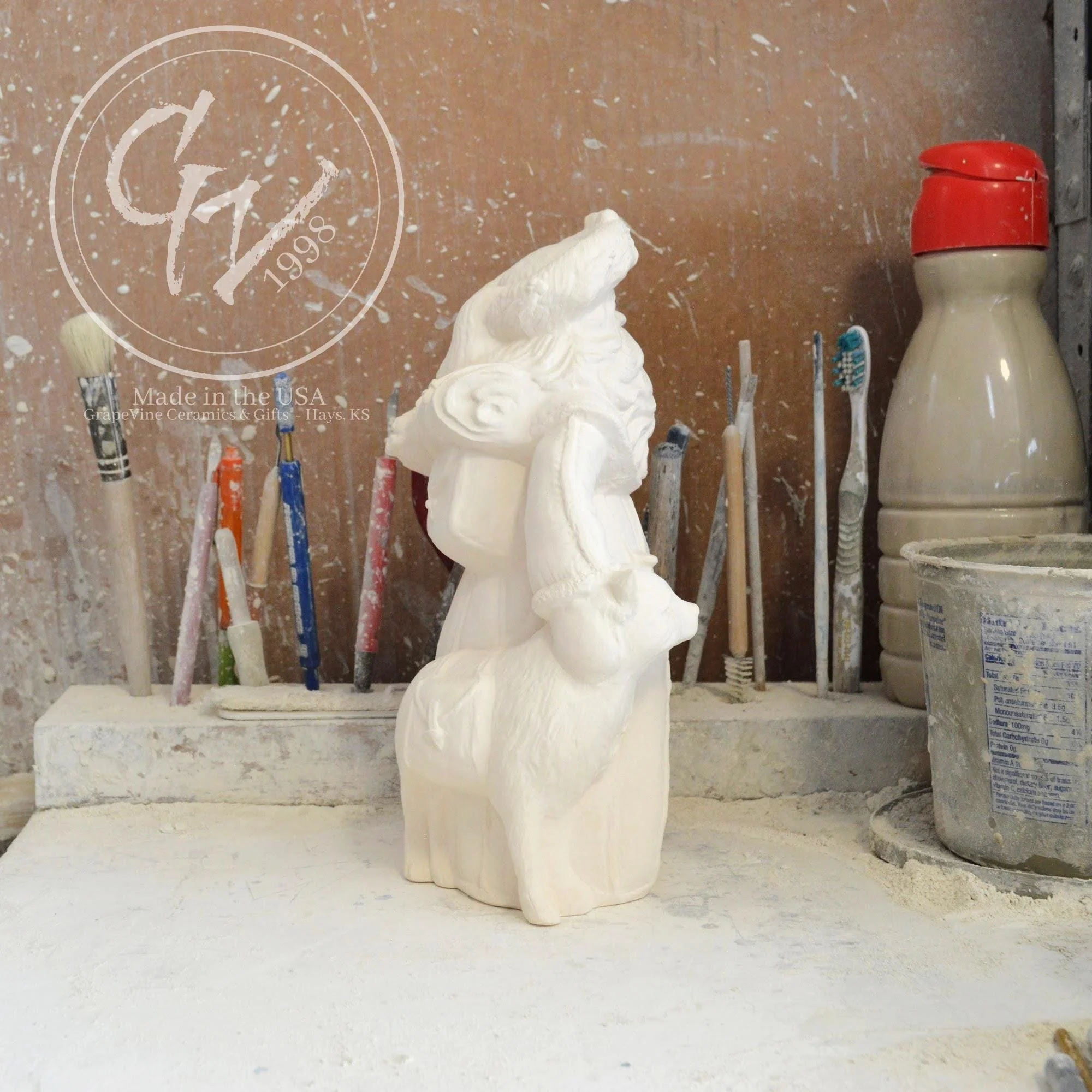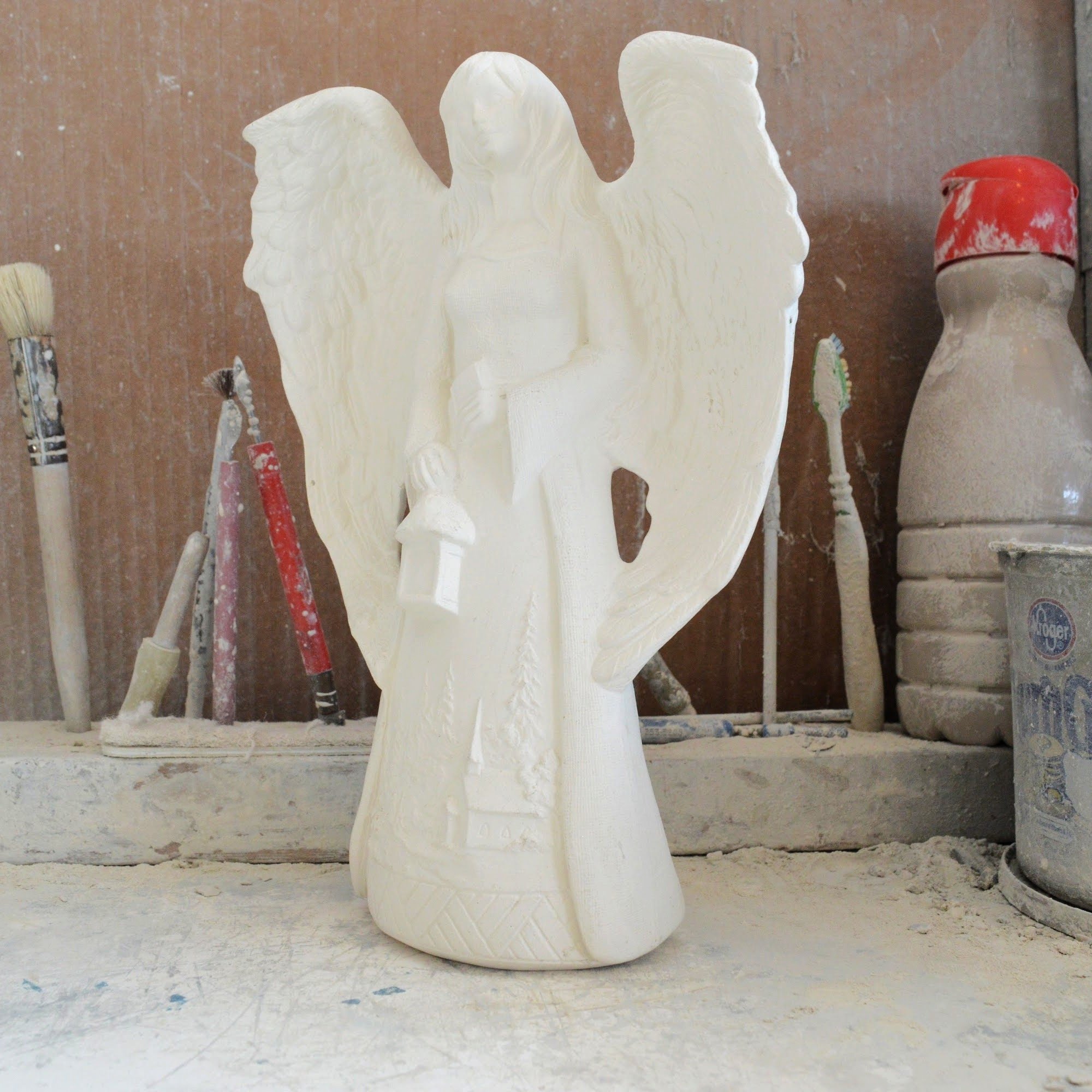 Ready-to-Paint Ceramic: Santa Moon with Angel Figurine (Riverview 484)