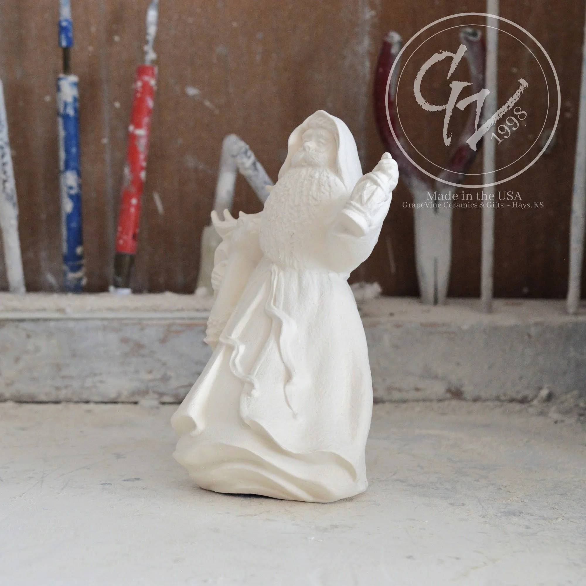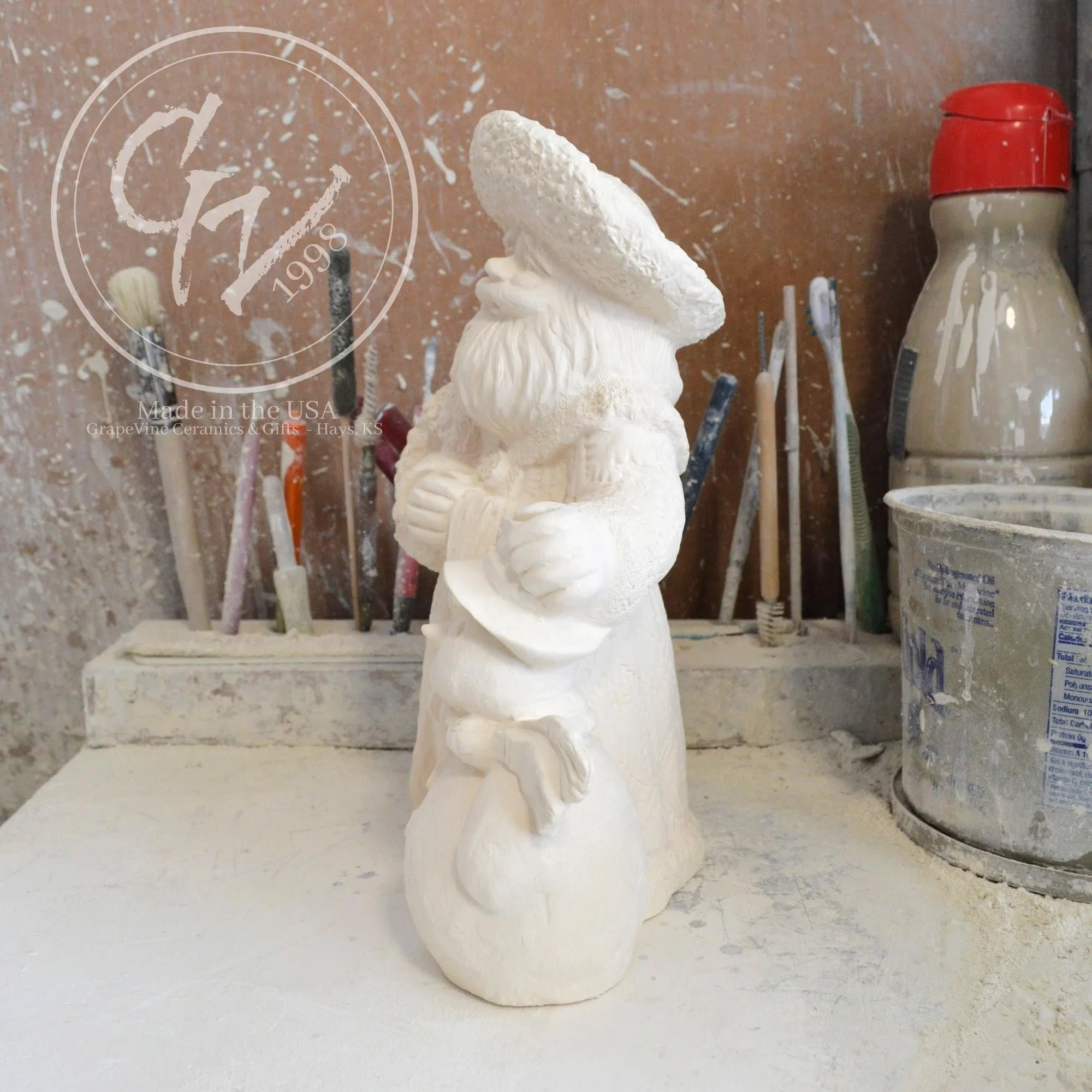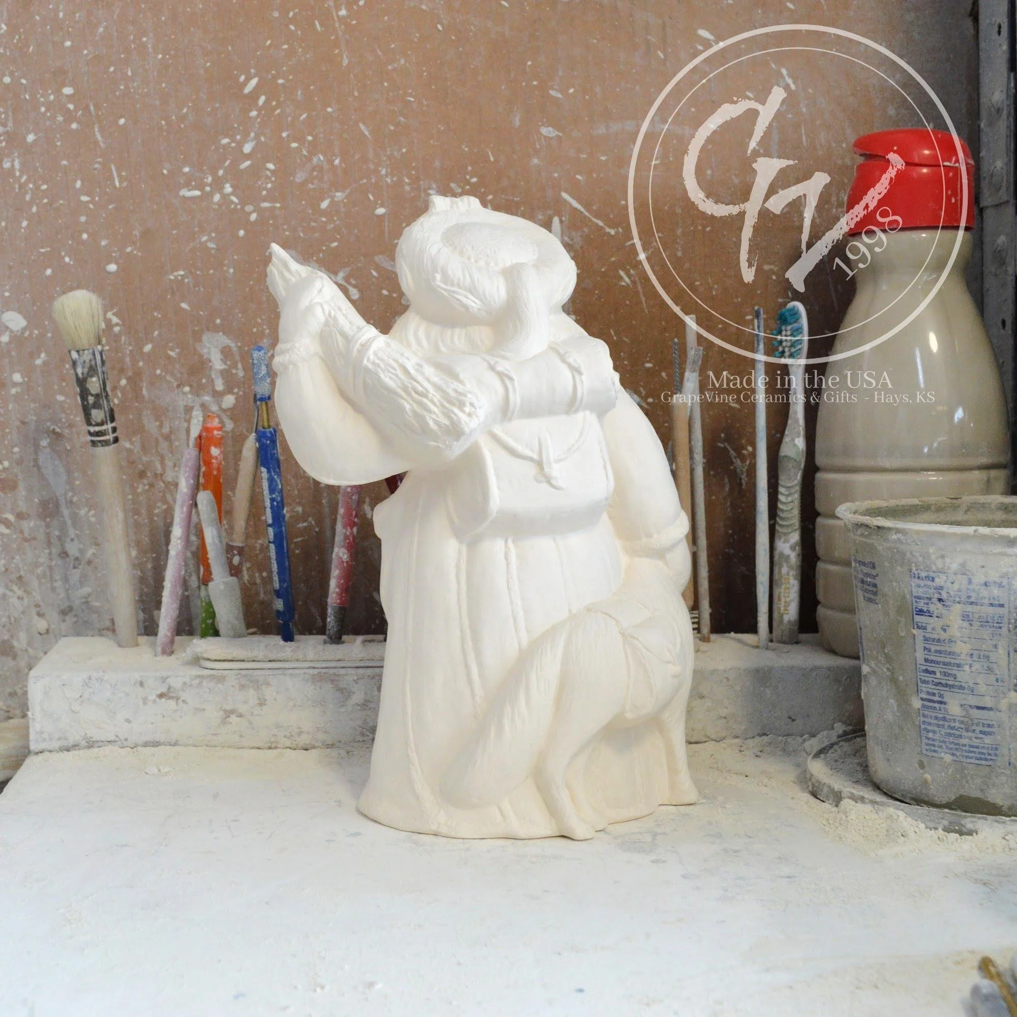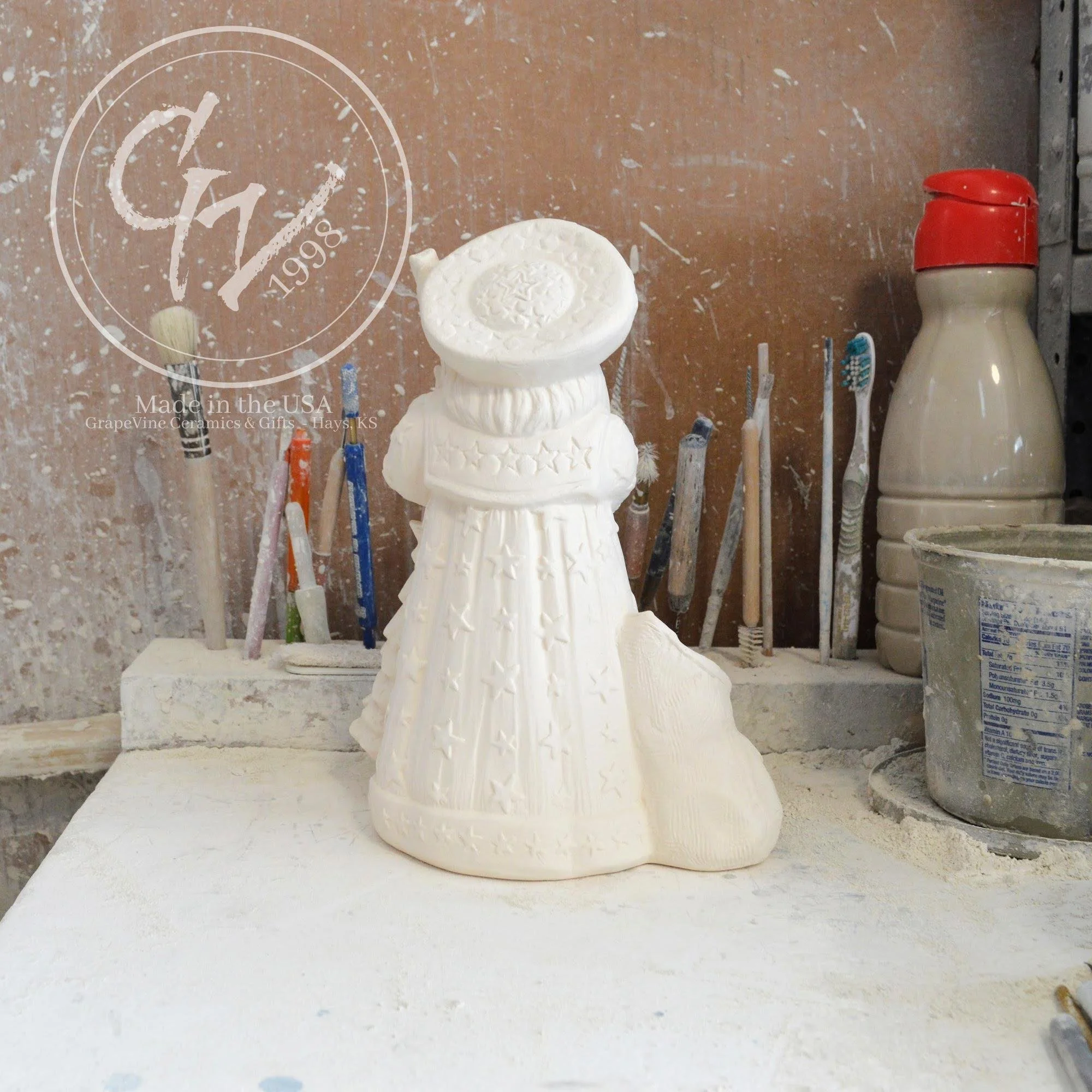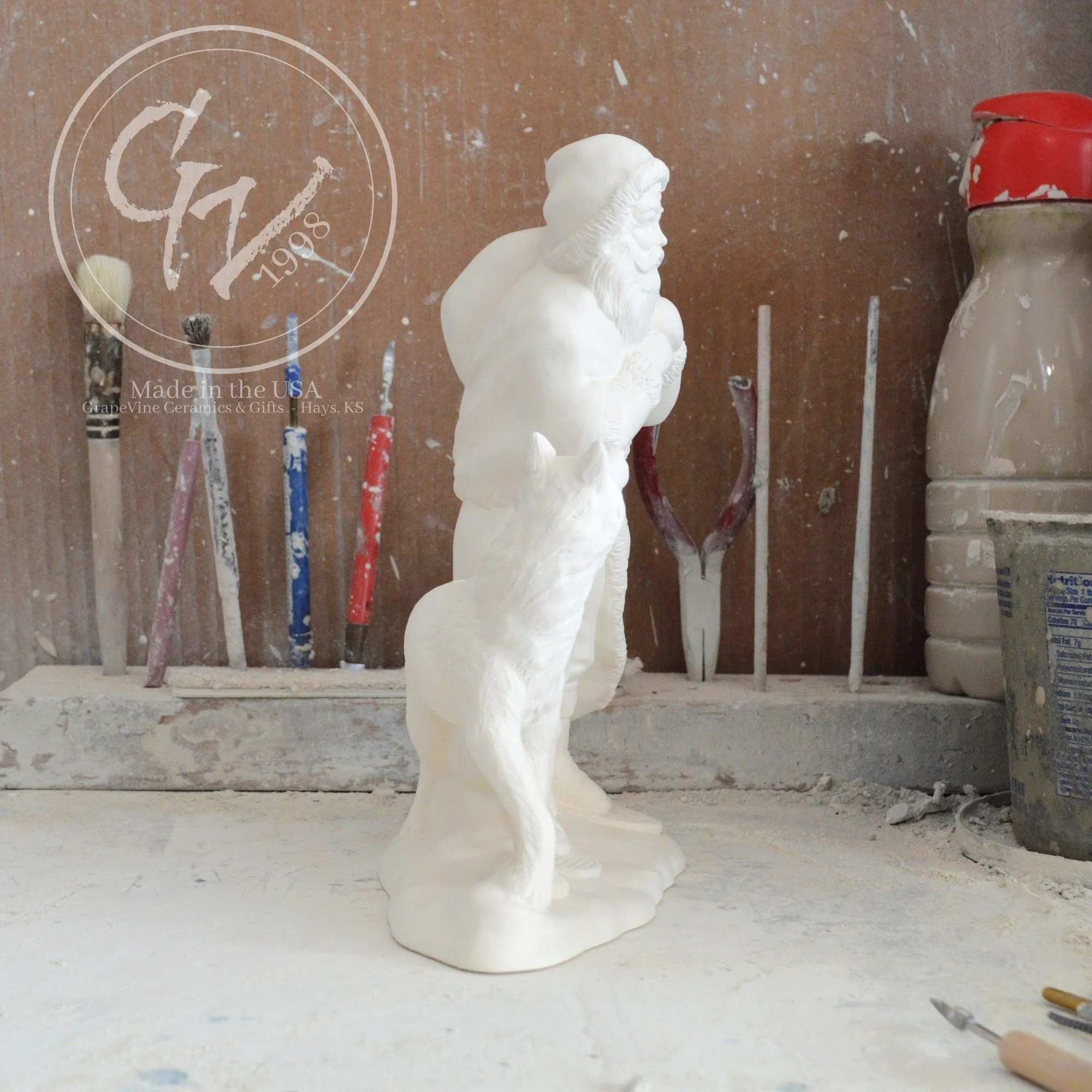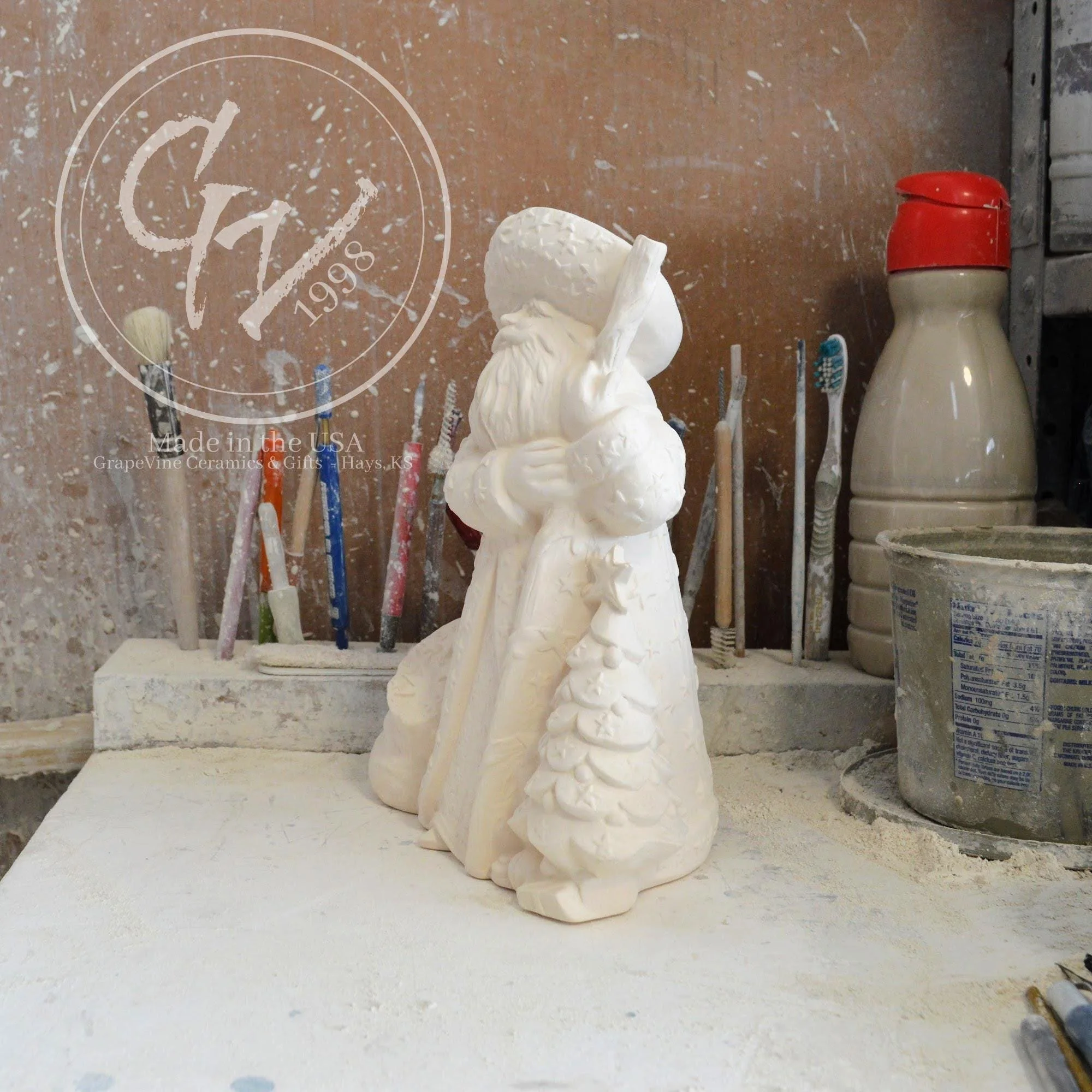 Ready-to-Paint Ceramic: Santa Moon with Angel Figurine (Riverview 484)