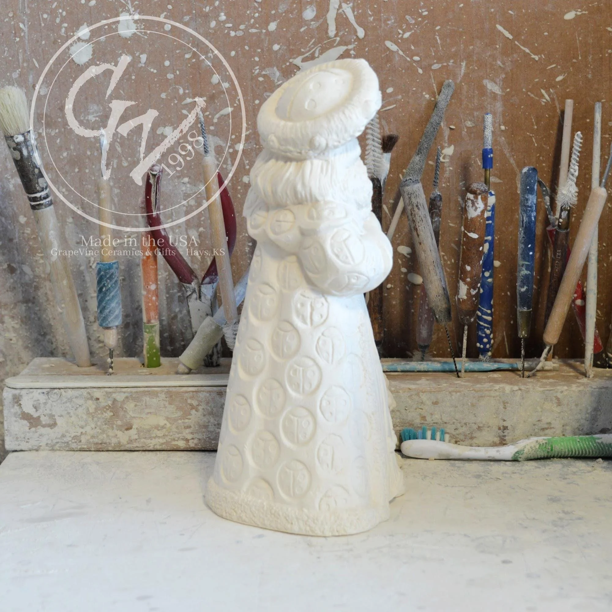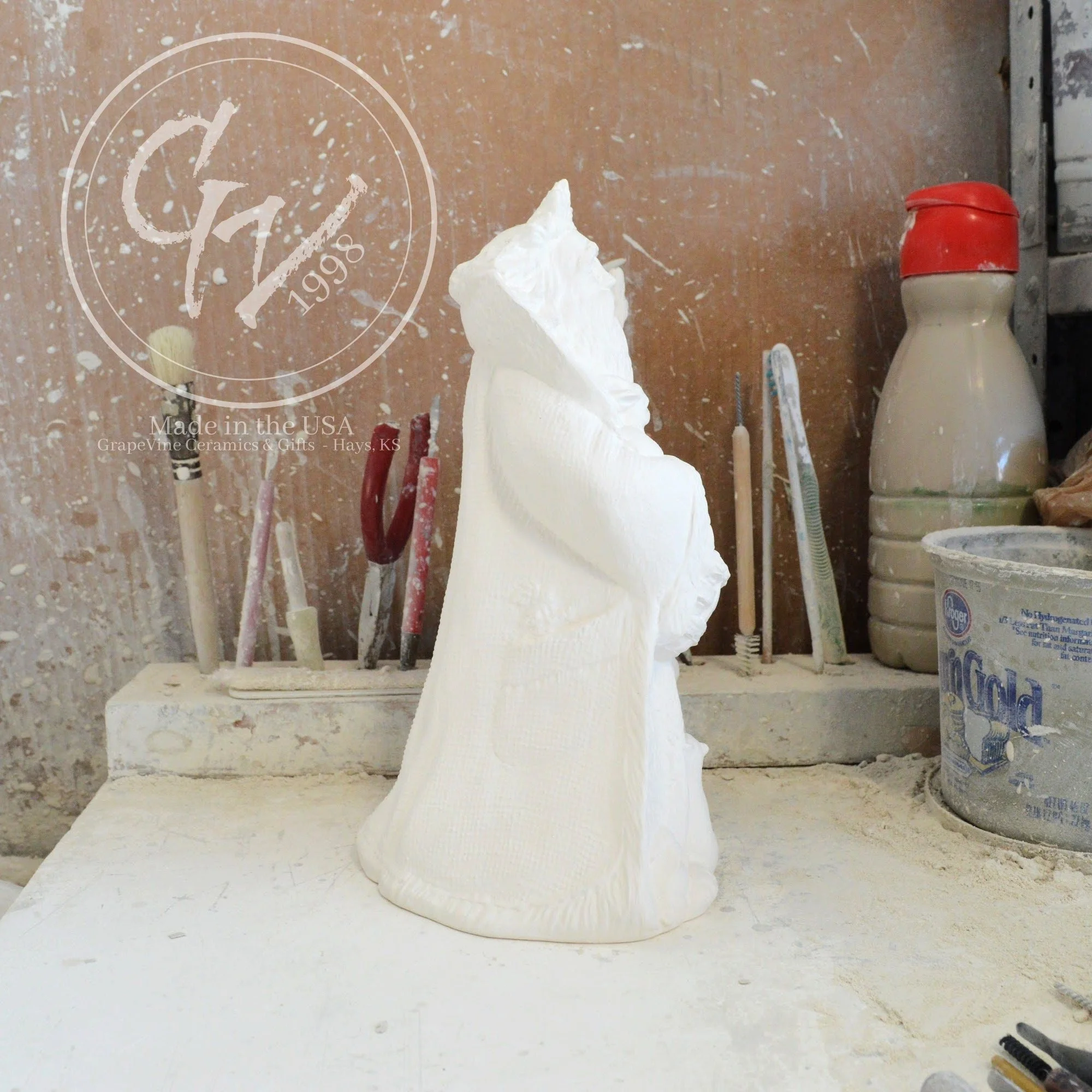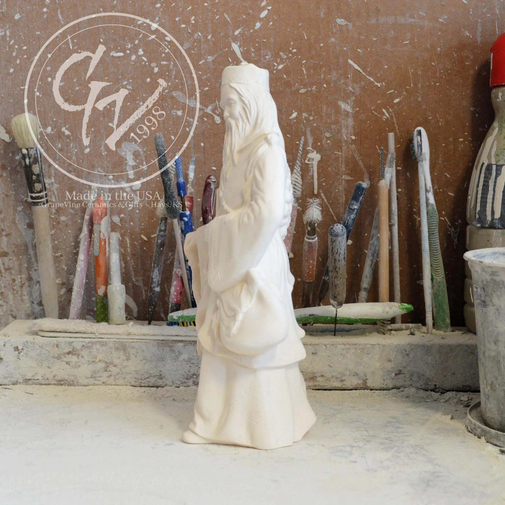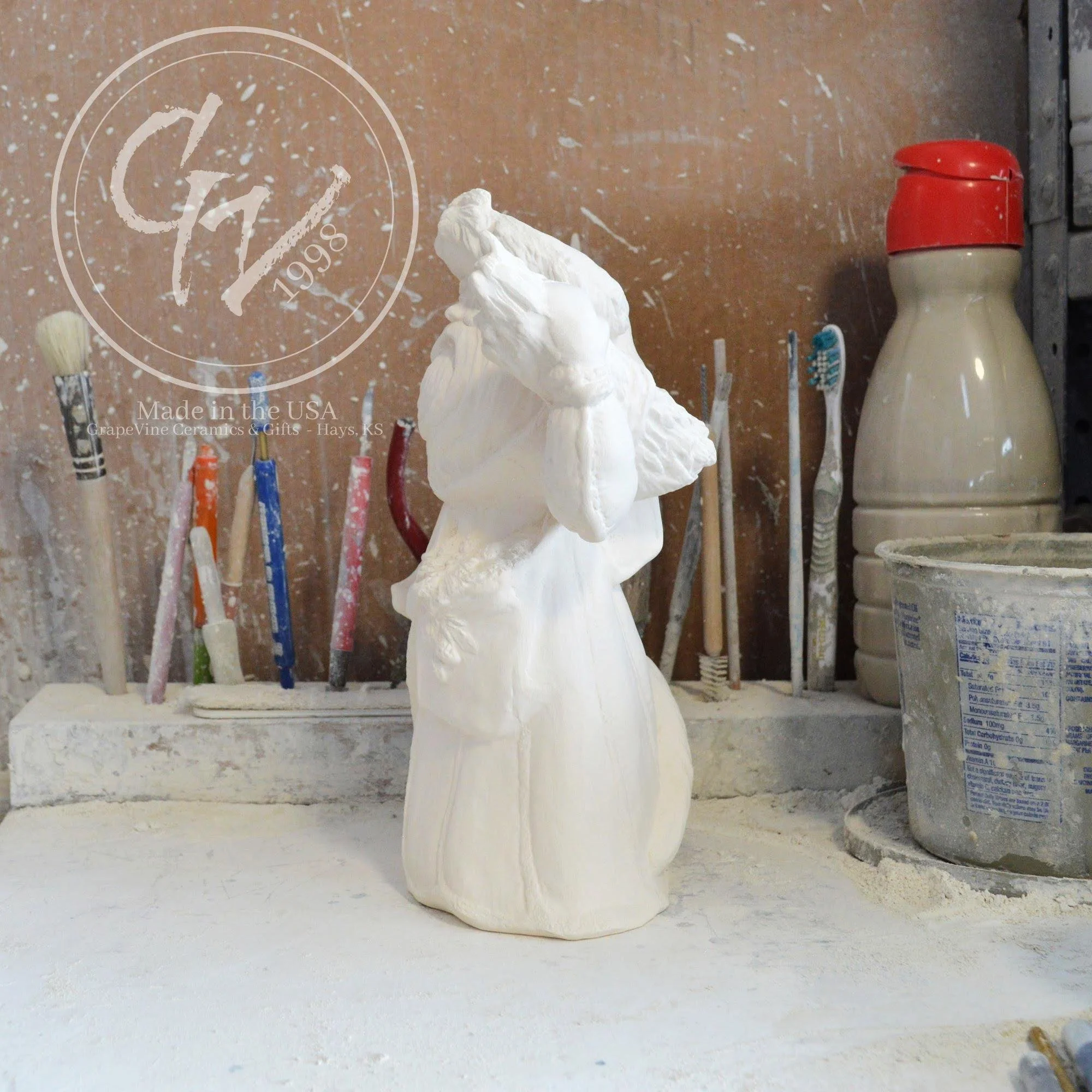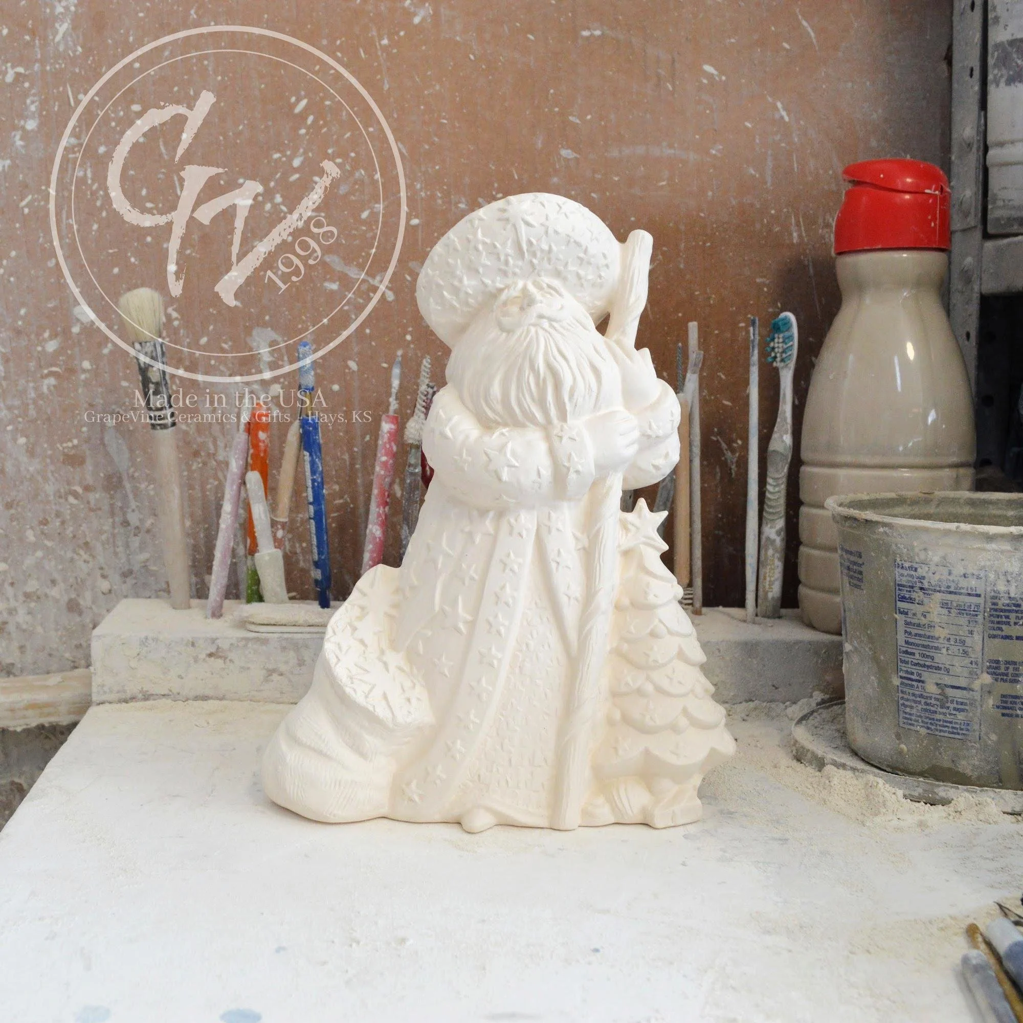 Ready-to-Paint Ceramic: Santa Moon with Angel Figurine (Riverview 484)