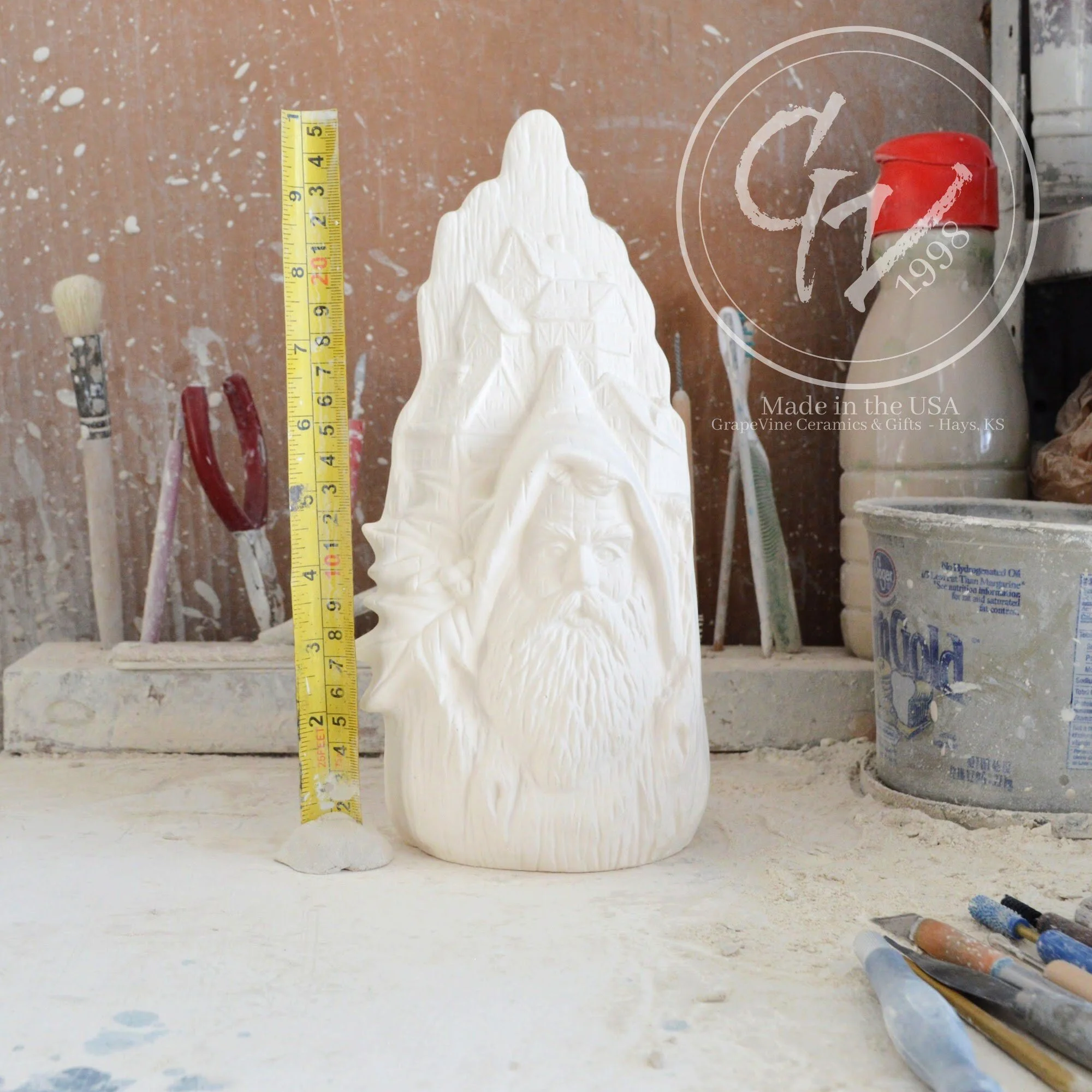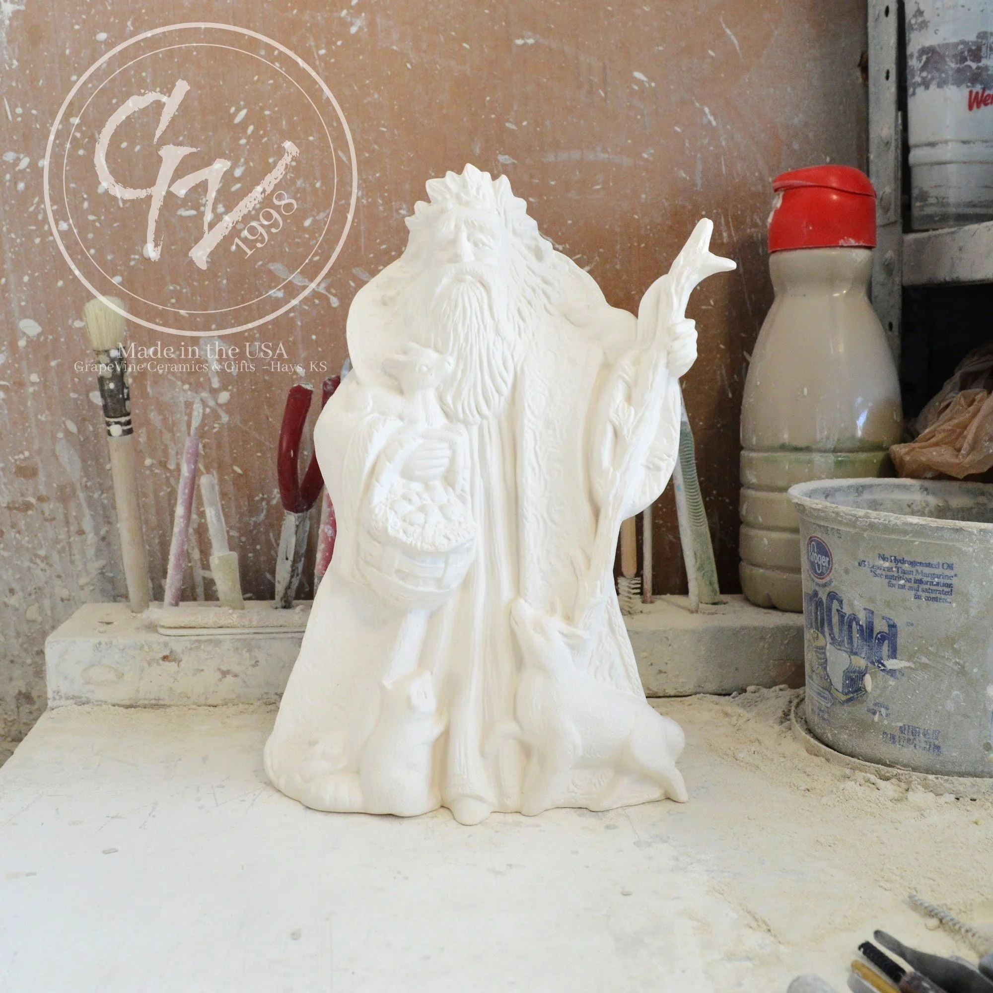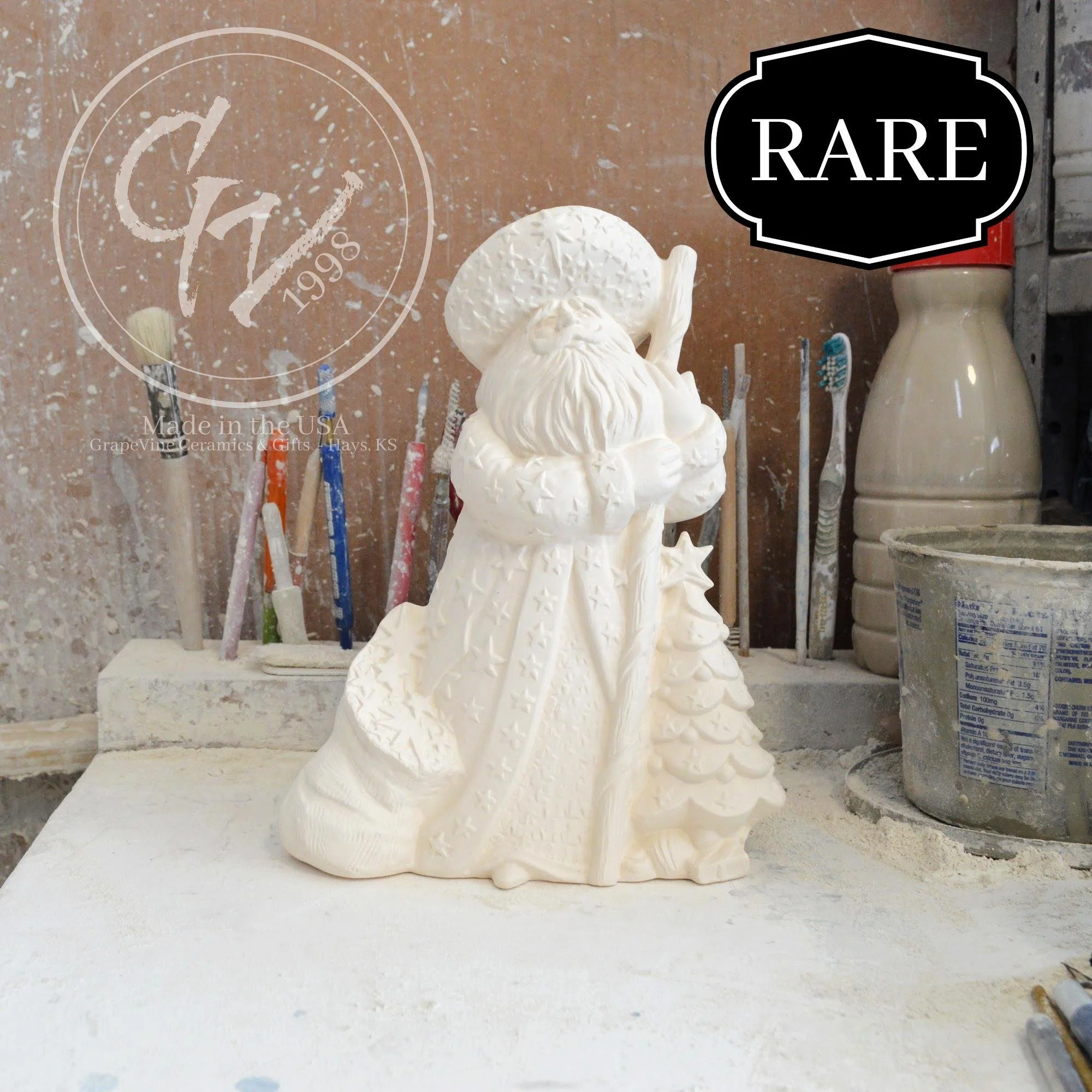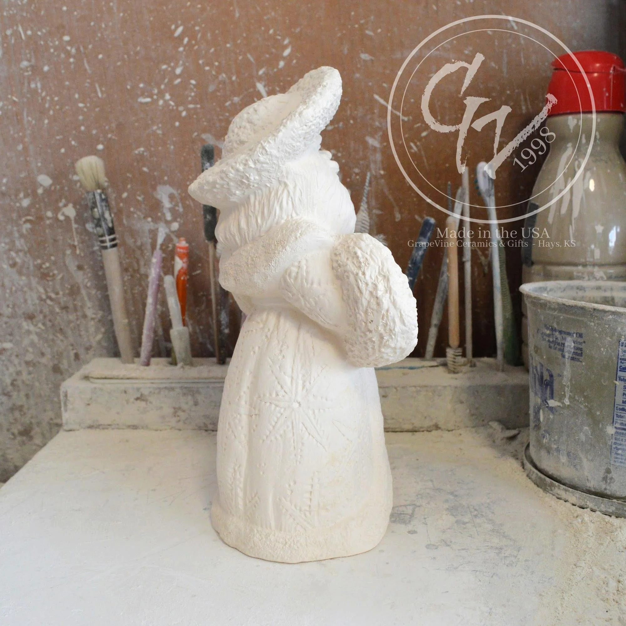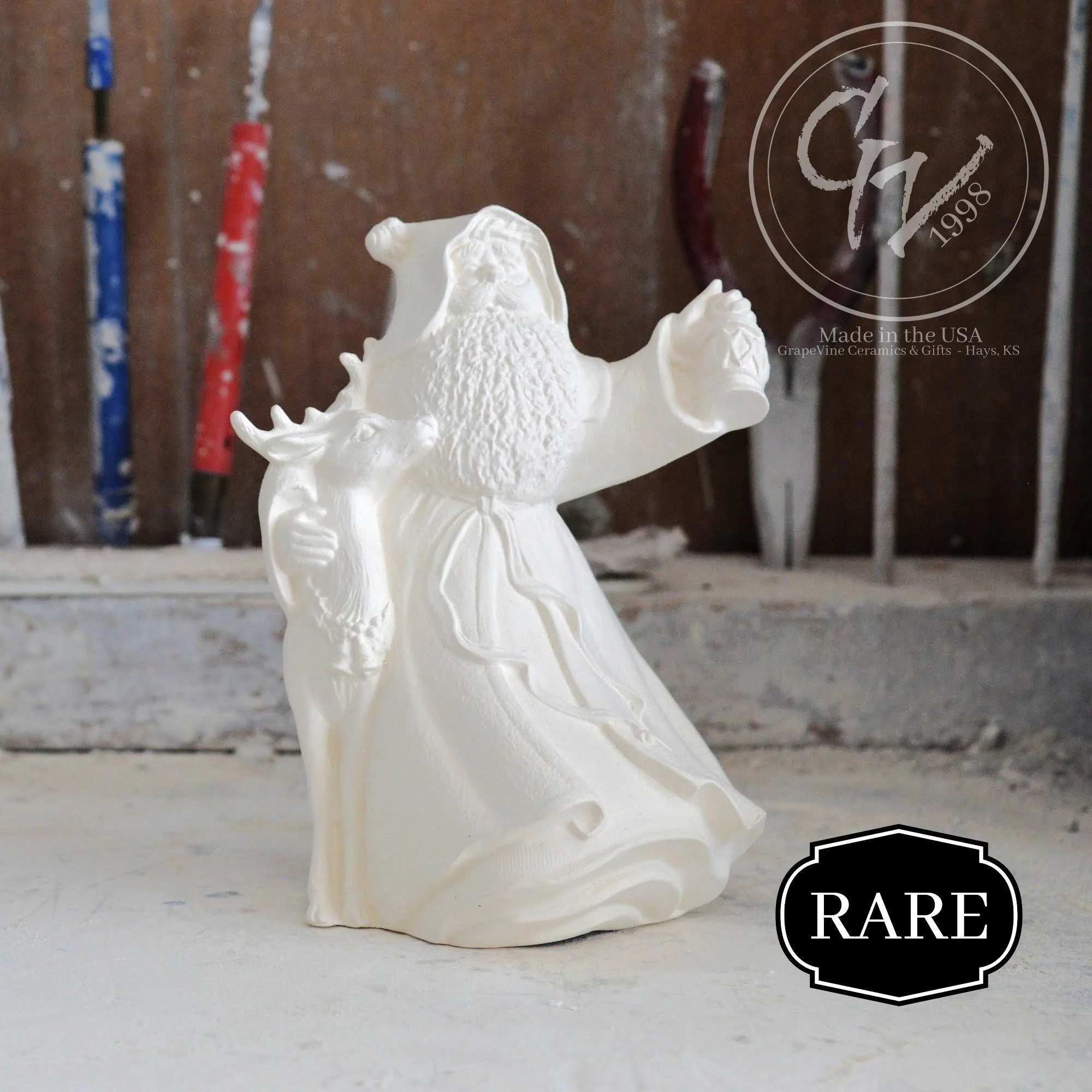 Ready-to-Paint Ceramic: Santa Moon with Angel Figurine (Riverview 484)