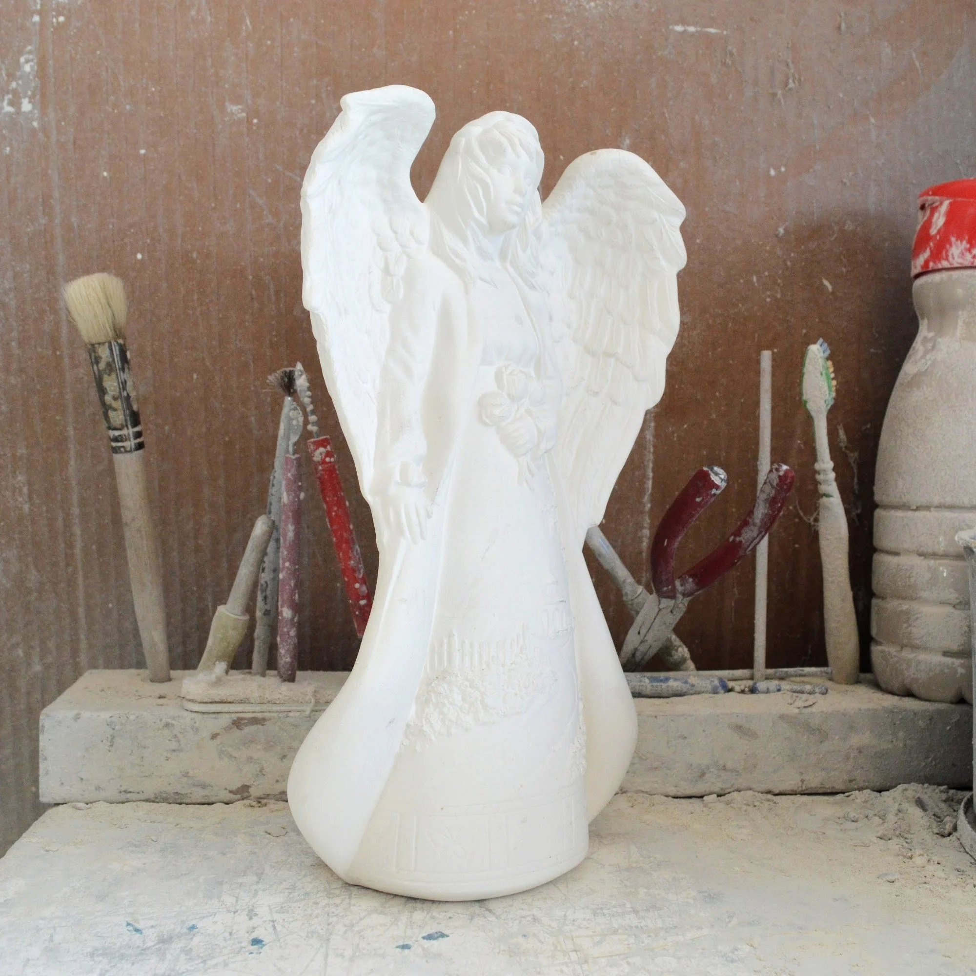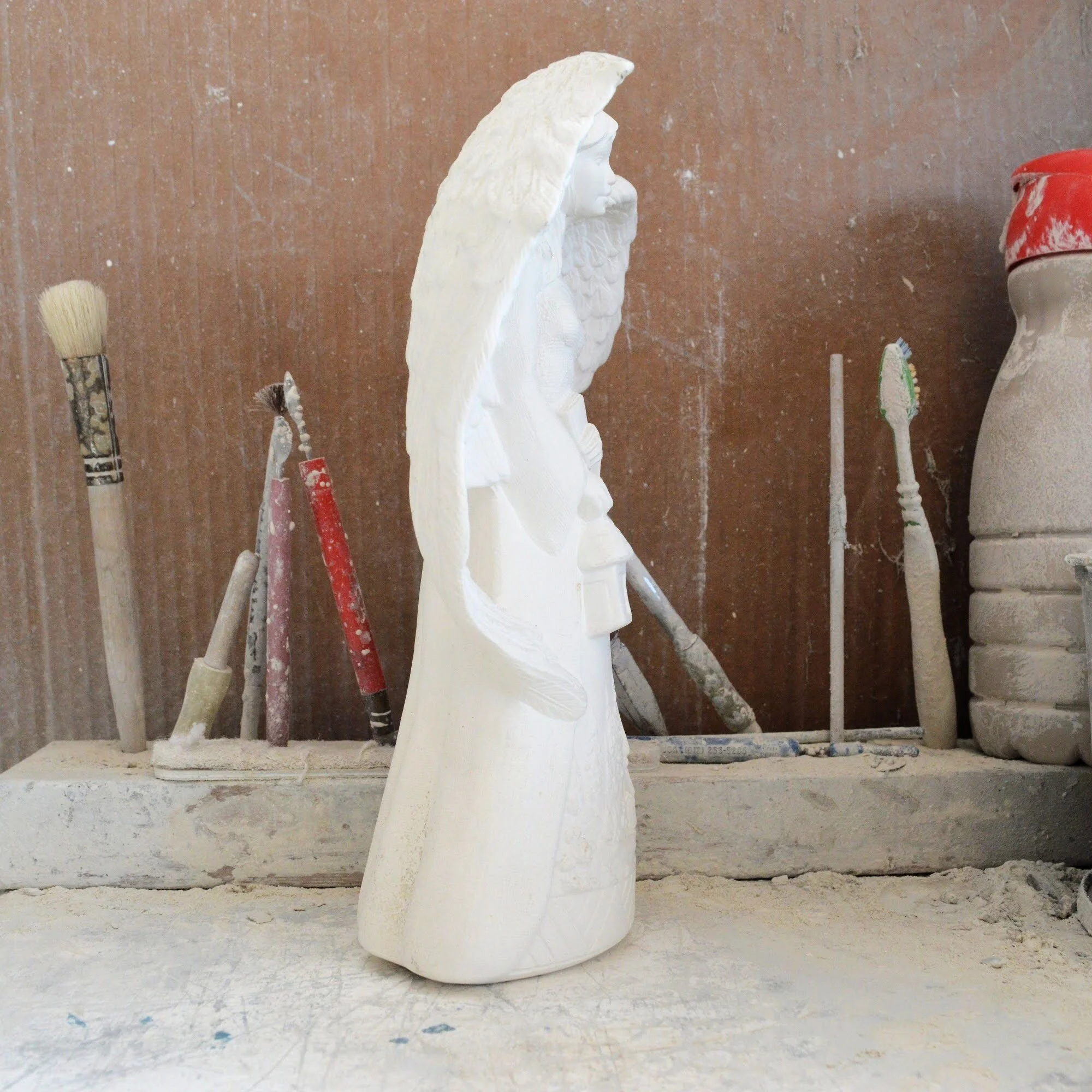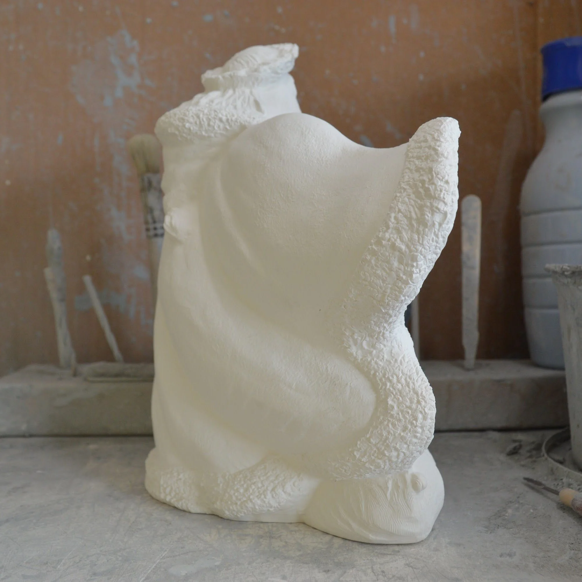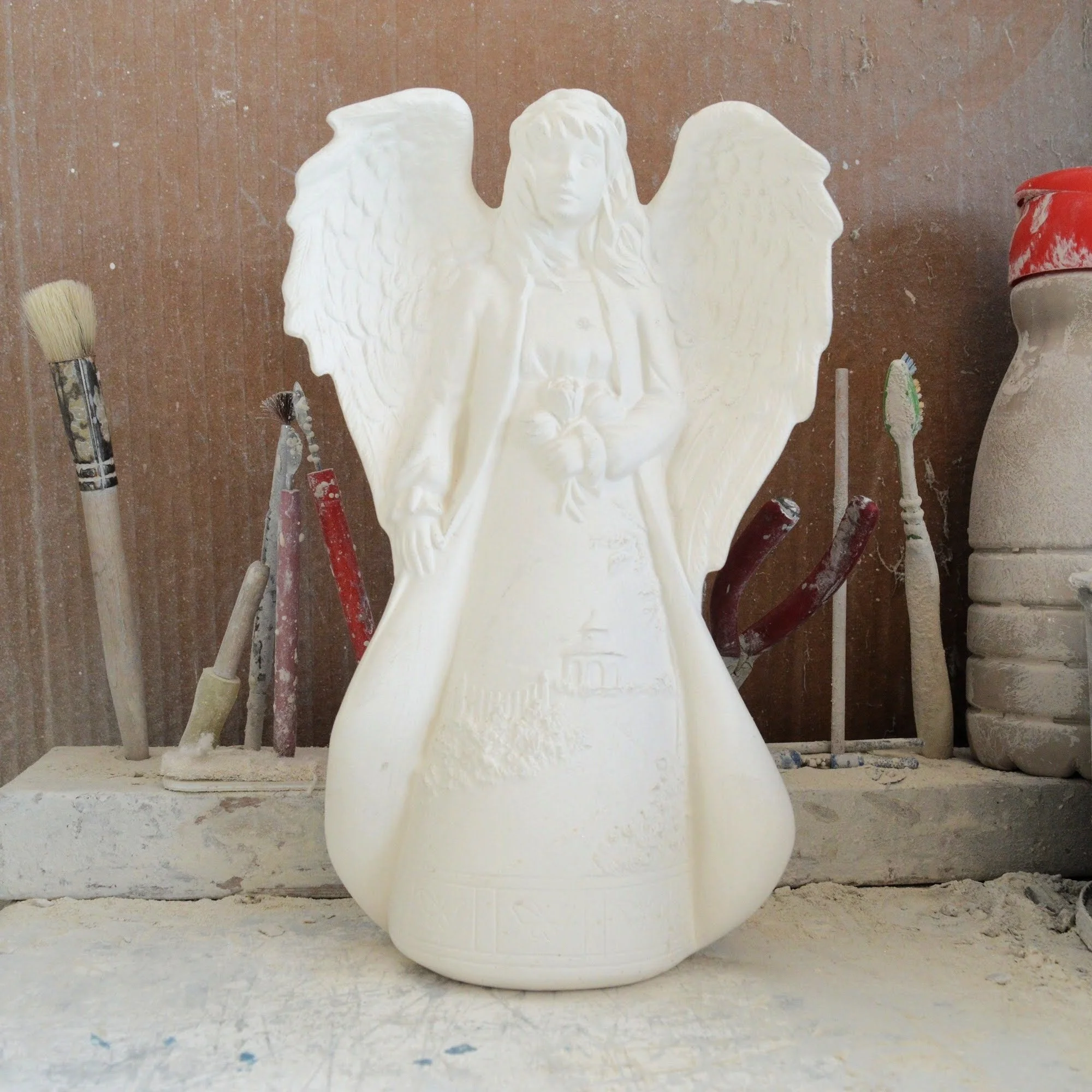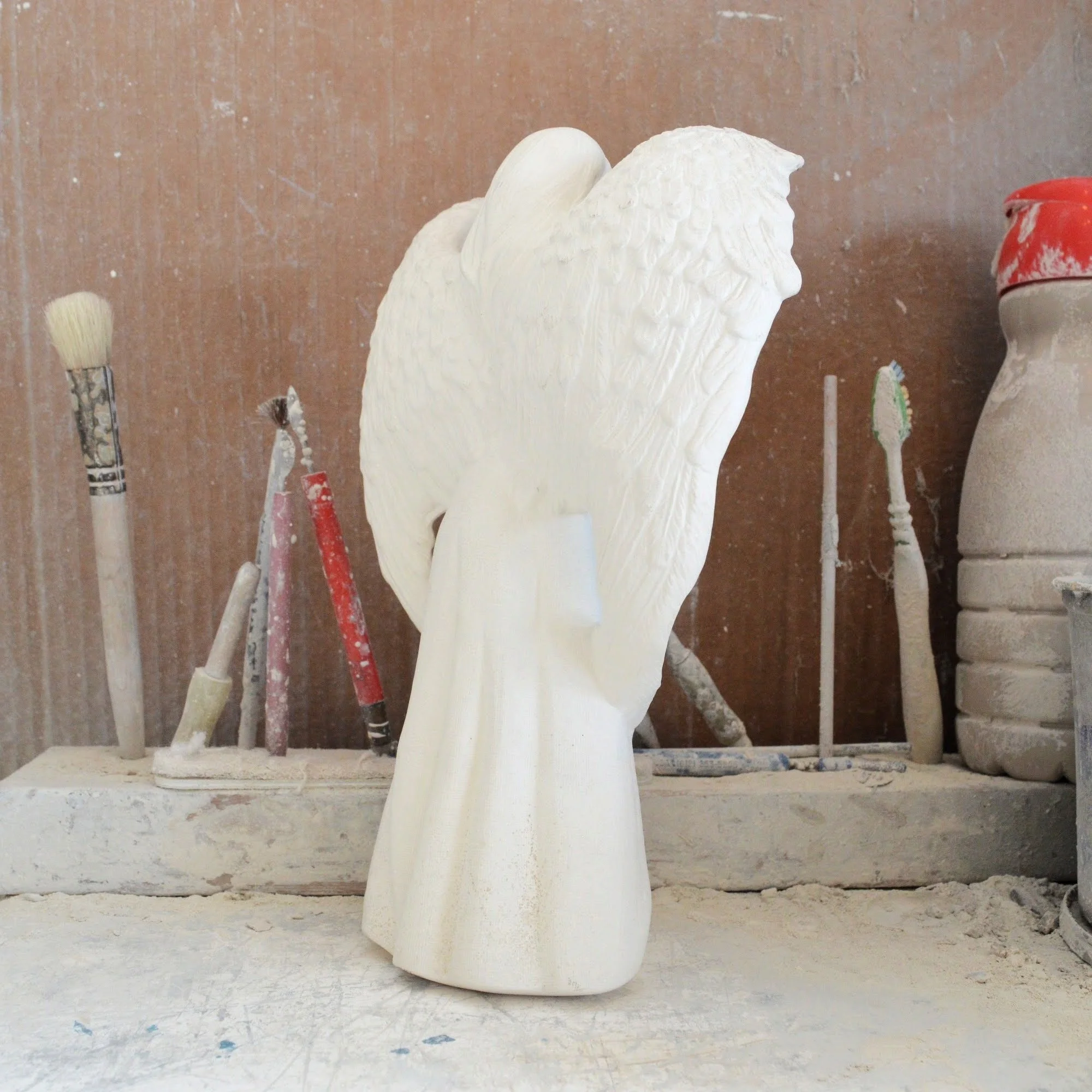 Ready-to-Paint Ceramic: Santa Moon with Angel Figurine (Riverview 484)