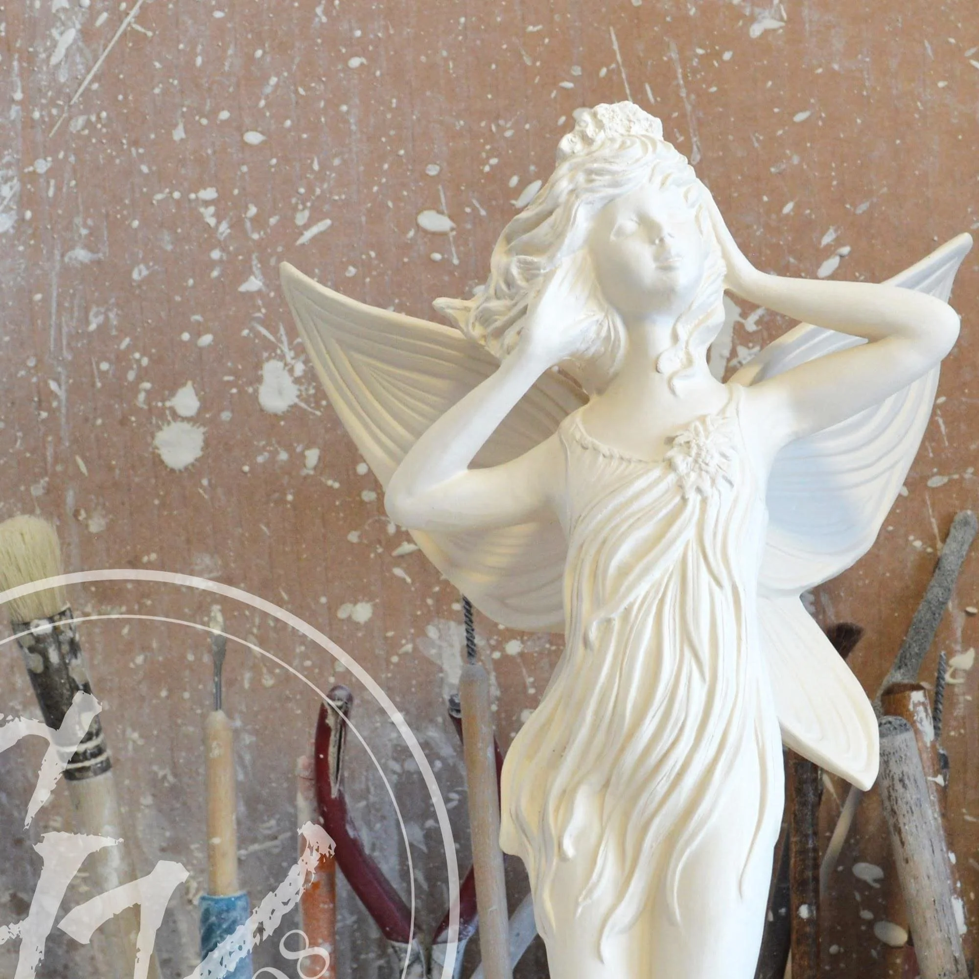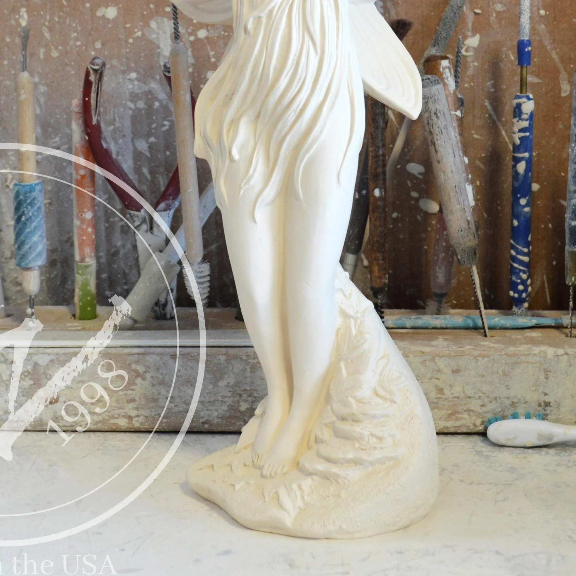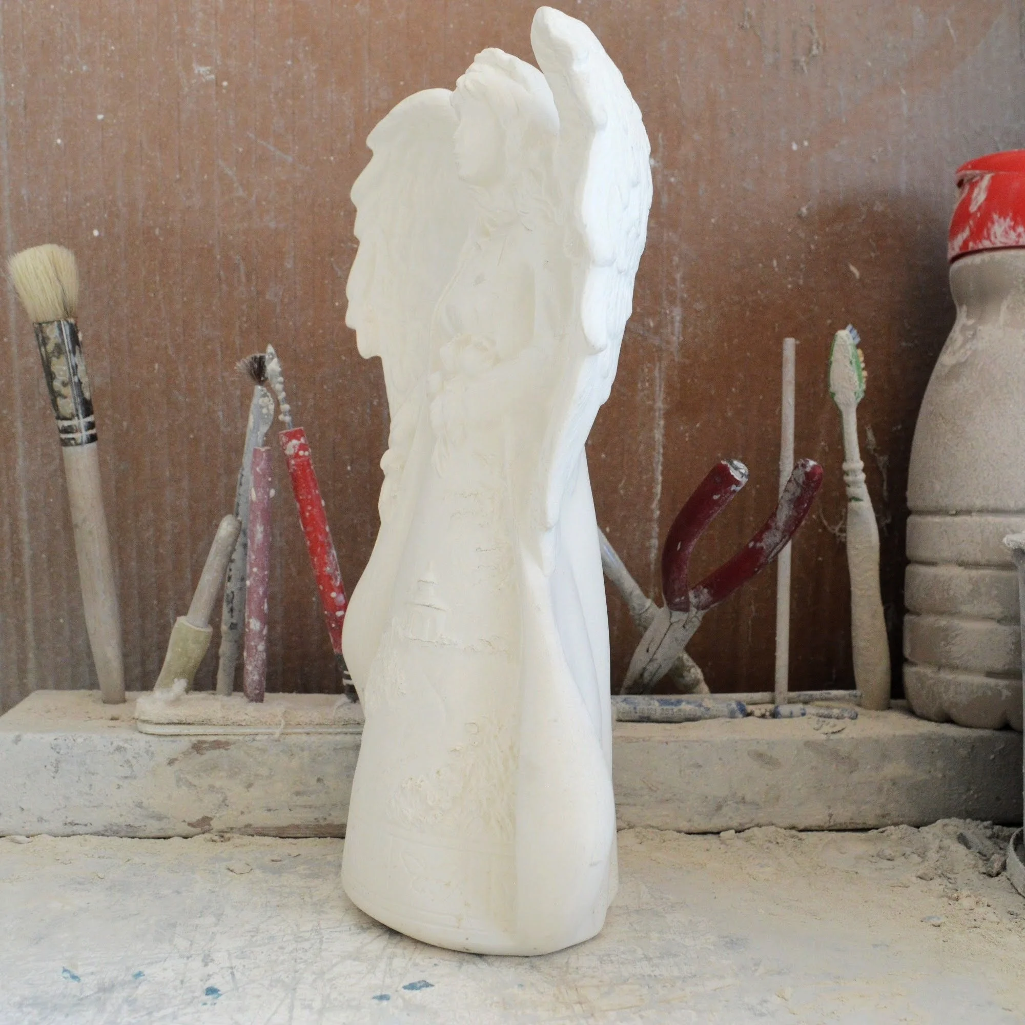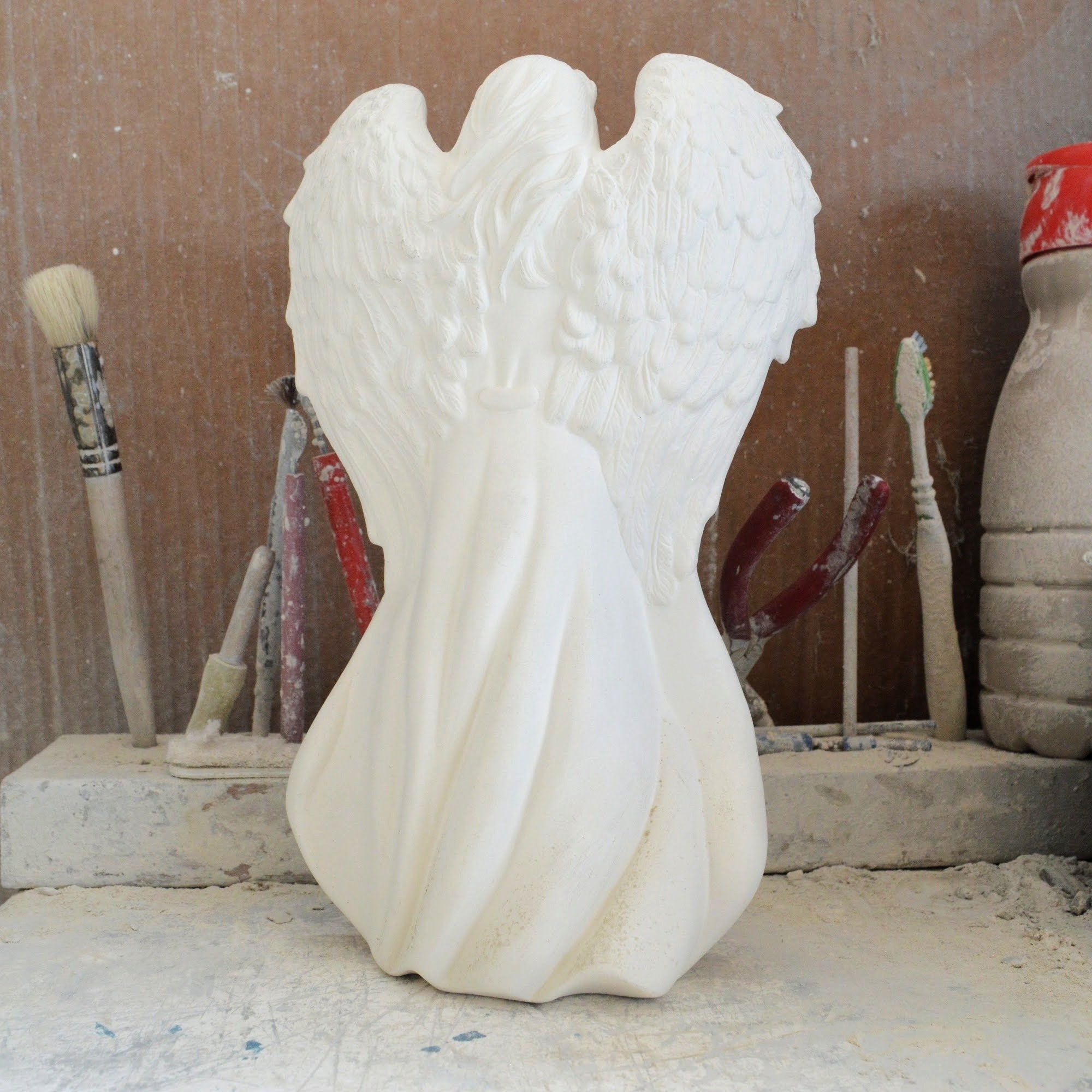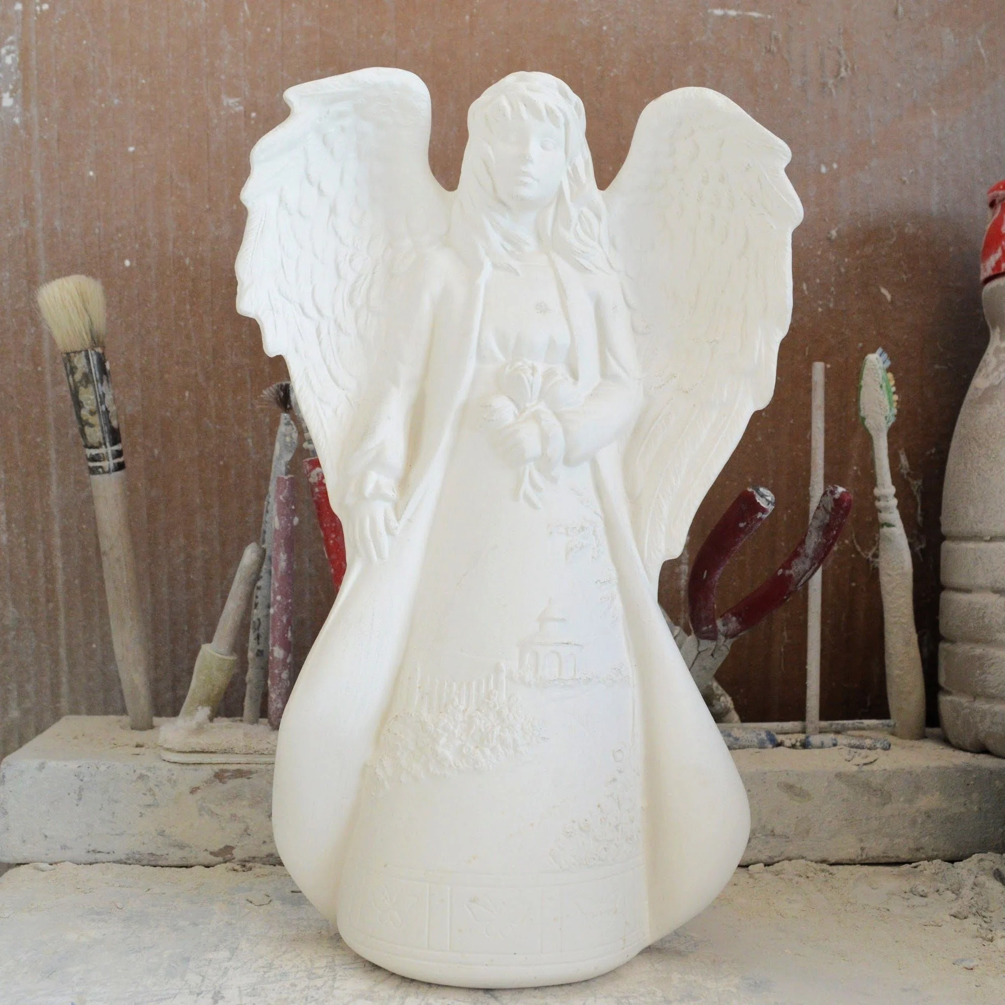 Ready-to-Paint Ceramic: Santa Moon with Angel Figurine (Riverview 484)