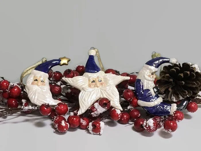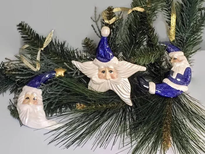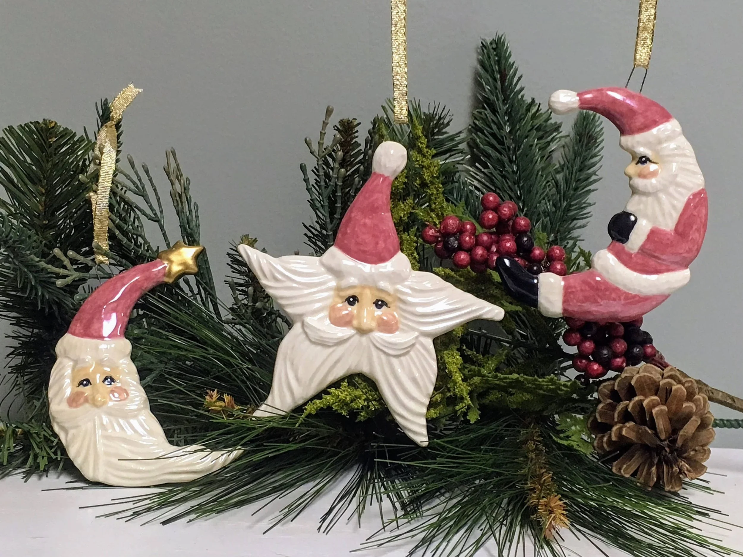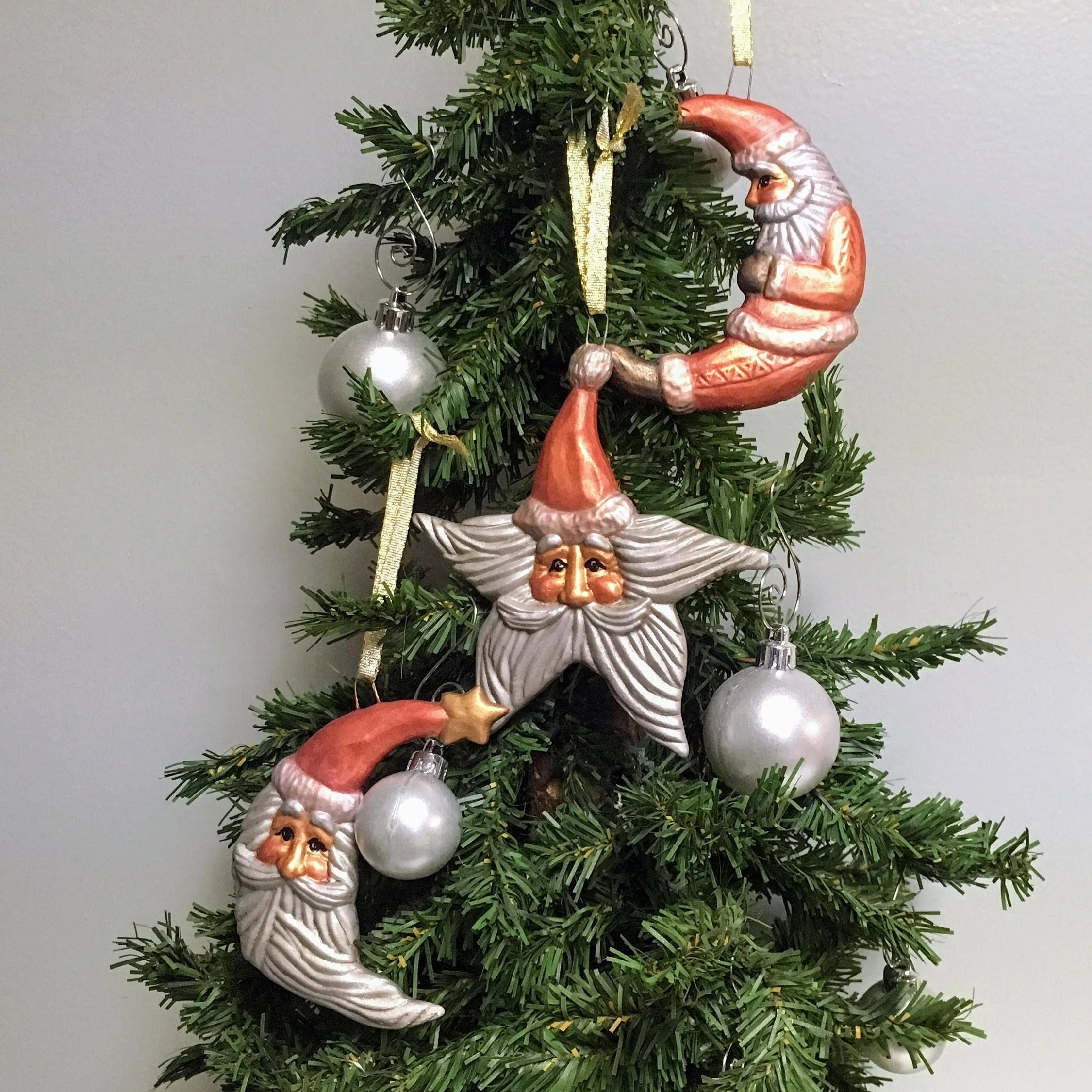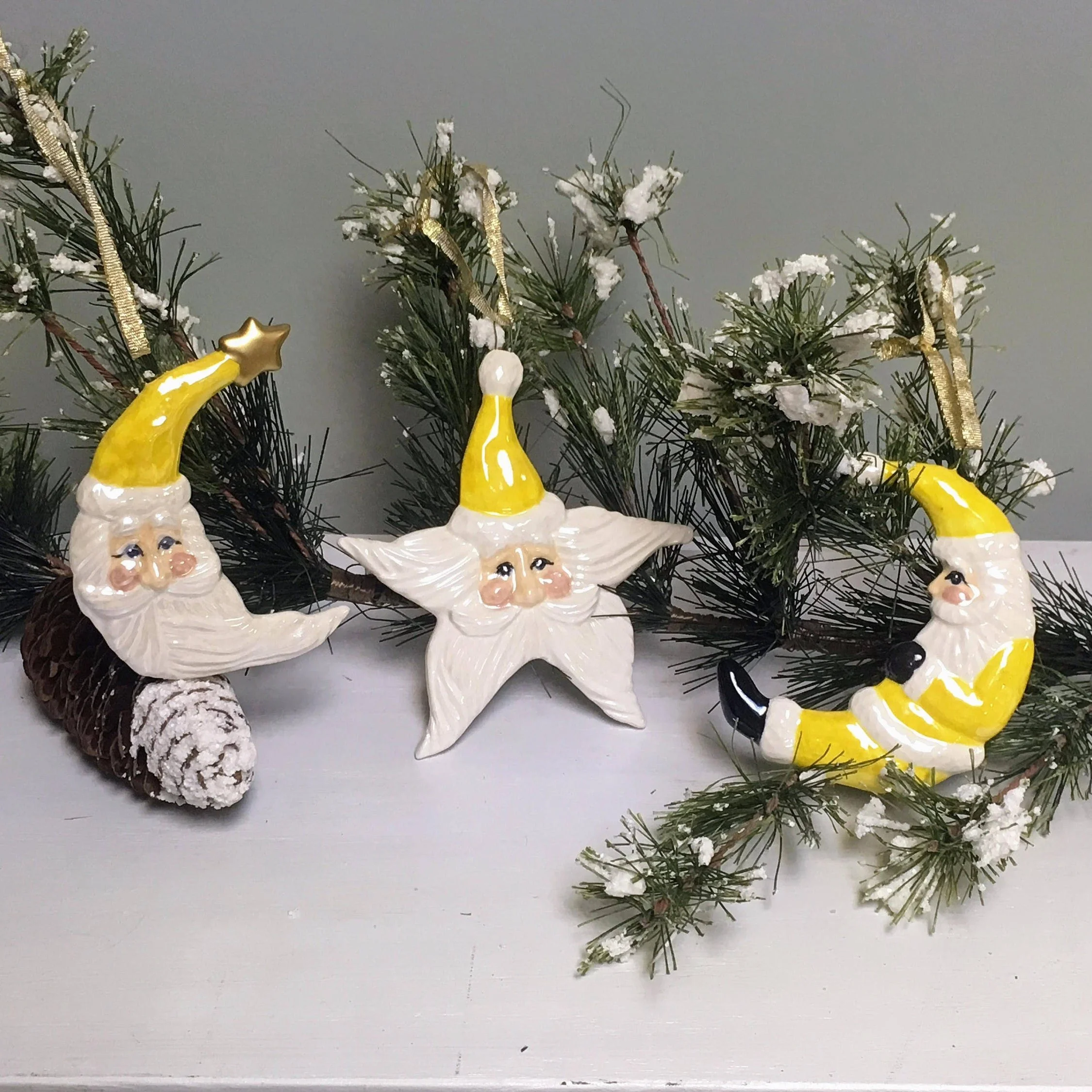 Ceramic Santa Star Moon Christmas Ornaments - Tangerine Orange