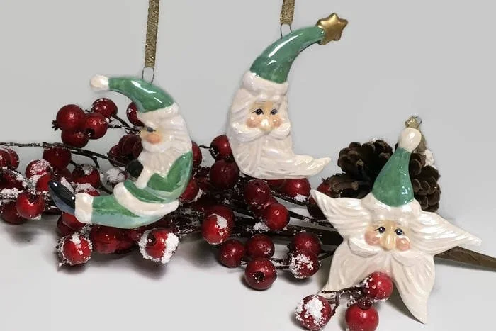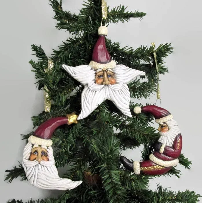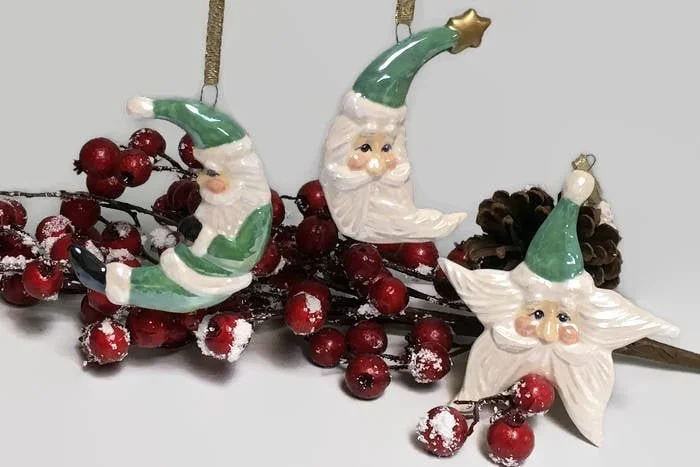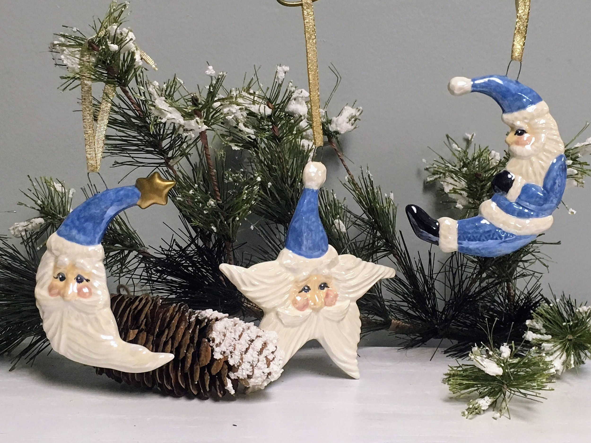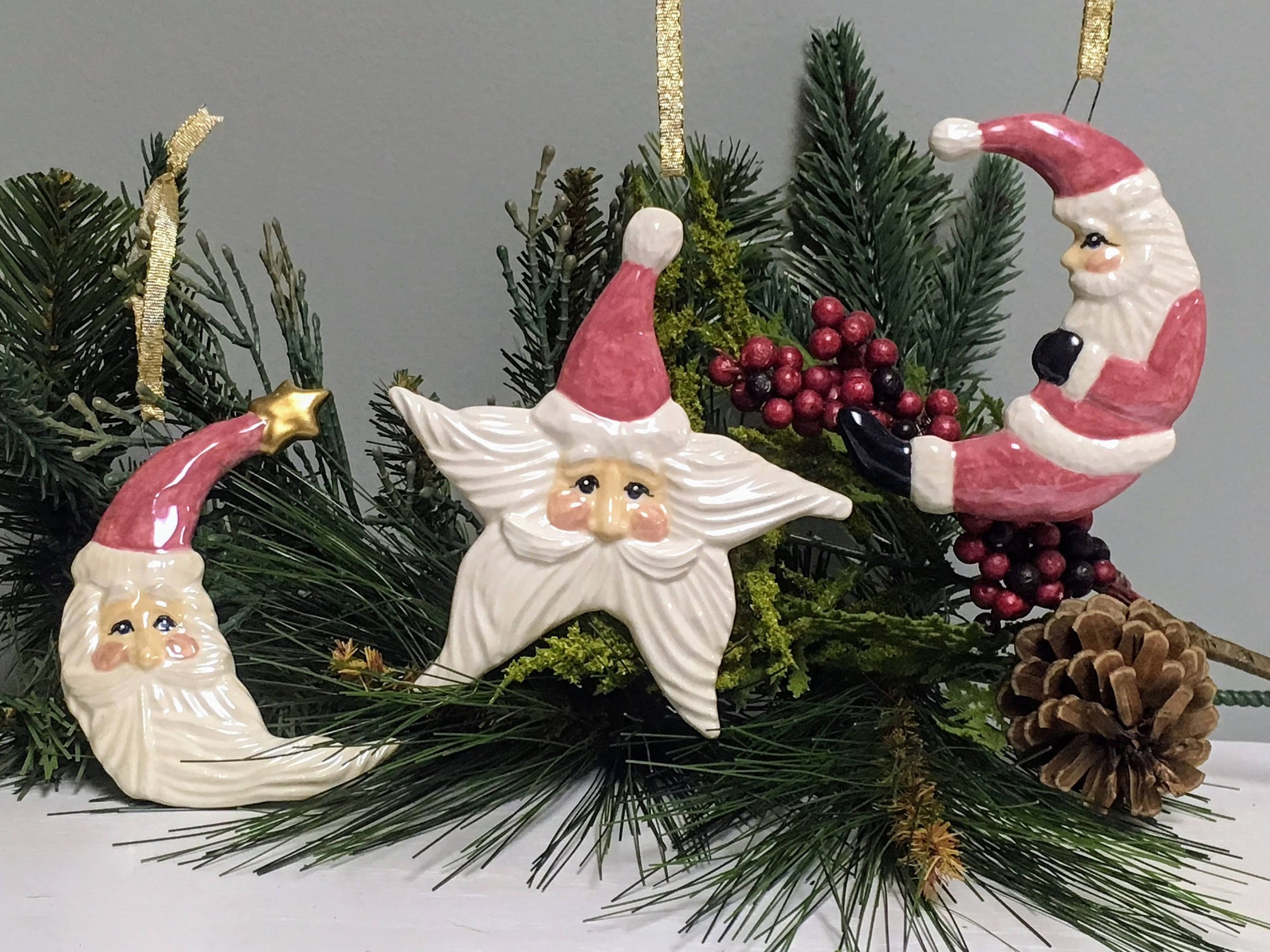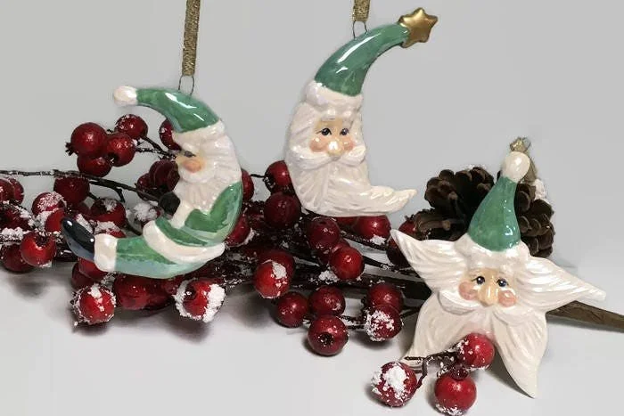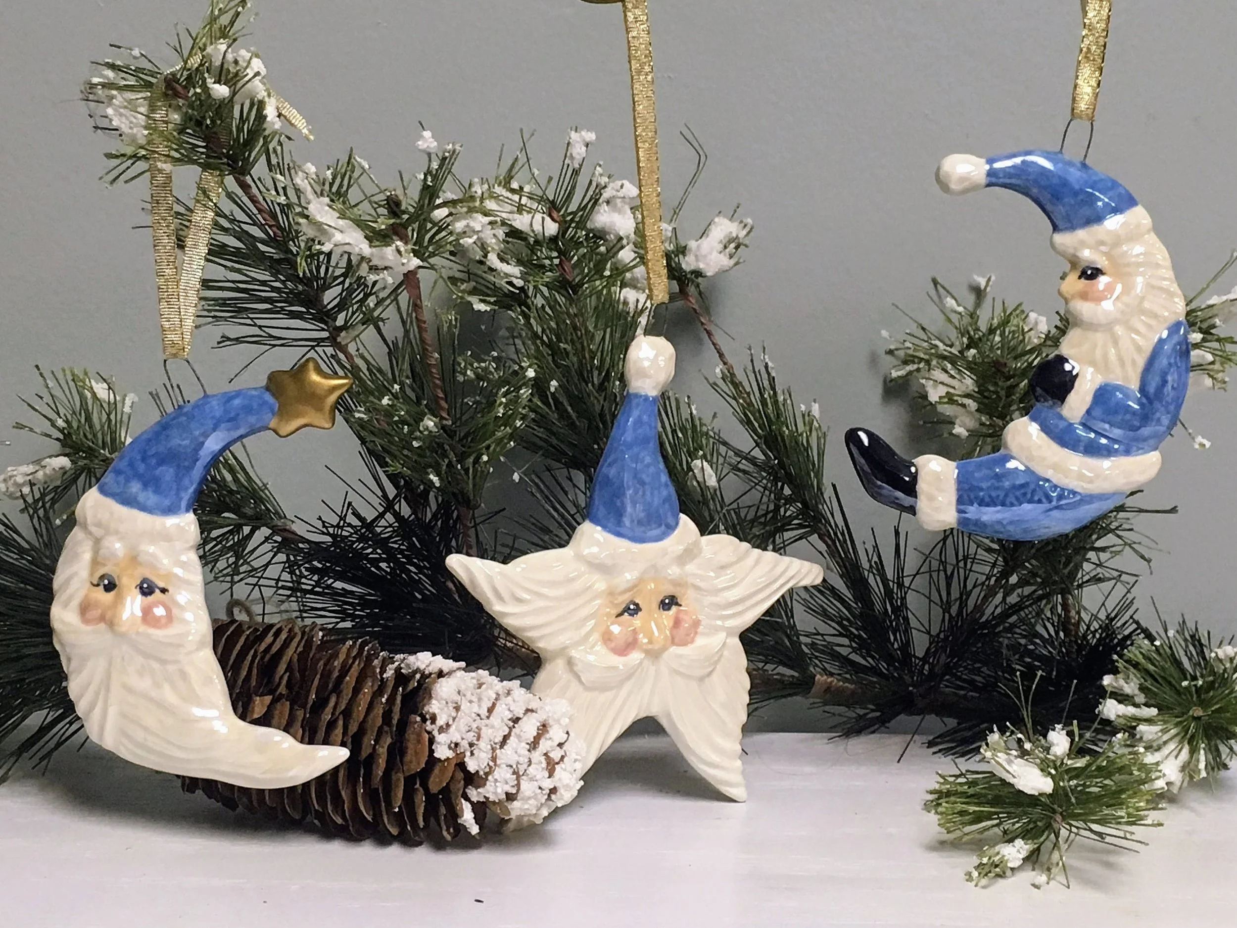 Ceramic Santa Star Moon Christmas Ornaments - Tangerine Orange