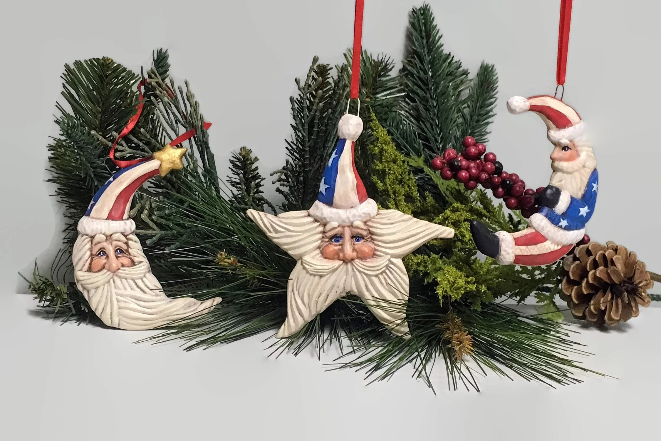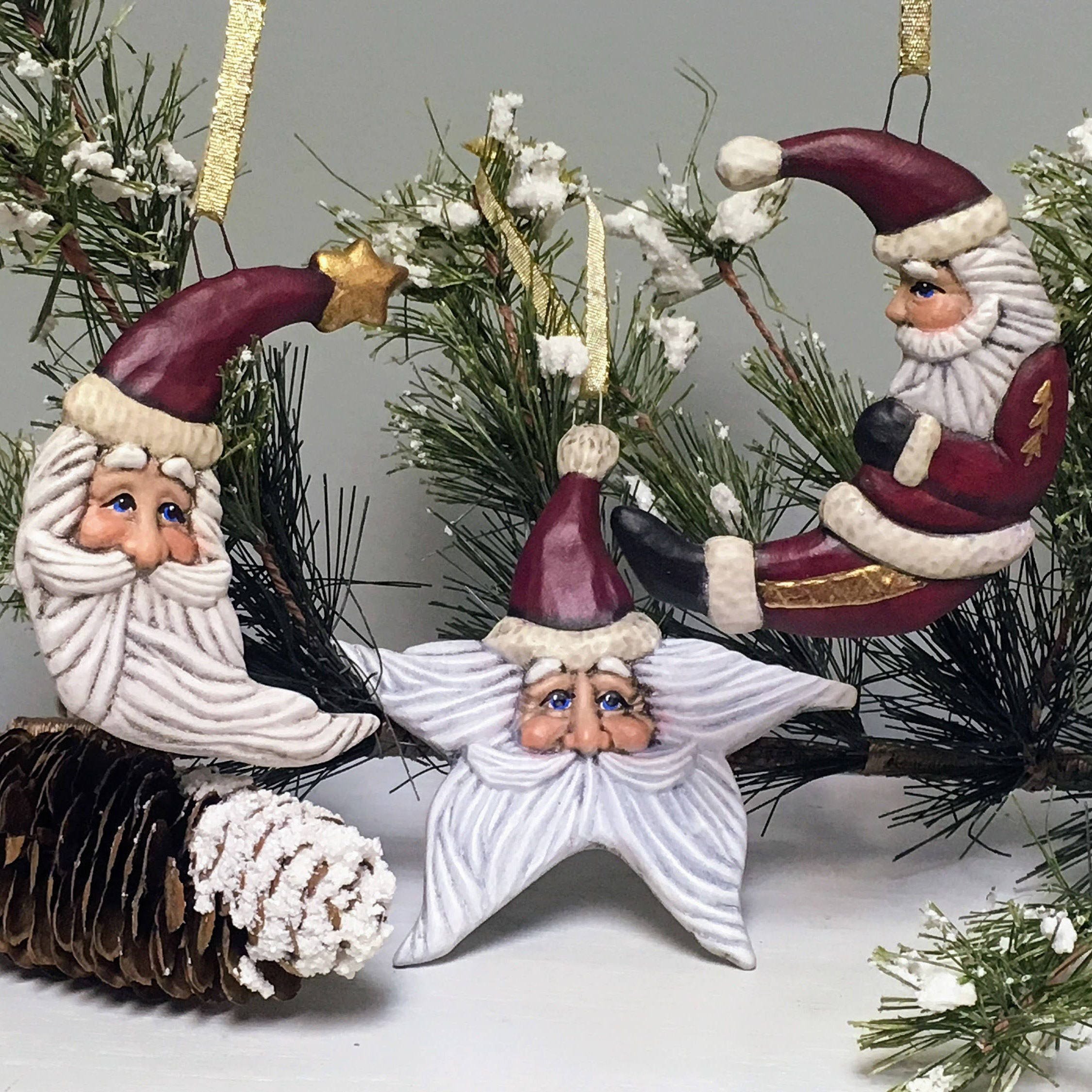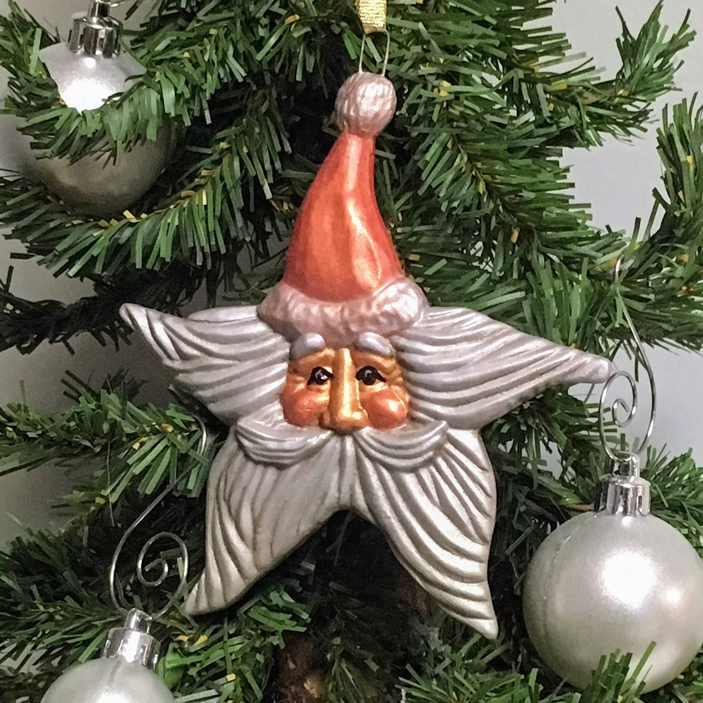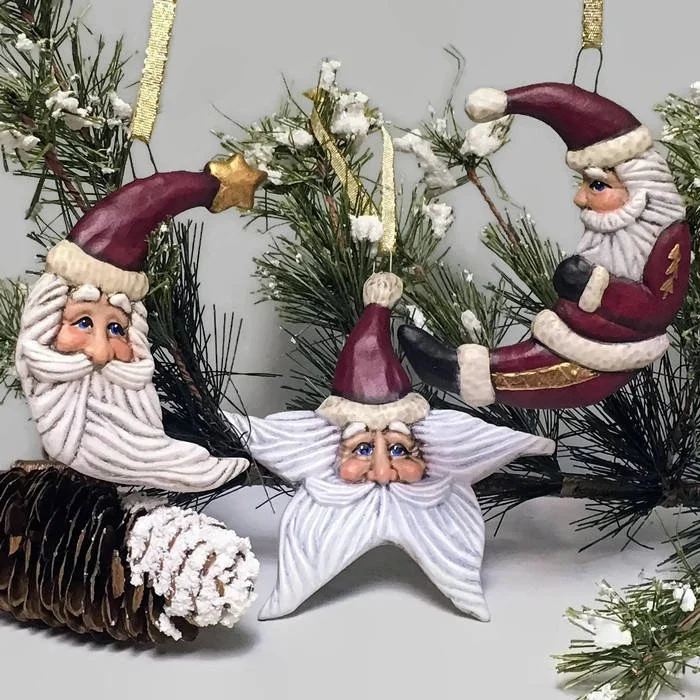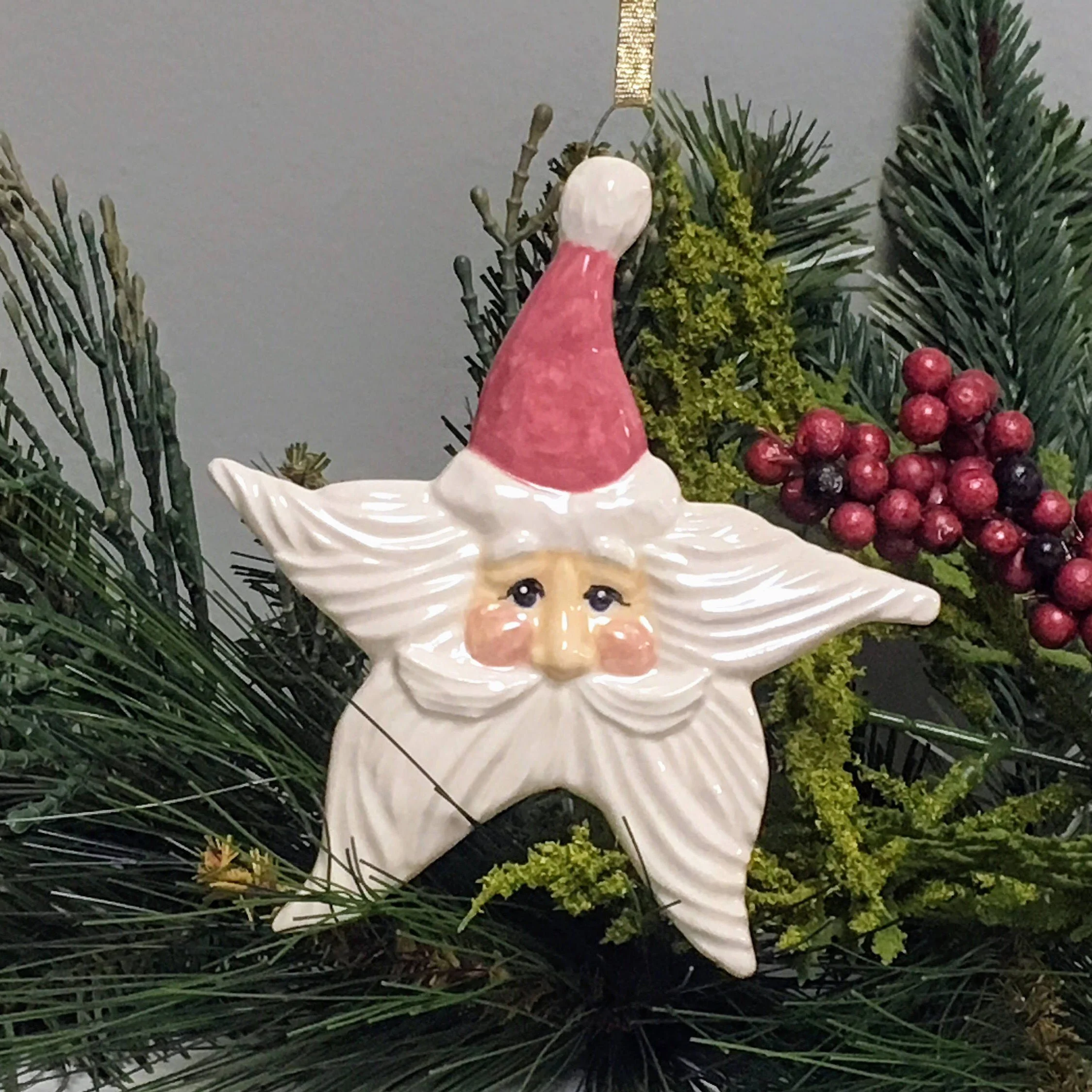 Ceramic Santa Star Moon Christmas Ornaments - Tangerine Orange