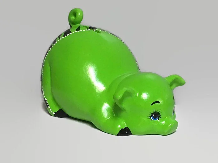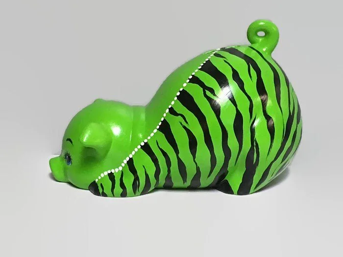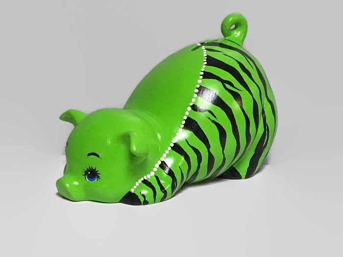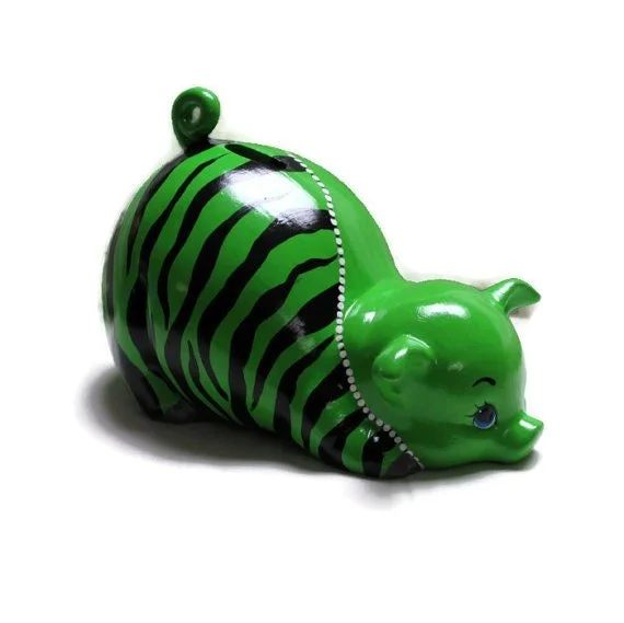 Ceramic Piggy Bank - Lime Green - Zebra Stripes - Jungle Theme - Fashionista