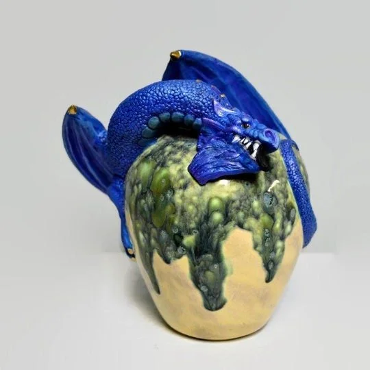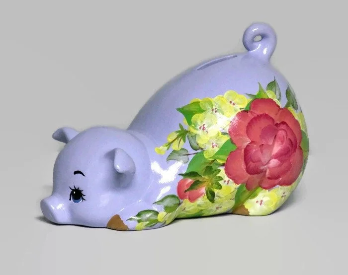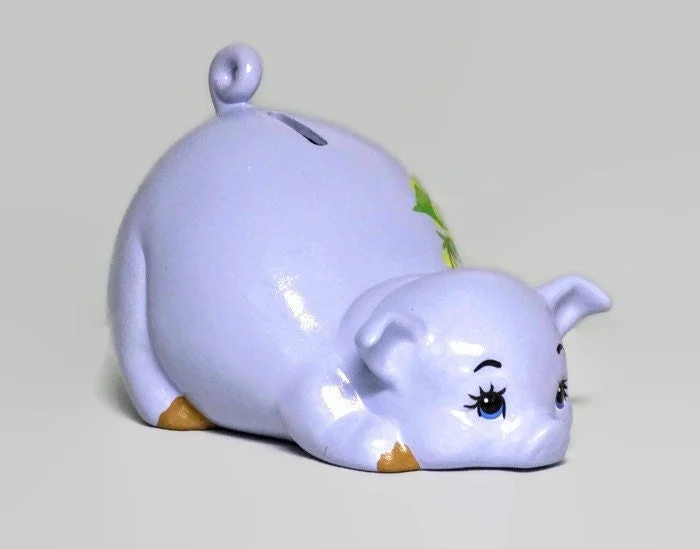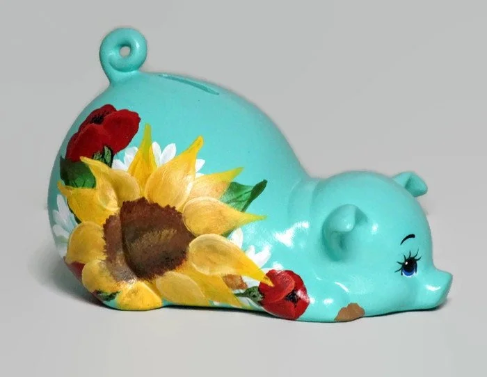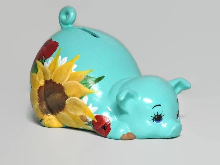 Handmade Ceramic Piggy Bank: Bright Blue Checkered Flag Design