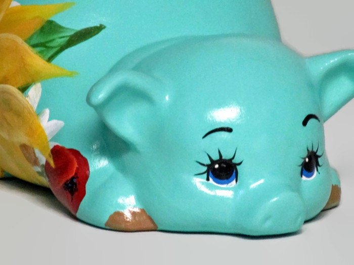 Handmade Ceramic Piggy Bank: Pink Rainbow Swirls, Nursery Decor
