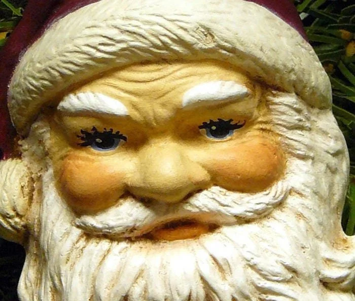 This ceramic Santa Christmas ornament reminds me of my favorite quote from The Life and Adventures of Santa Claus by L. Frank Baum. I can just see him say "'In all this world there is nothing so beautiful as a happy child,' says good old Santa Claus. And if he had his way the children would all be beautiful, for they would be happy". This depiction of Santa shows a loving and patient Saint Nick with a mischievous twinkle in his eye.