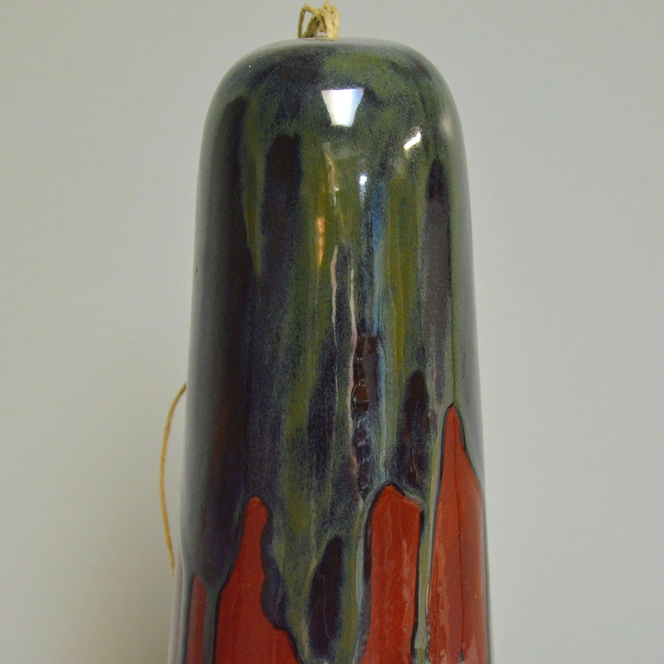 Ceramic Cone Bell Wind Chime - Ox Blood Red with Green