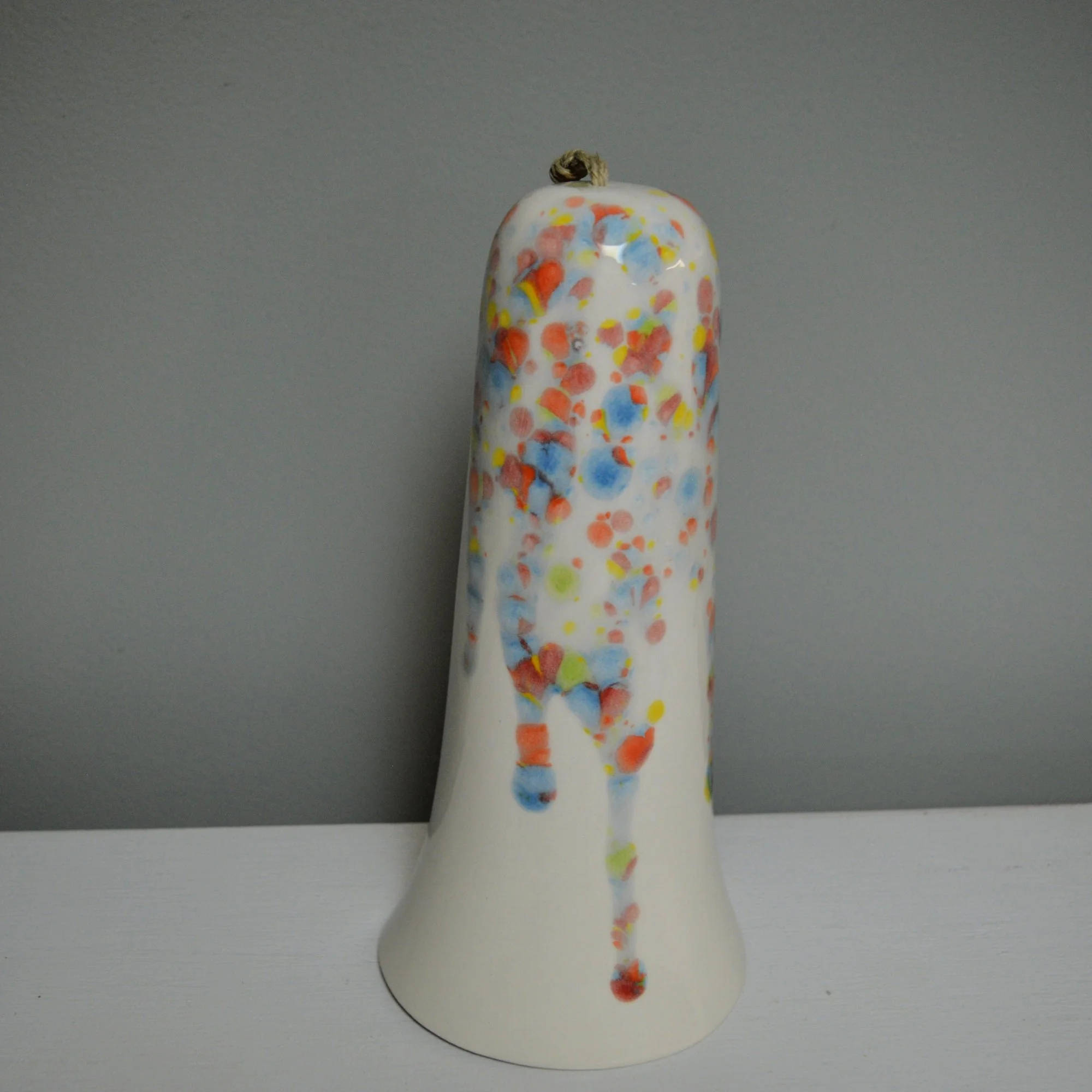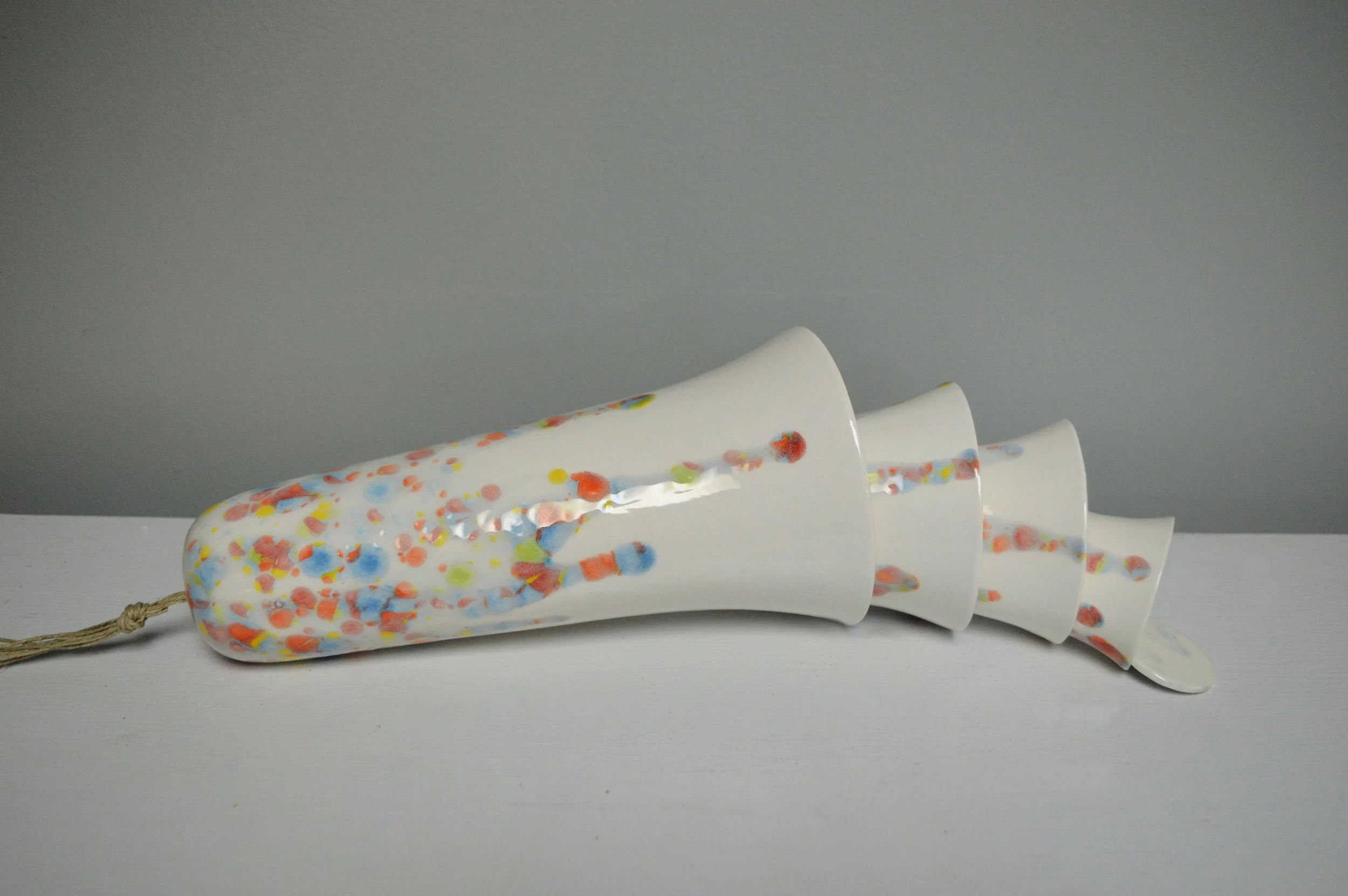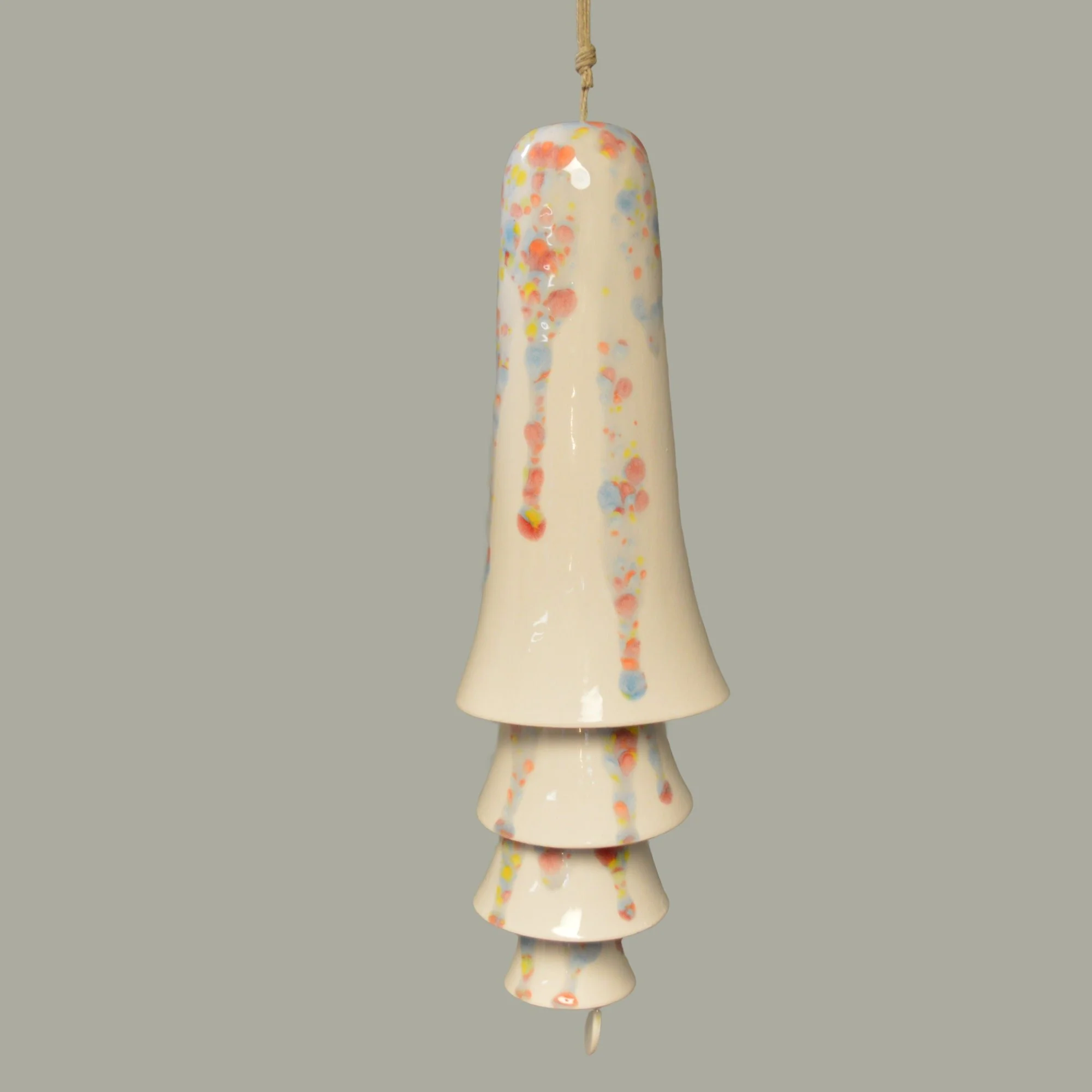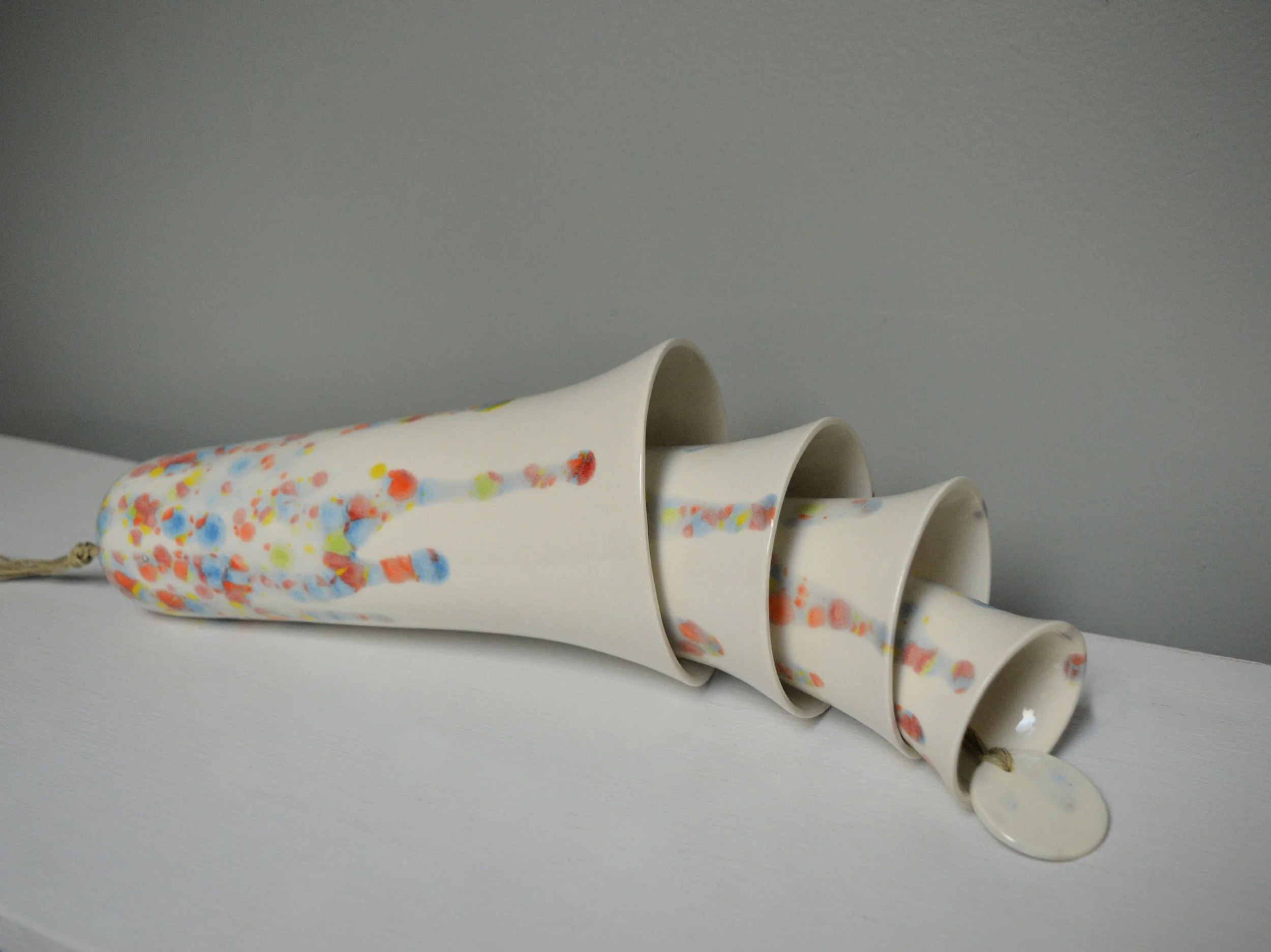 Ceramic Cone Bell Wind Chime - White with Red, Blue, Yellow
