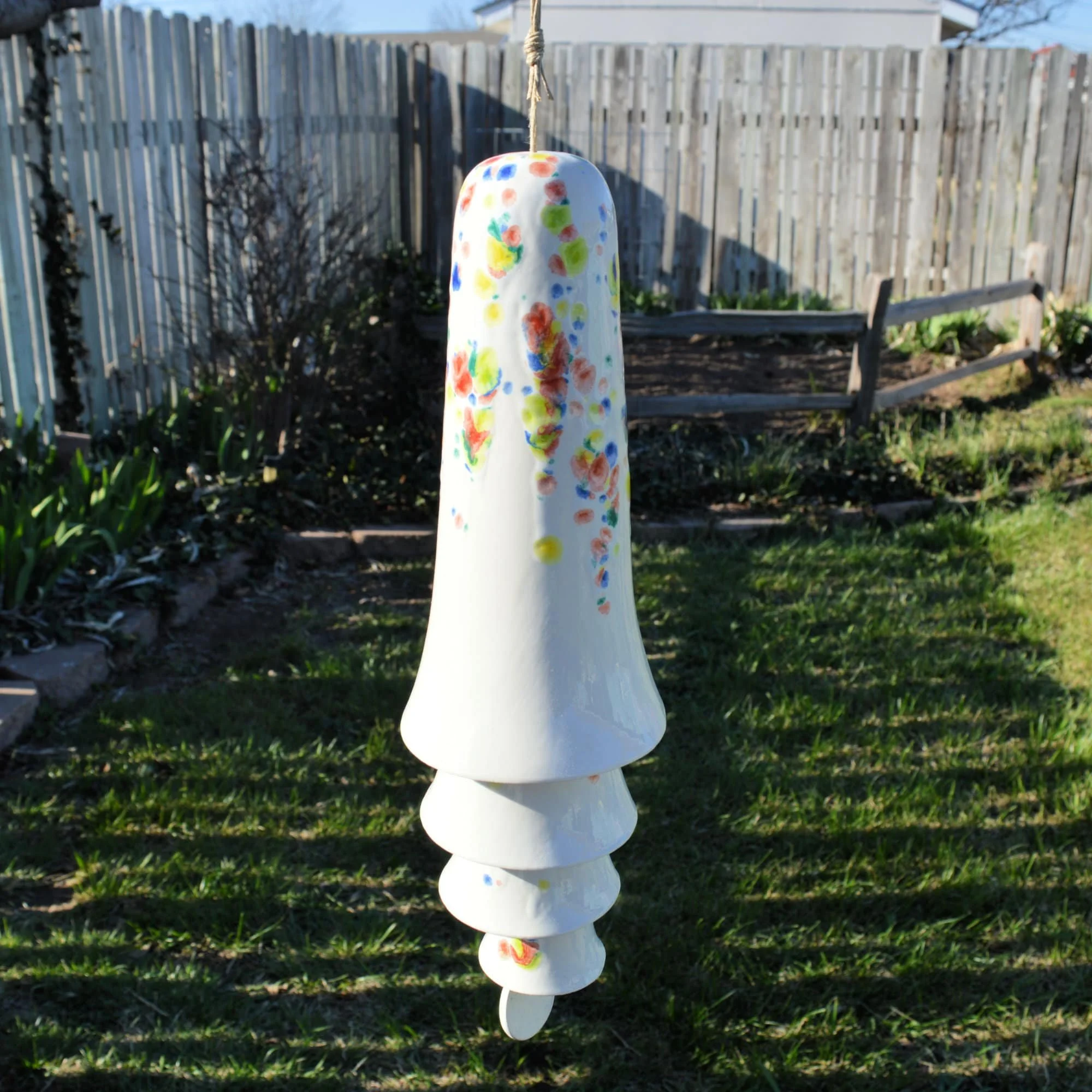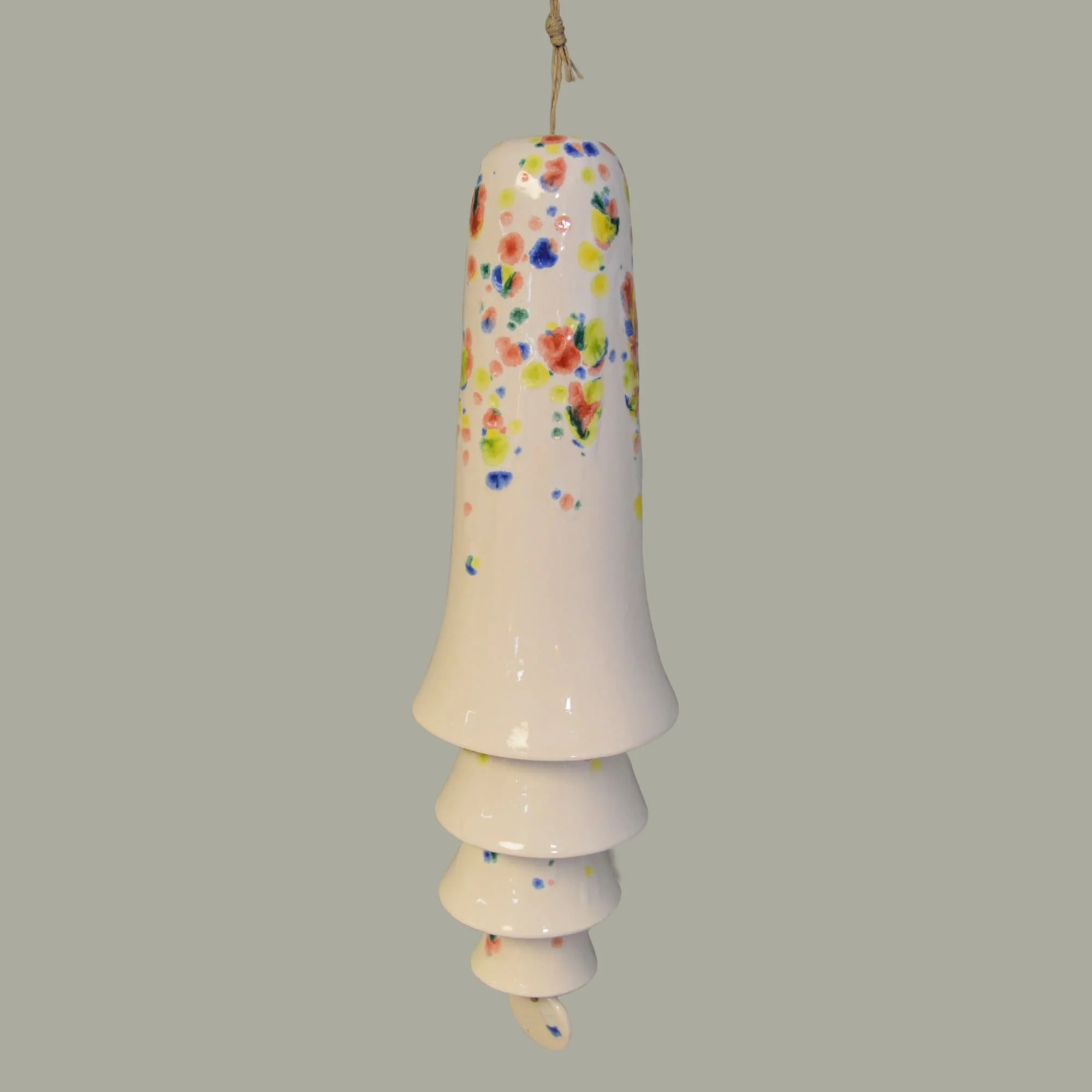 Ceramic Cone Bell Wind Chime - White with Splashes of Red, Blue, Yellow, Green