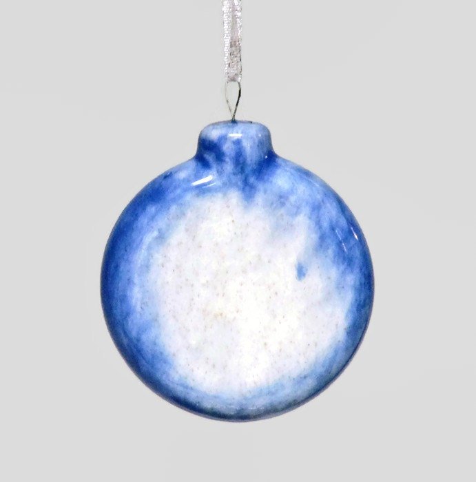 This ornament: • Measures approximately 2.75 inches across, 3 inches tall and .5 inch thick • Features a hand appliqued butterfly • Features a color palette of heather blue, federal blue, orange, corral red, black and white • Dangles from a silver metallic ribbon • Is handmade • Is created using glaze, underglaze, and glass paints • Great gift for Mother’s Day, graduation, teacher appreciation to name a few