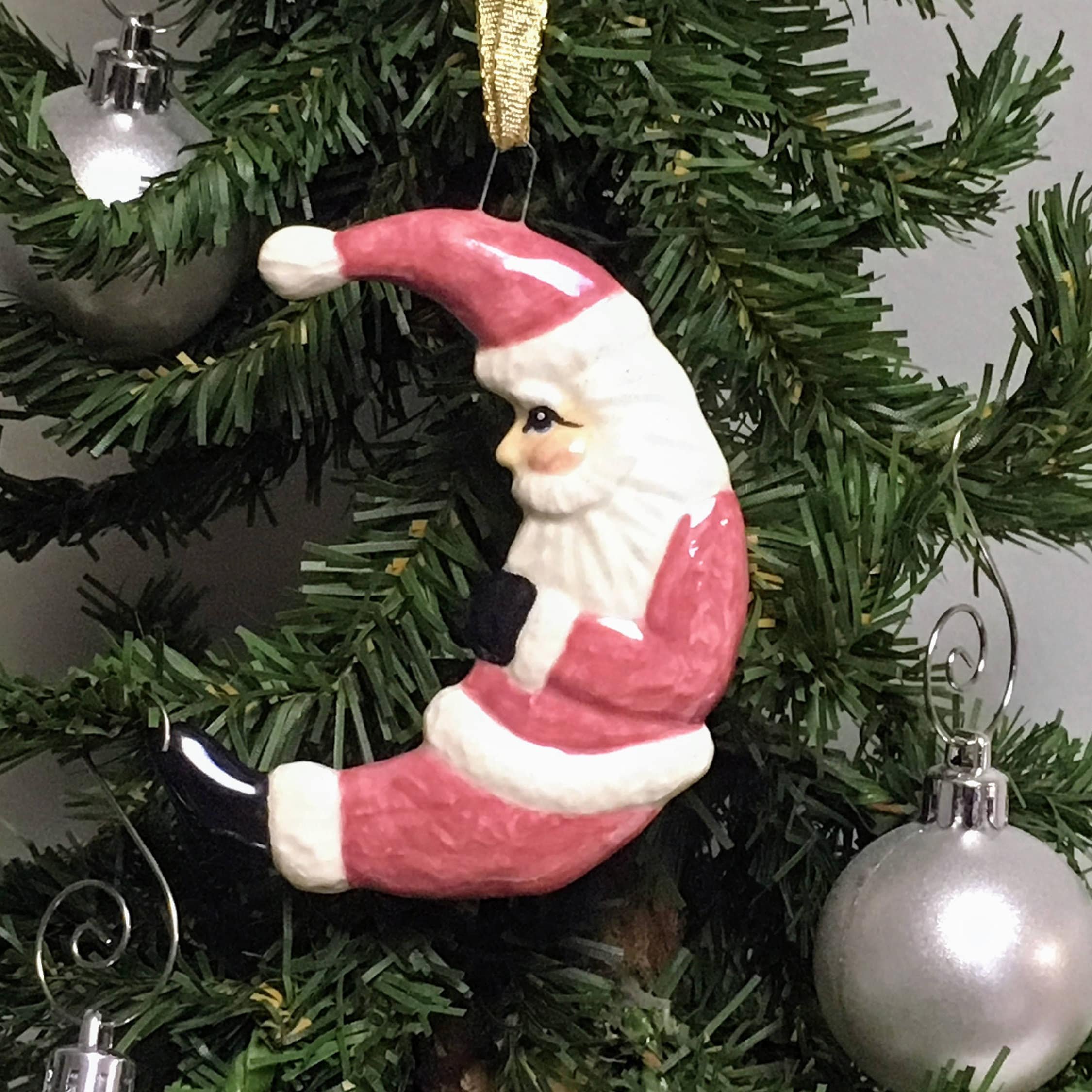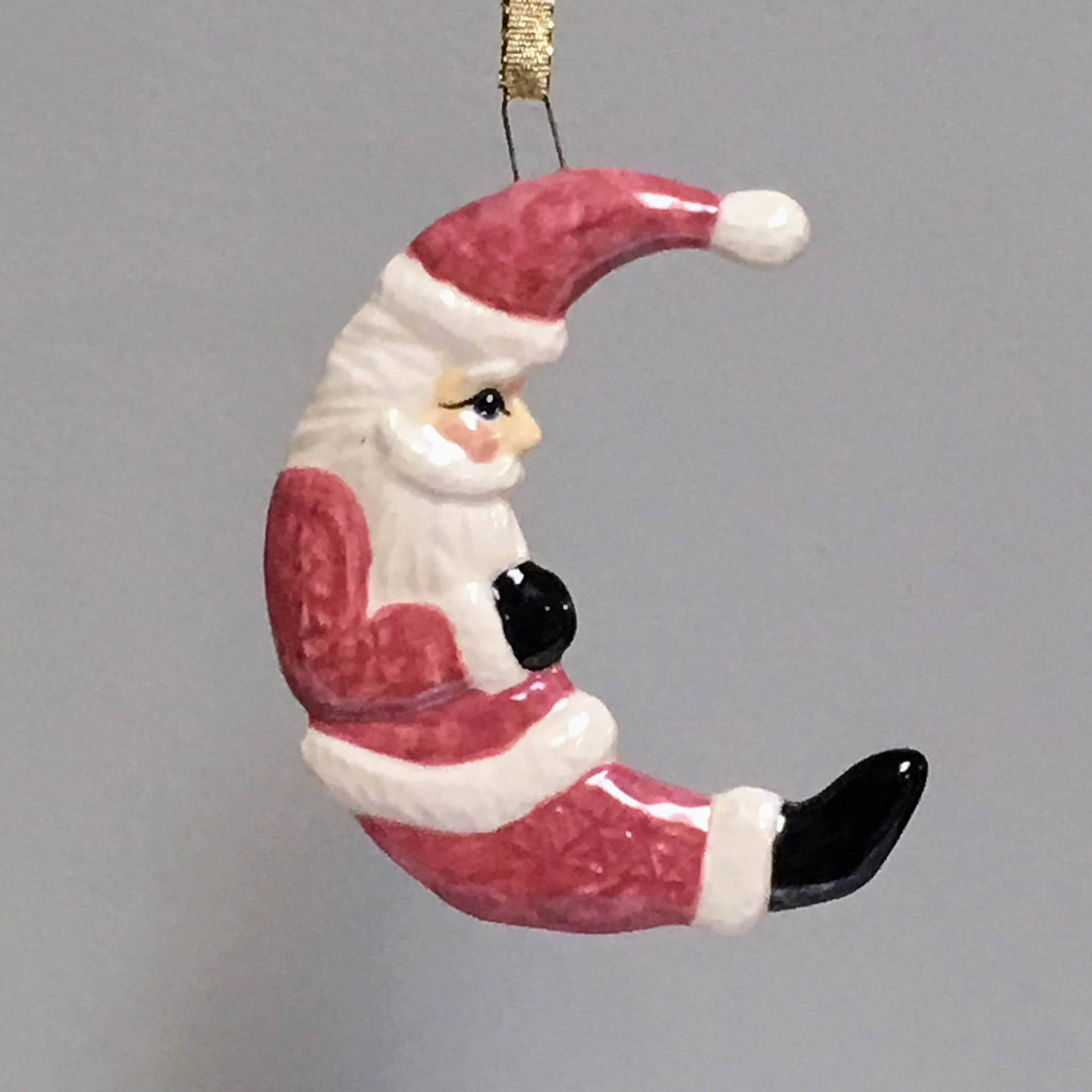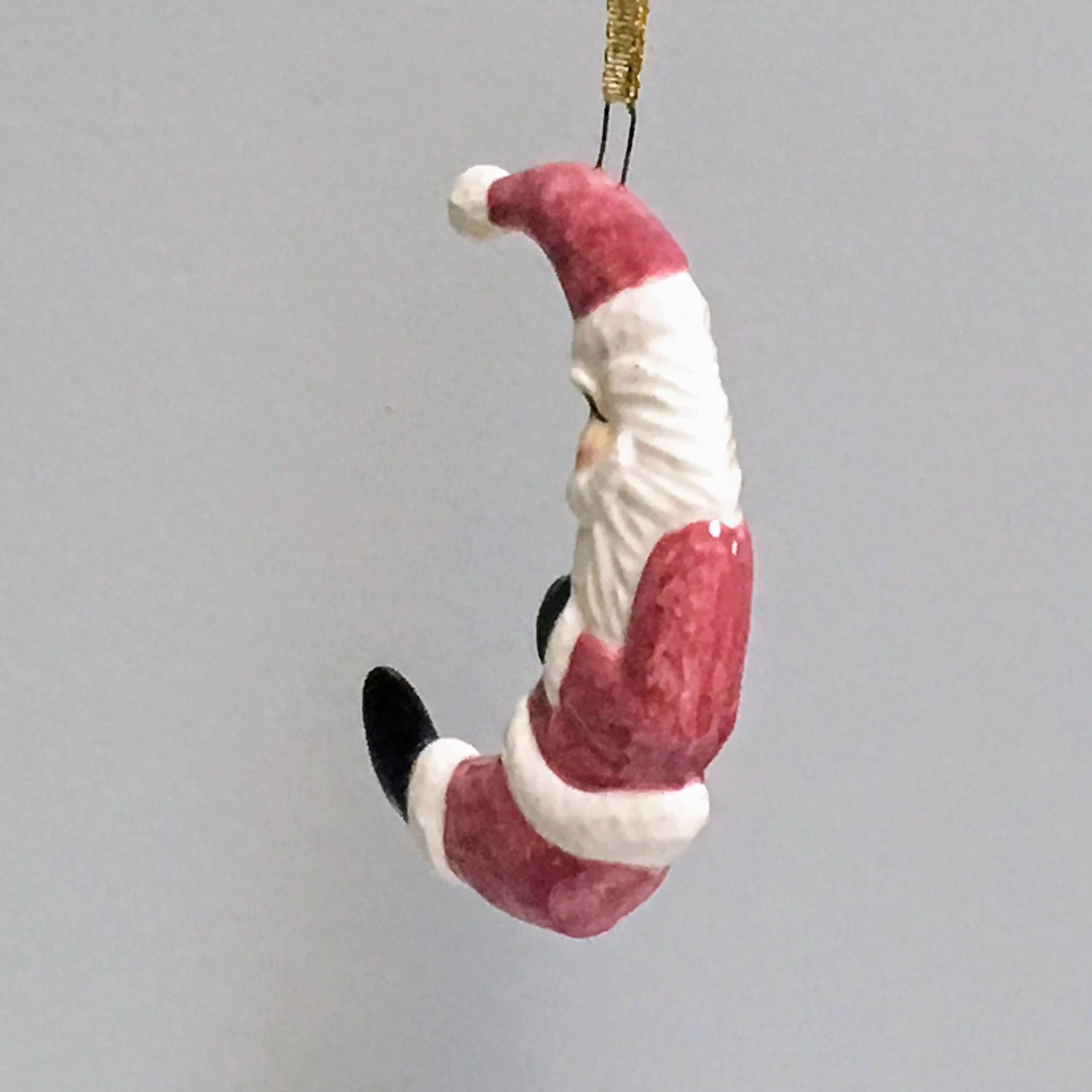 Ceramic Resting Santa Crescent Moon Christmas Ornament -Victorian Ruby Rose