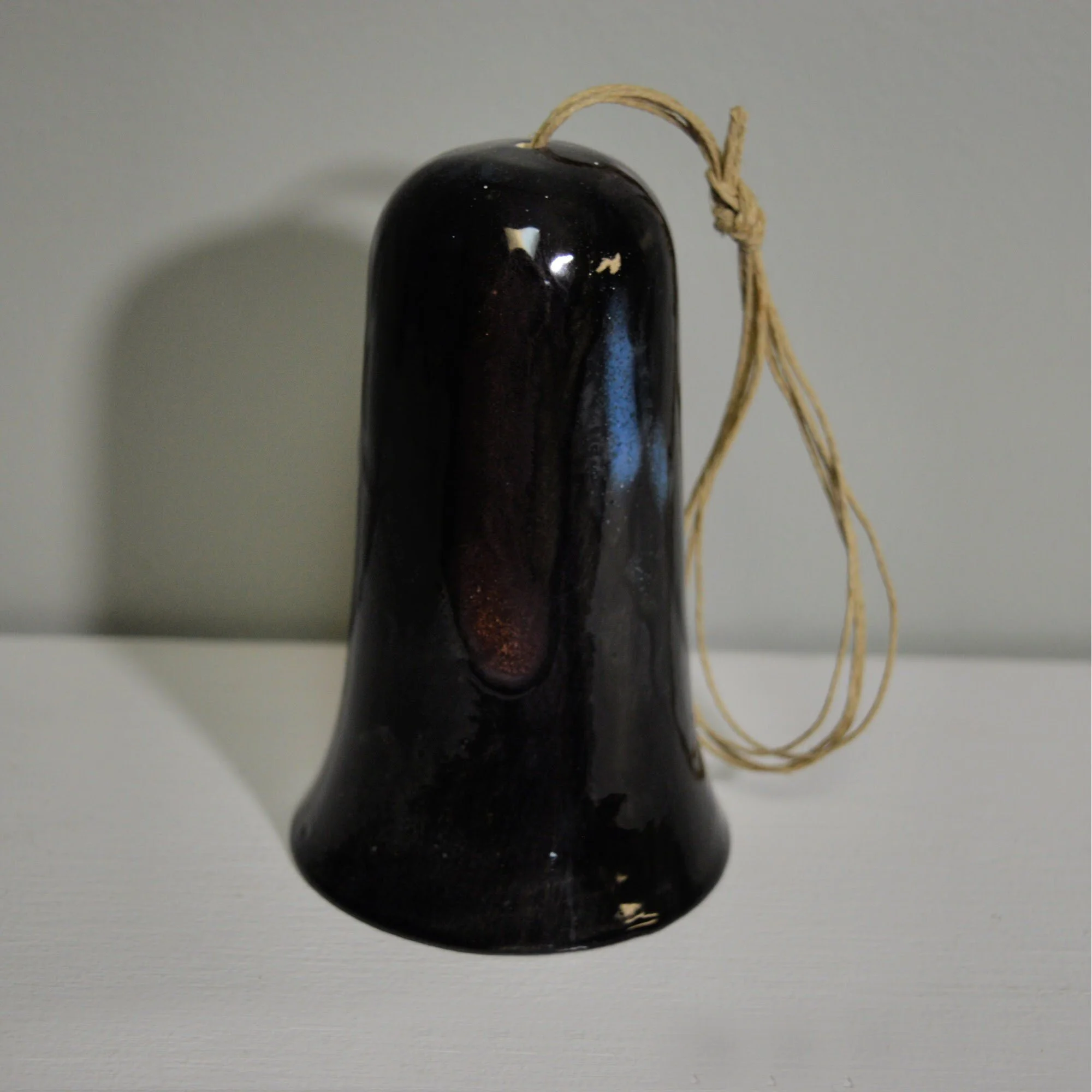 • Each set of cone bells is handmade and hand glazed. Bells may be similar but never exactly the same when purchasing more than one. • The bells hang approximately 13" long including the jute • The largest cone bell is approximately 3.25" in diameter and 4.75” tall • The bells weigh approximately 1 pound. • Bells are suspended on multiple strands of jute • The small stack bells have a higher pitch range than our original cone bells. • Tones are never exactly alike from any two sets of bells • Color palette: black touches of copper rose and blue shimmer • Wind chime is Made in the USA with 98% of materials/equipment sourced in the USA