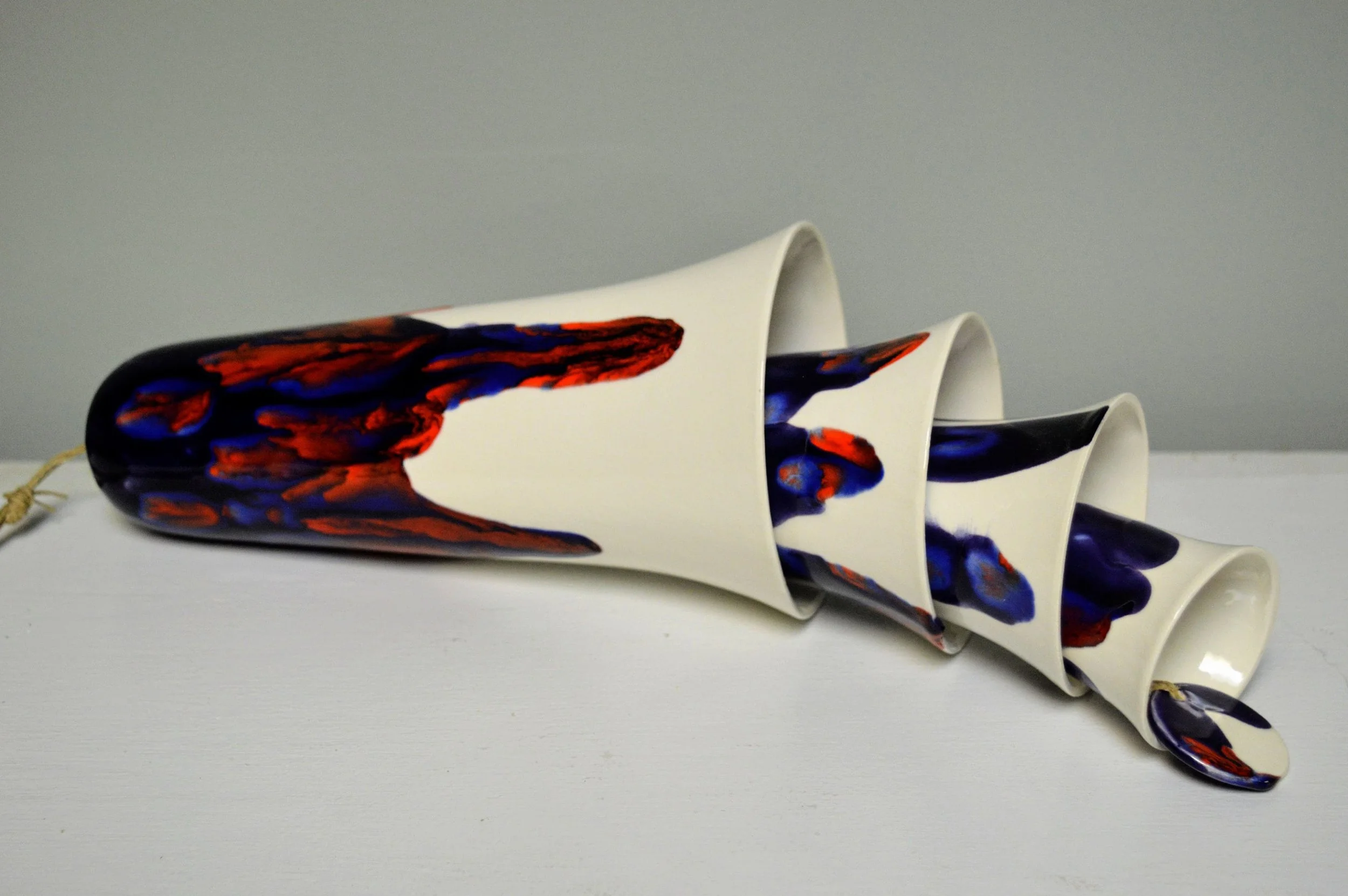 Handmade Ceramic Cone Bell Wind Chime: Red, Blue, & White