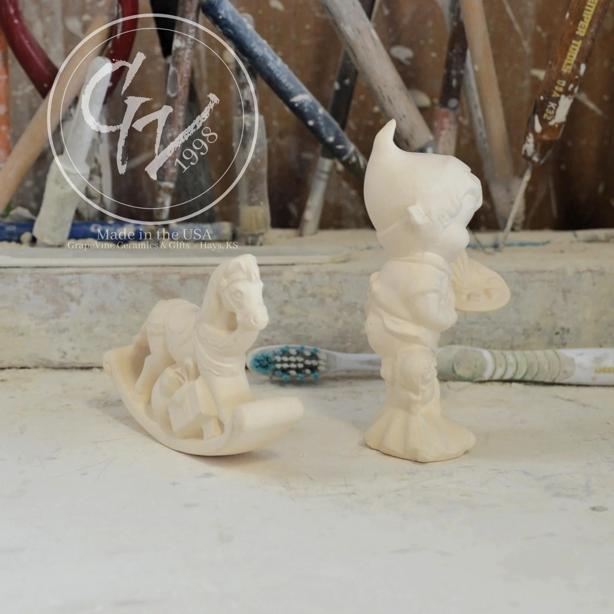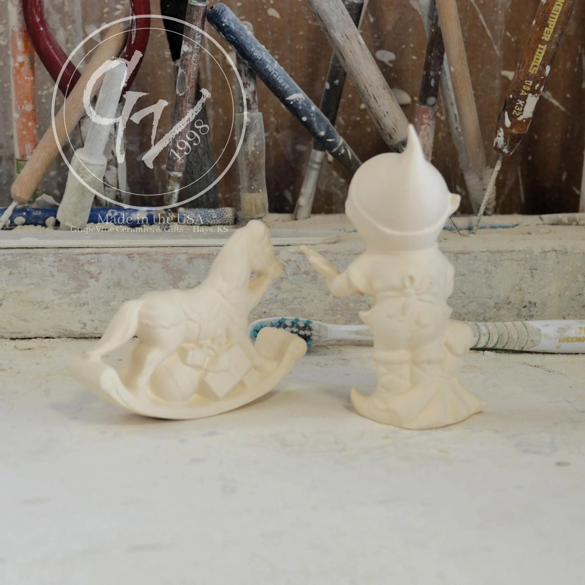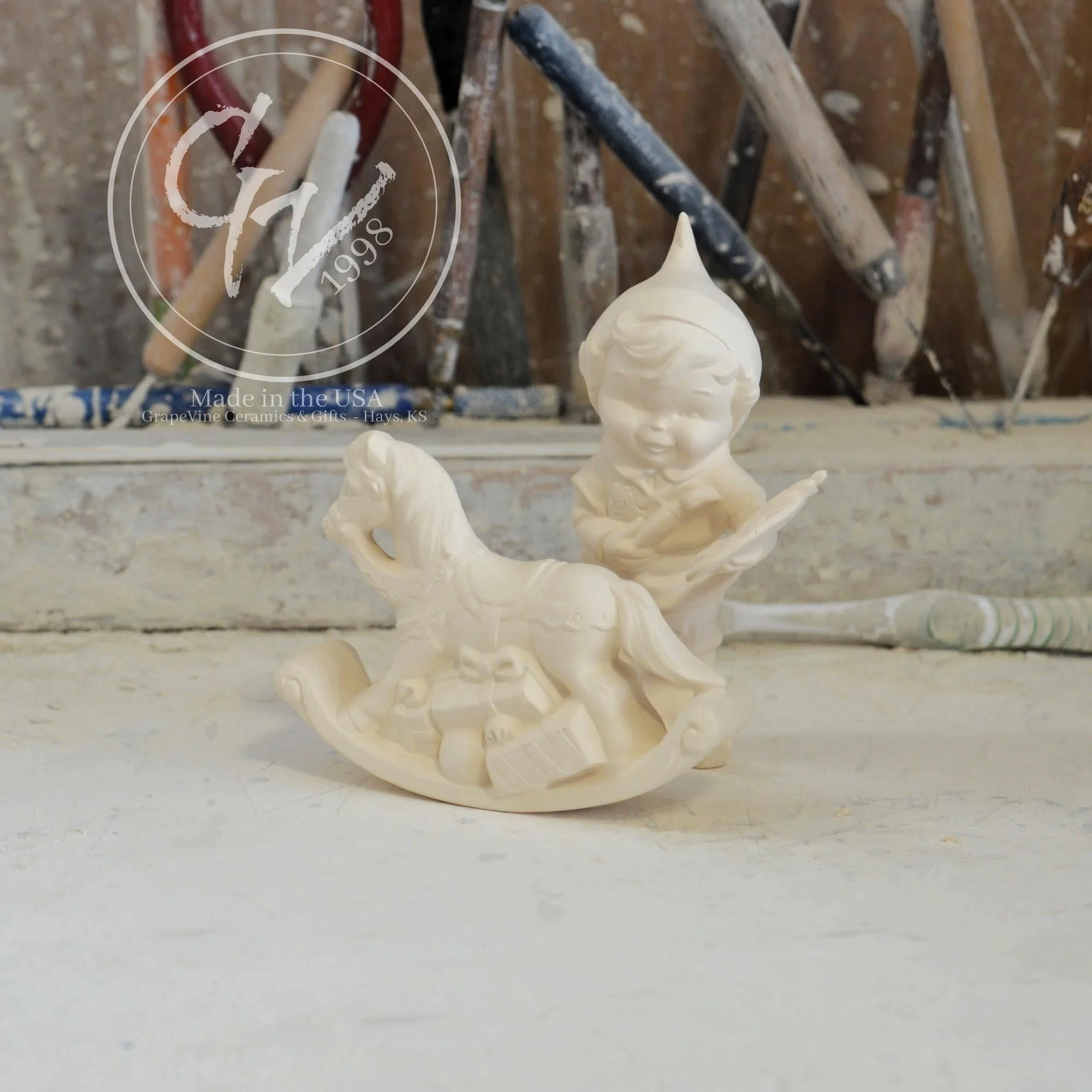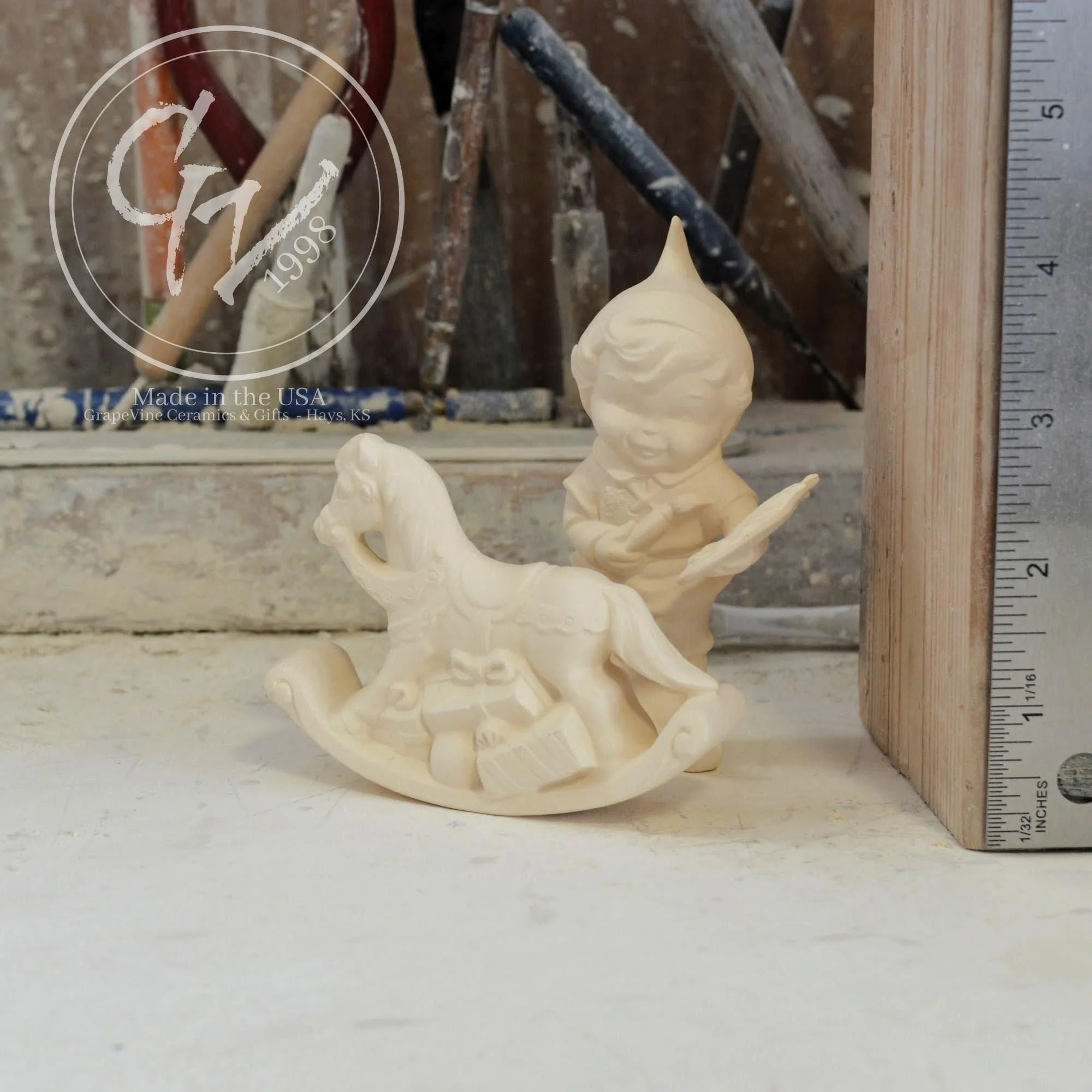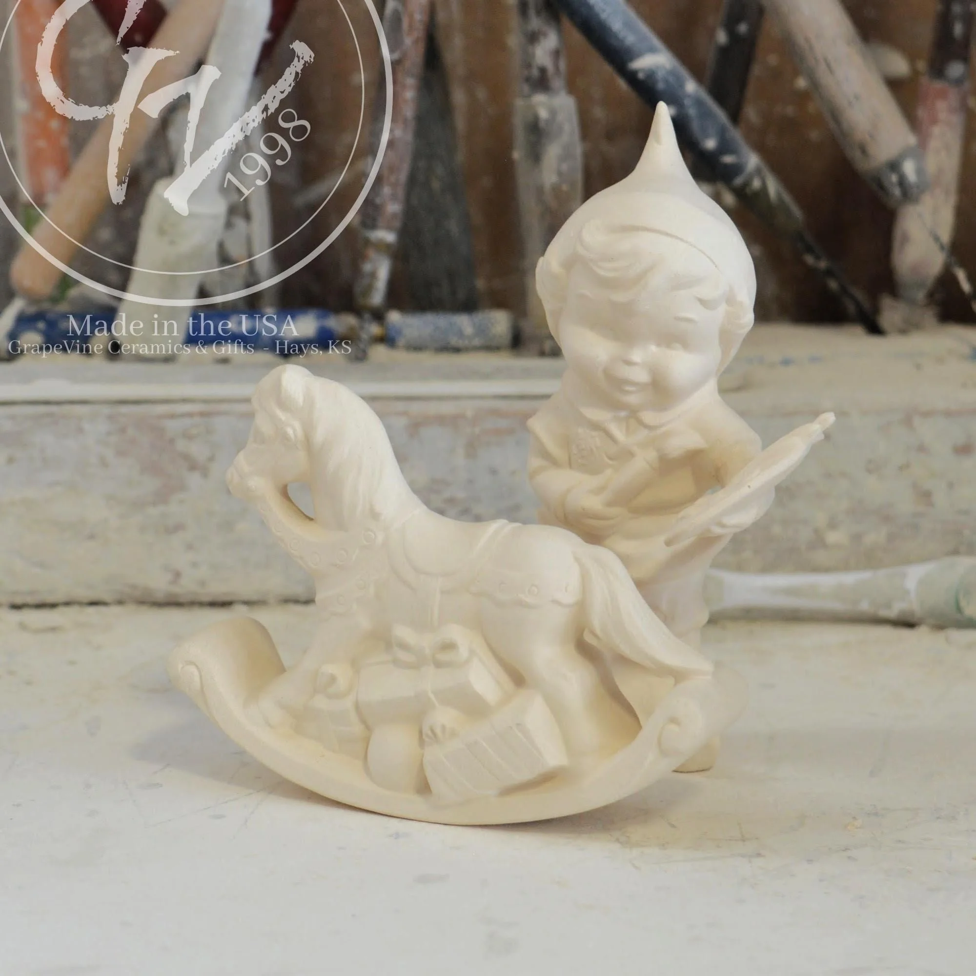 Ready to Paint - 4-inch Elf with Rocking Horse - Provincial P421