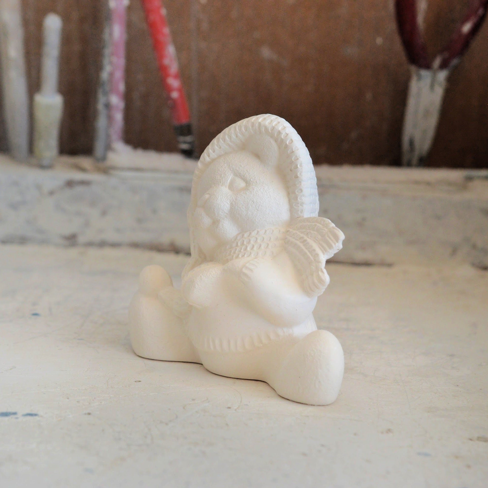 This item: • Is MADE TO ORDER • Is UNPAINTED • Ready to paint and/or glaze. • Fired to cone 04 hardness. • Made in the USA • Will be shipped packaged in bubble wrap and packing peanuts and insured to ensure safe delivery.