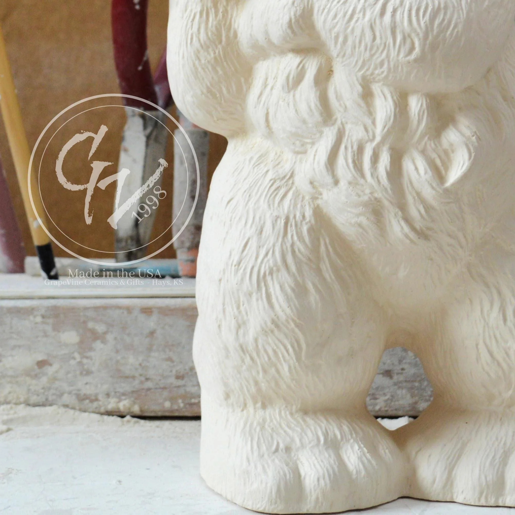 Our bisque is poured using earthenware ceramic liquid slip. Seams are then professionally cleaned, and imperfections are removed/repaired by hand. All pieces are ready for your personal touch using the medium of your choice. Recommended finishes for Cone 04 bisque: acrylic paints, artist chalk, oil paint sticks, or low-fire underglaze/glaze – the choice is yours, let your creativity flow. If you are creating items for food or liquid, please follow the directions provided by your glaze manufacturer to ensure food safe precautions. Please be aware that when using clear glaze, your piece will fire to a cream or ivory tone due to the talc content in our slip formulation. Currently, no adjustments appear necessary for pigmented glazes.