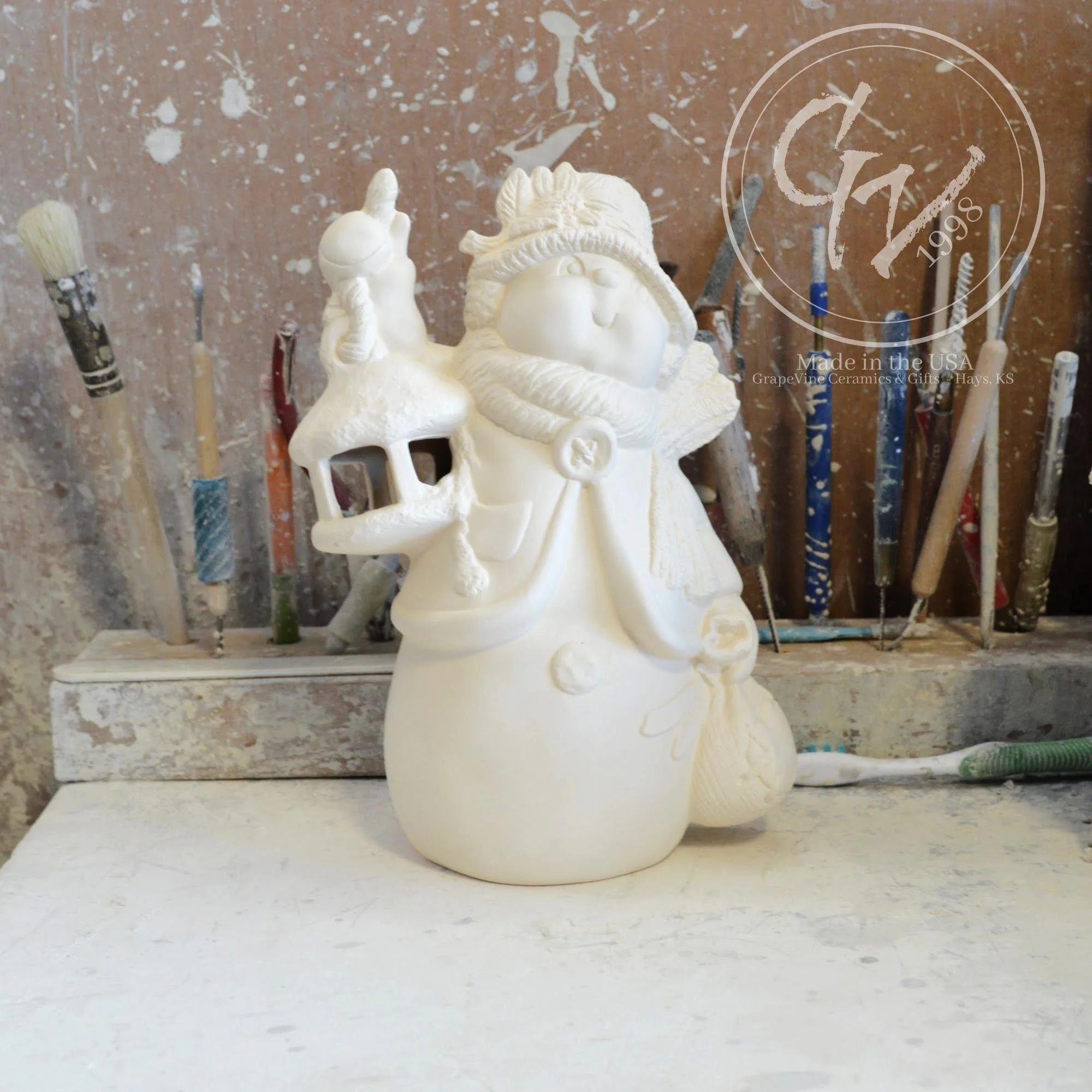 Ready to Paint Ceramic Bisque: 9" Snow Lady with Lantern Figure Riverview 960