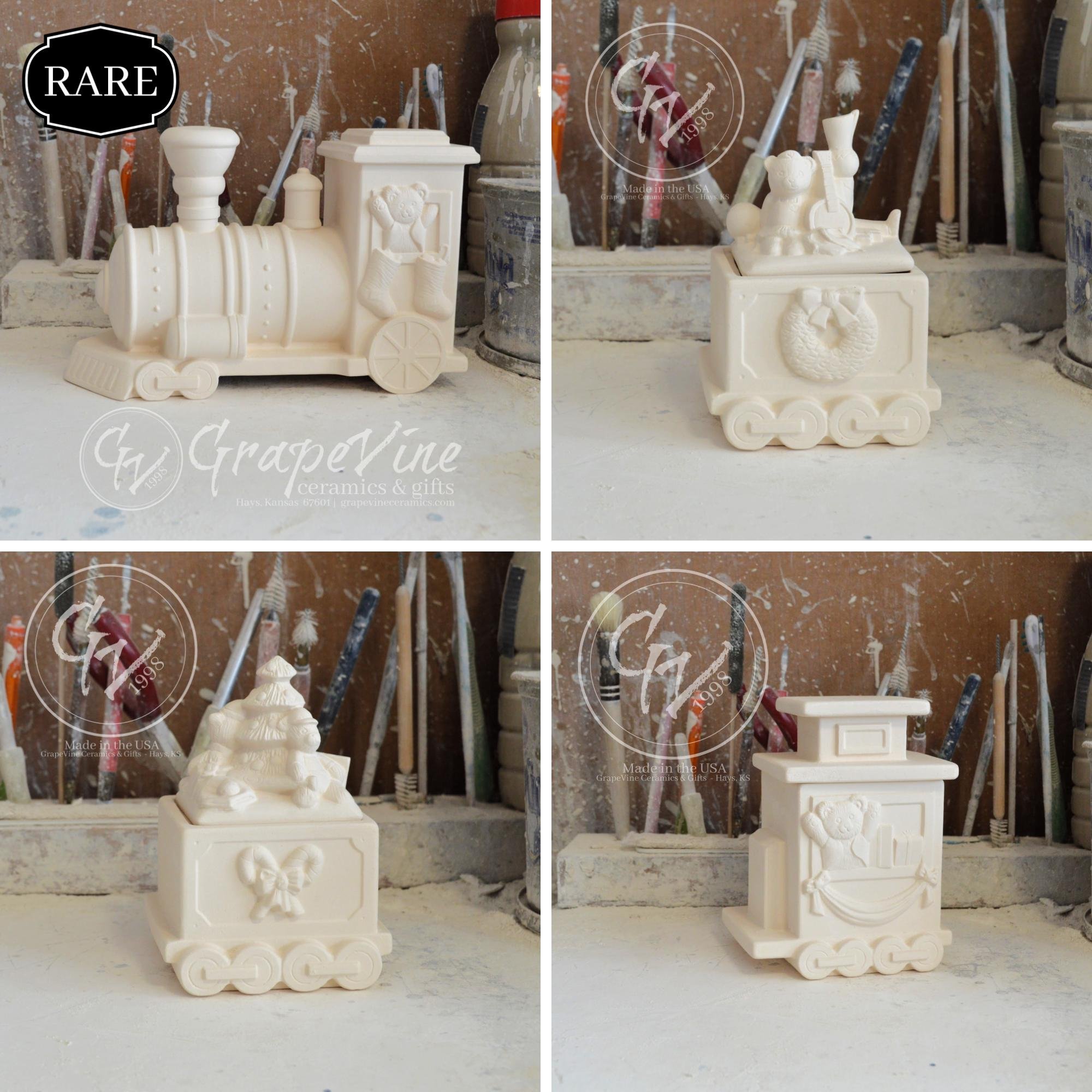 Christmas Express Train Duncan Molds: DM-634A, DM-634B, Duncan DM-634C, Duncan DM-634D Express cars have removable lids - perfect for a candy train