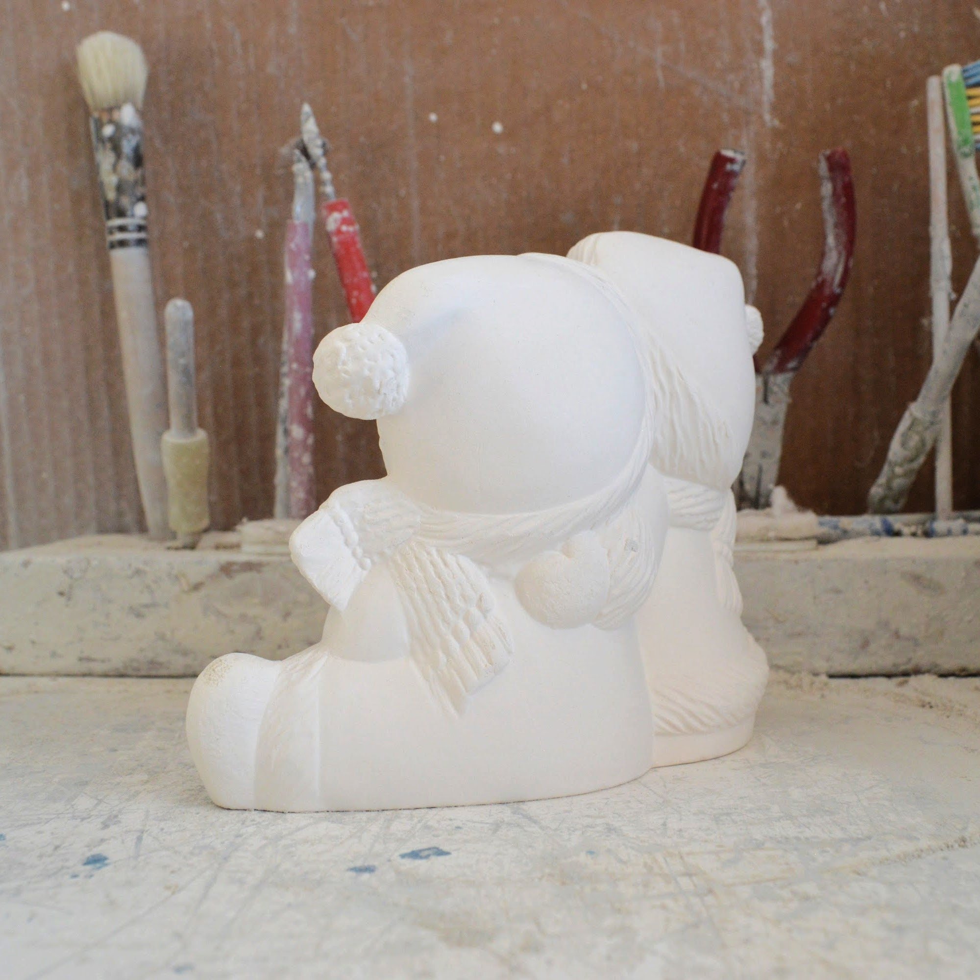 Our bisque is poured using earthenware ceramic liquid slip. Seams are then professionally cleaned, and imperfections are removed/repaired by hand. All pieces are ready for your personal touch using the medium of your choice. Recommended finishes for Cone 04 bisque: acrylic paints, artist chalk, oil paint sticks, or low-fire underglaze/glaze – the choice is yours, let your creativity flow. If you are creating items for food or liquid, please follow the directions provided by your glaze manufacturer to ensure food safe precautions. Please be aware that when using clear glaze, your piece will fire to a cream or ivory tone due to the talc content in our slip formulation. Currently, no adjustments appear necessary for pigmented glazes.