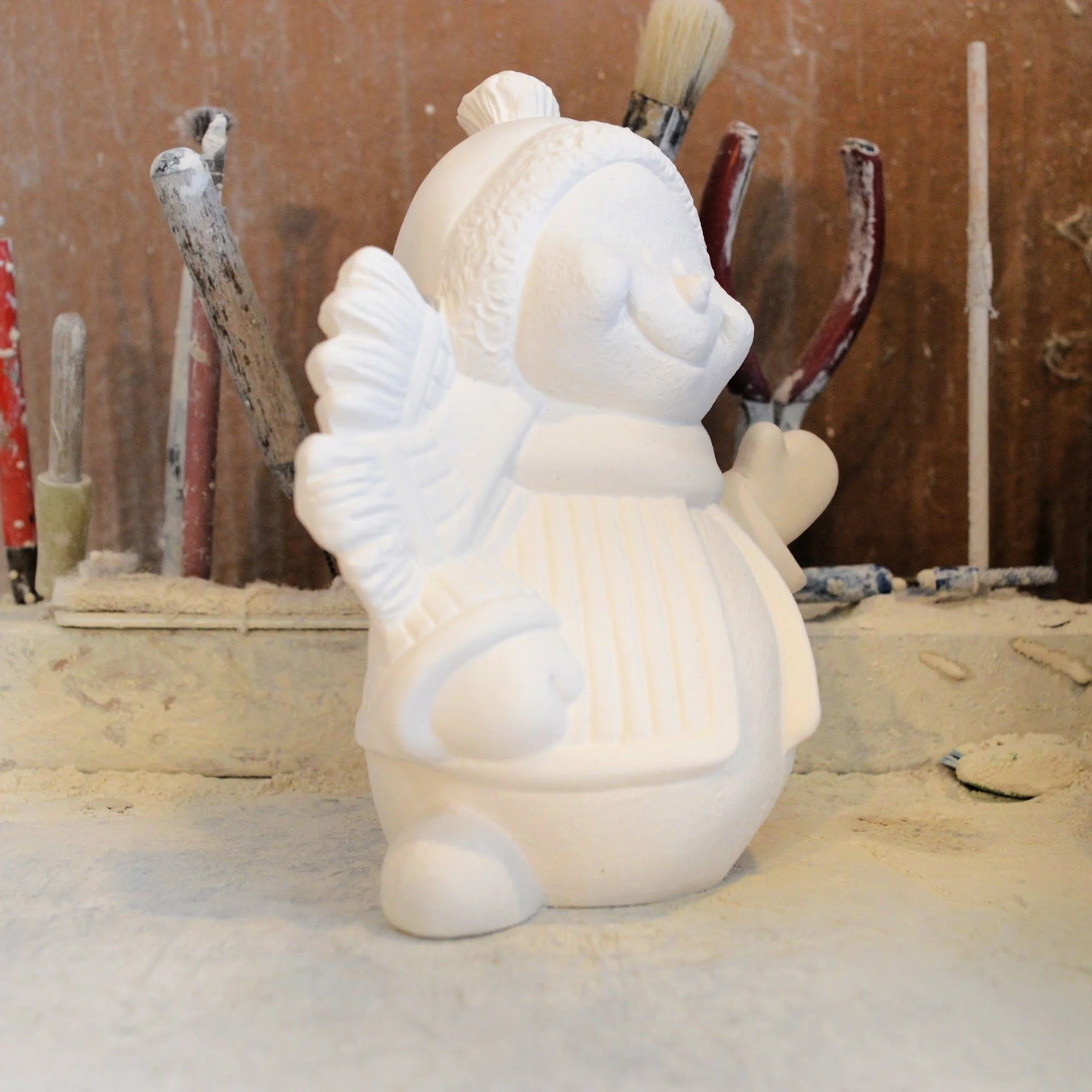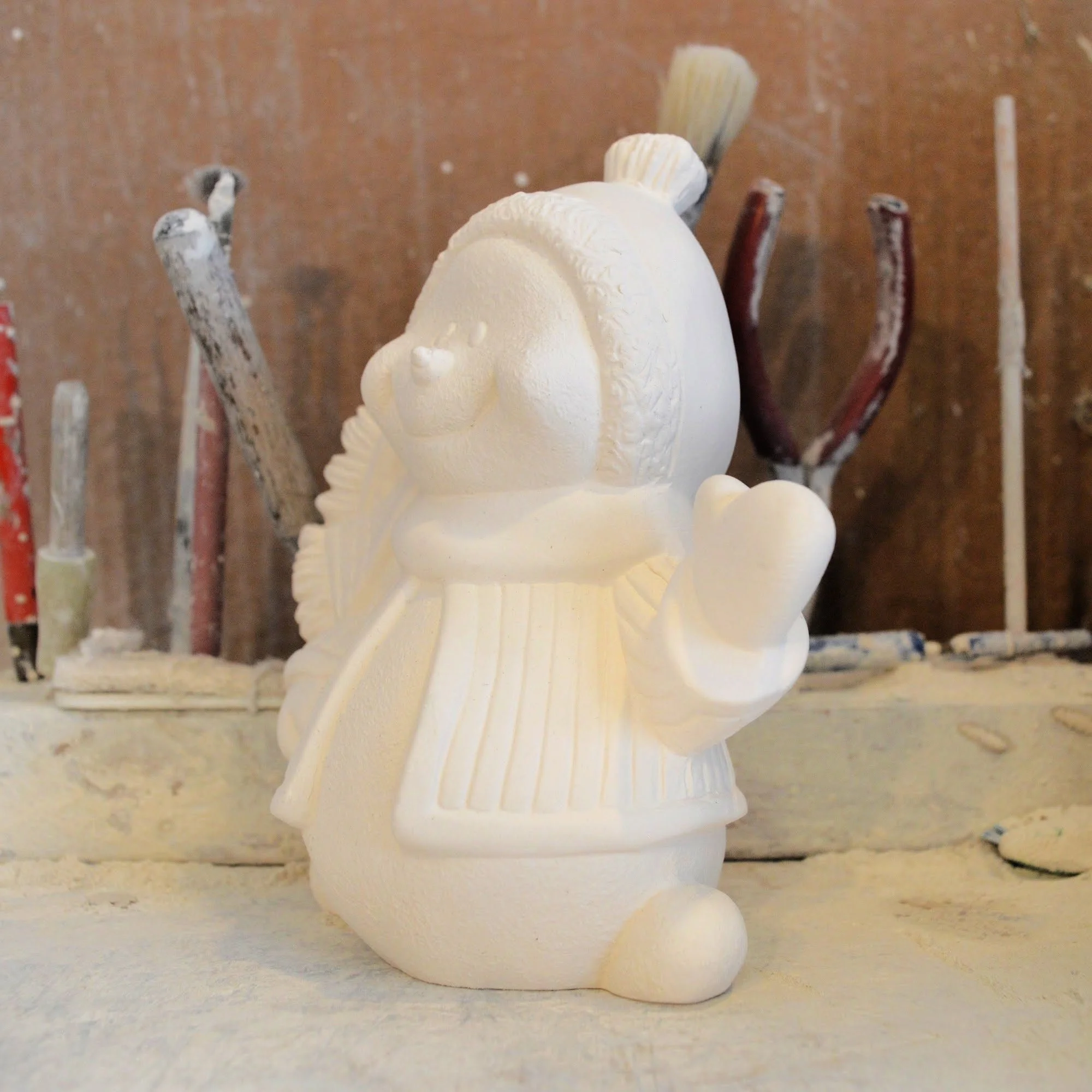 Our bisque is poured using earthenware ceramic liquid slip. Seams are then professionally cleaned, and imperfections are removed/repaired by hand. All pieces are ready for your personal touch using the medium of your choice. Recommended finishes for Cone 04 bisque: acrylic paints, artist chalk, oil paint sticks, or low-fire underglaze/glaze – the choice is yours, let your creativity flow. If you are creating items for food or liquid, please follow the directions provided by your glaze manufacturer to ensure food safe precautions. Please be aware that when using clear glaze, your piece will fire to a cream or ivory tone due to the talc content in our slip formulation. Currently, no adjustments appear necessary for pigmented glazes.