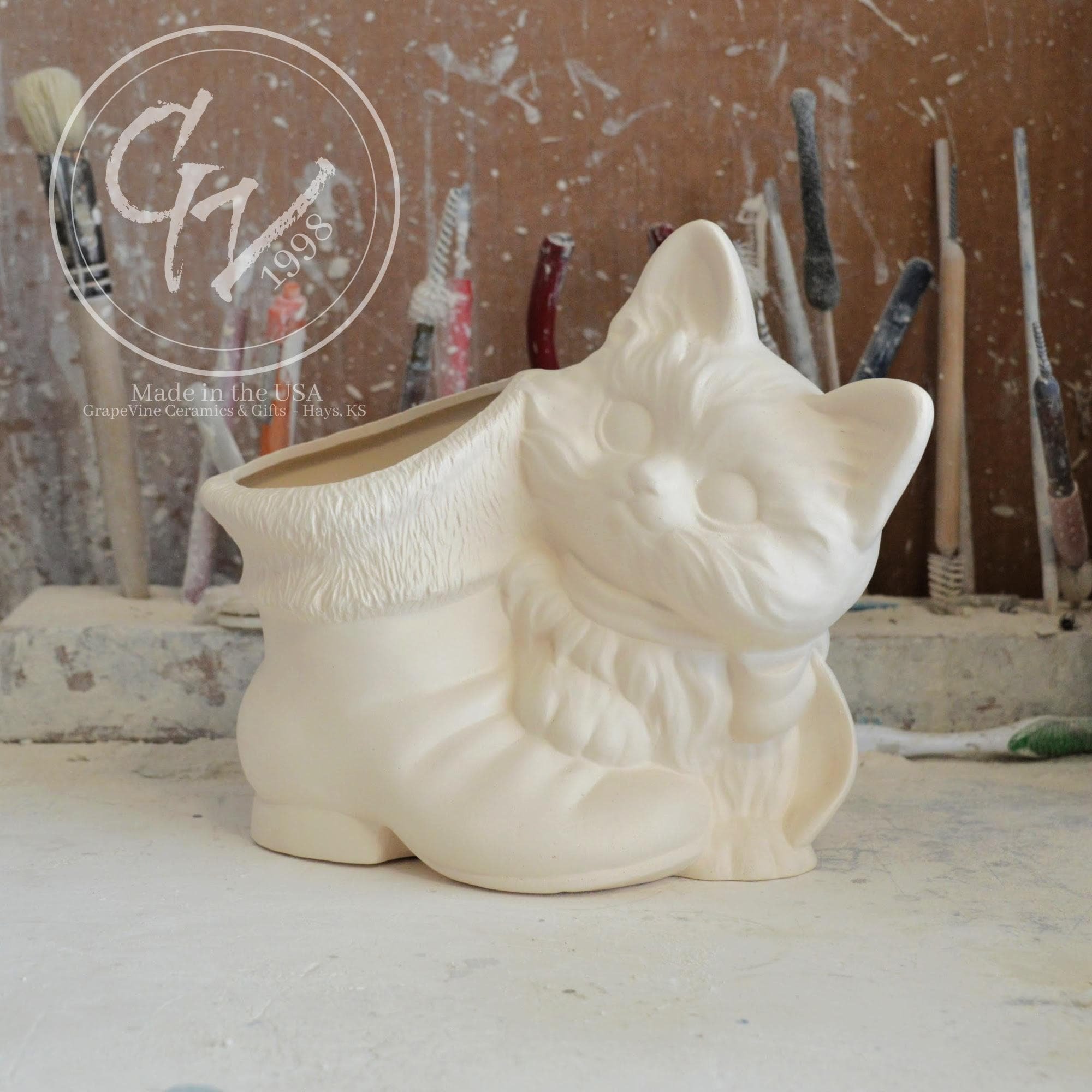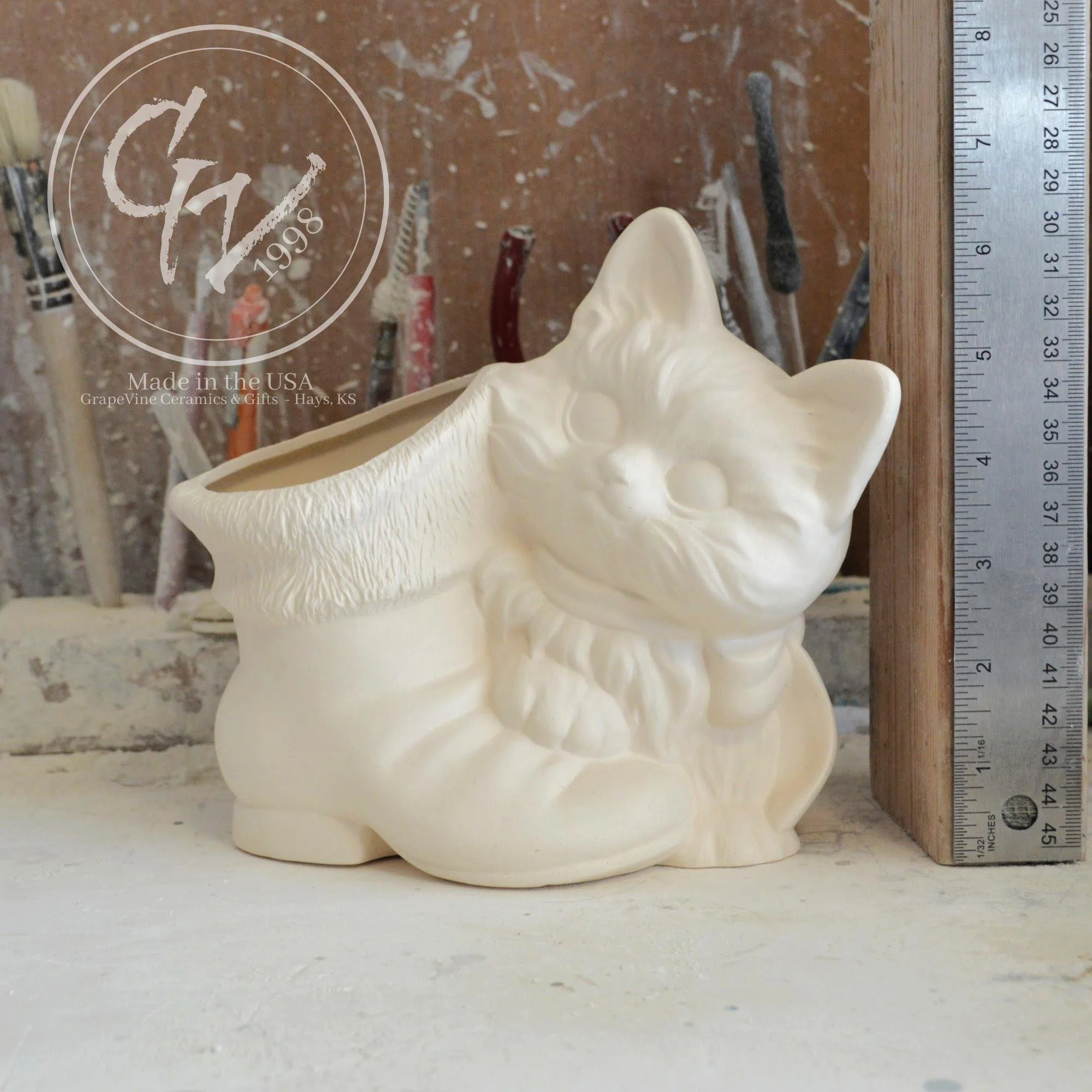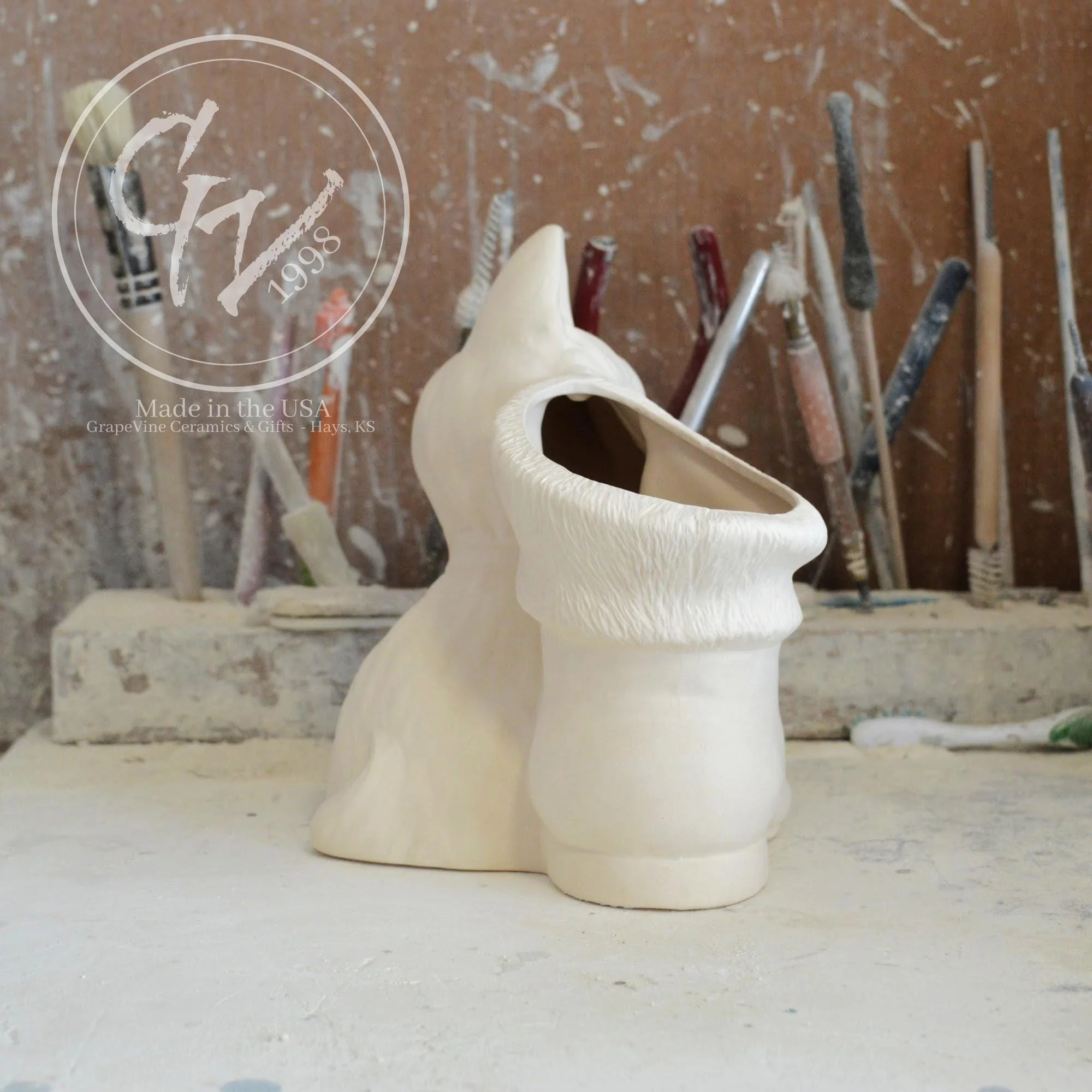 Ready to Paint - Kitten with Santa Boot - Duncan DM-1917