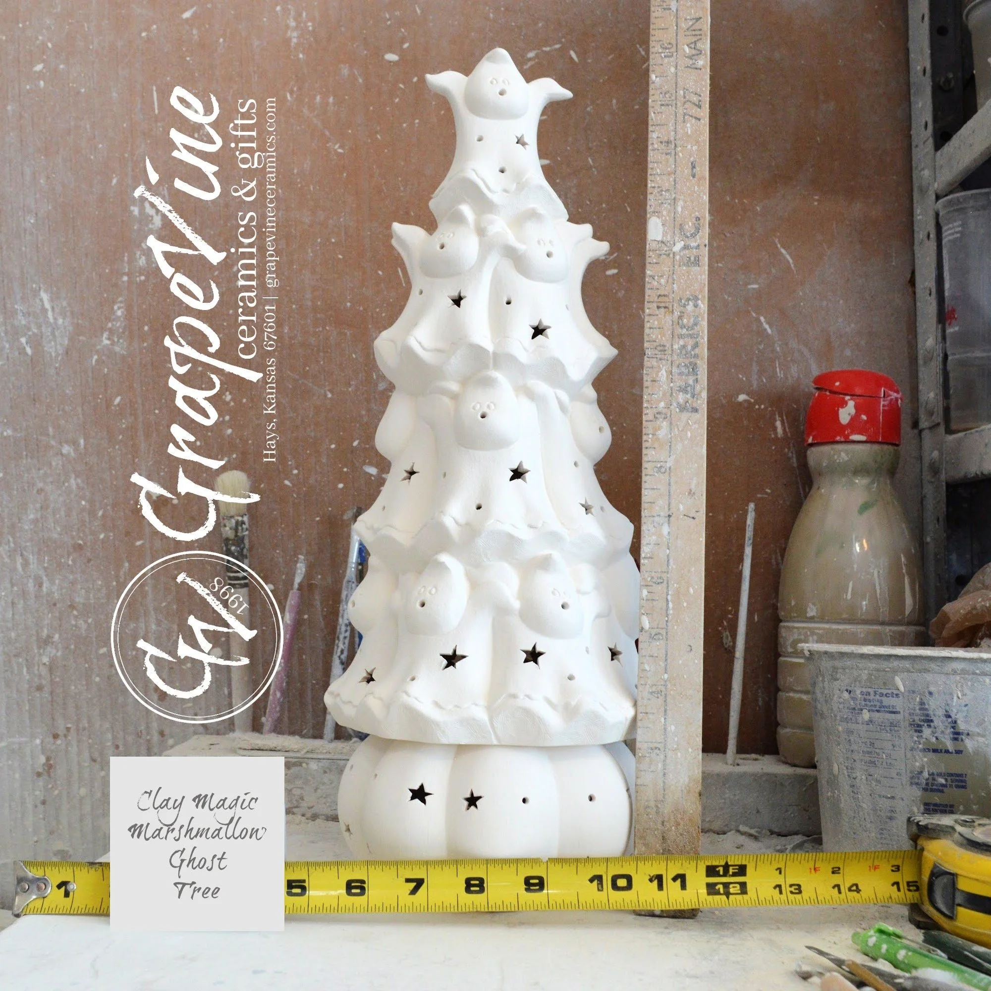 Ready to Paint - Marshmallow Ghost Tree - Clay Magic 4363.4364