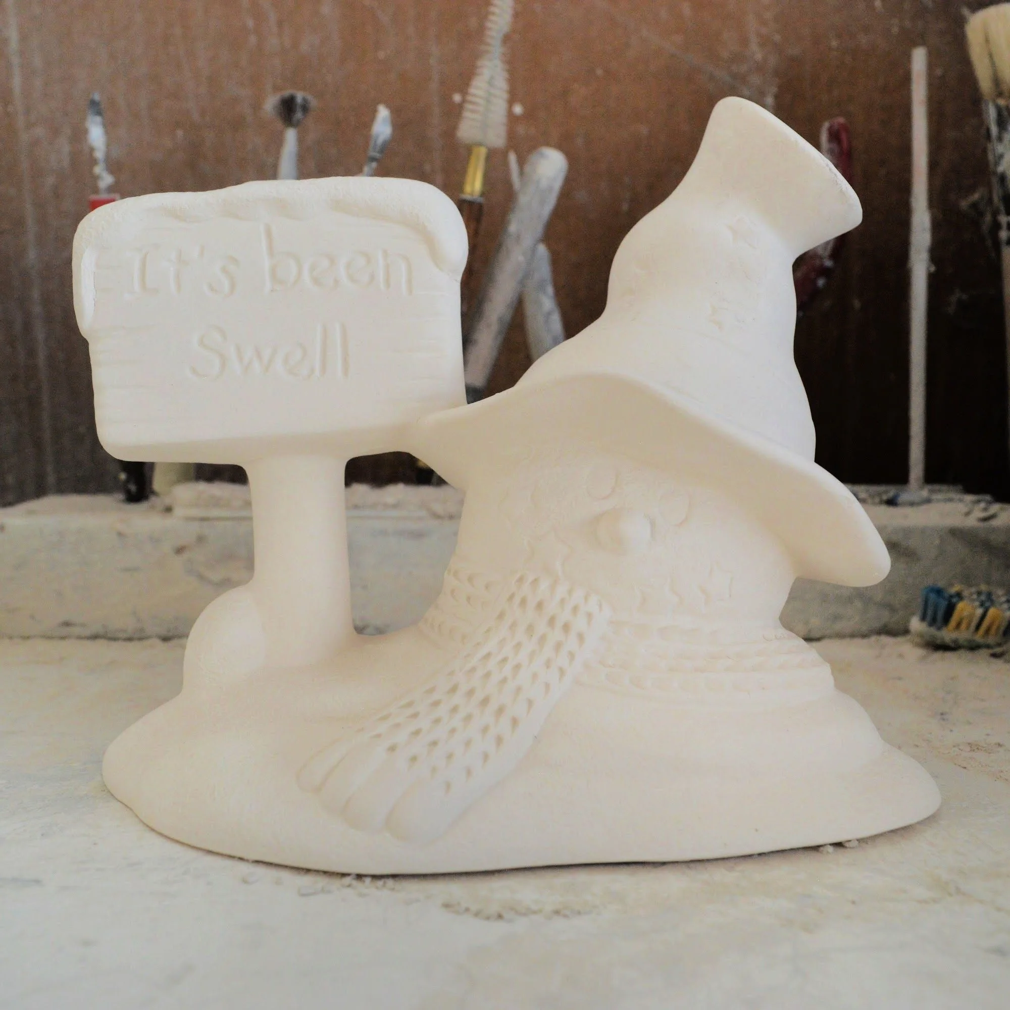 Our bisque is poured using earthenware ceramic liquid slip. Seams are then professionally cleaned, and imperfections are removed/repaired by hand. All pieces are ready for your personal touch using the medium of your choice. Recommended finishes for Cone 04 bisque: acrylic paints, artist chalk, oil paint sticks, or low-fire underglaze/glaze – the choice is yours, let your creativity flow. If you are creating items for food or liquid, please follow the directions provided by your glaze manufacturer to ensure food safe precautions. Please be aware that when using clear glaze, your piece will fire to a cream or ivory tone due to the talc content in our slip formulation. Currently, no adjustments appear necessary for pigmented glazes.