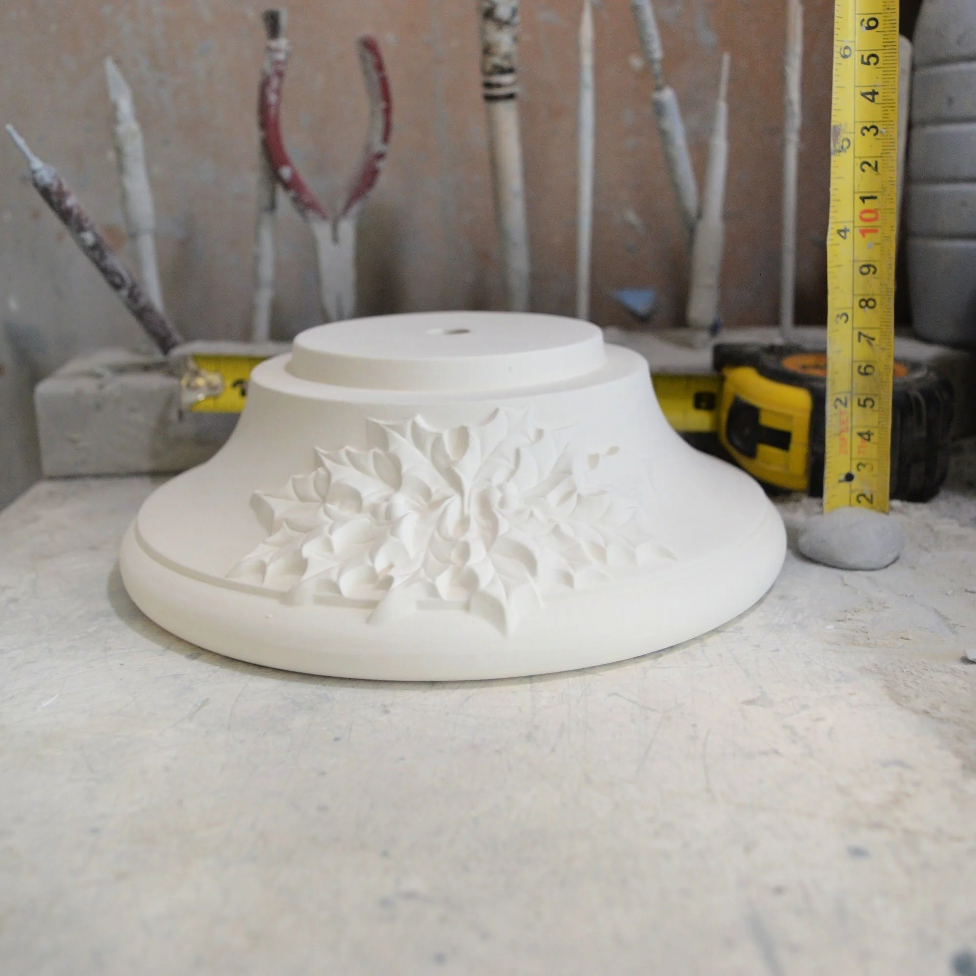 This item: • Is MADE TO ORDER • Is UNPAINTED • Ready to paint and/or glaze. • Fired to cone 04 hardness. • Options to purchase a light kit and decorative bulbs included in the listing • Made in the USA • Will be shipped packaged in bubble wrap and packing peanuts and insured to ensure safe delivery.