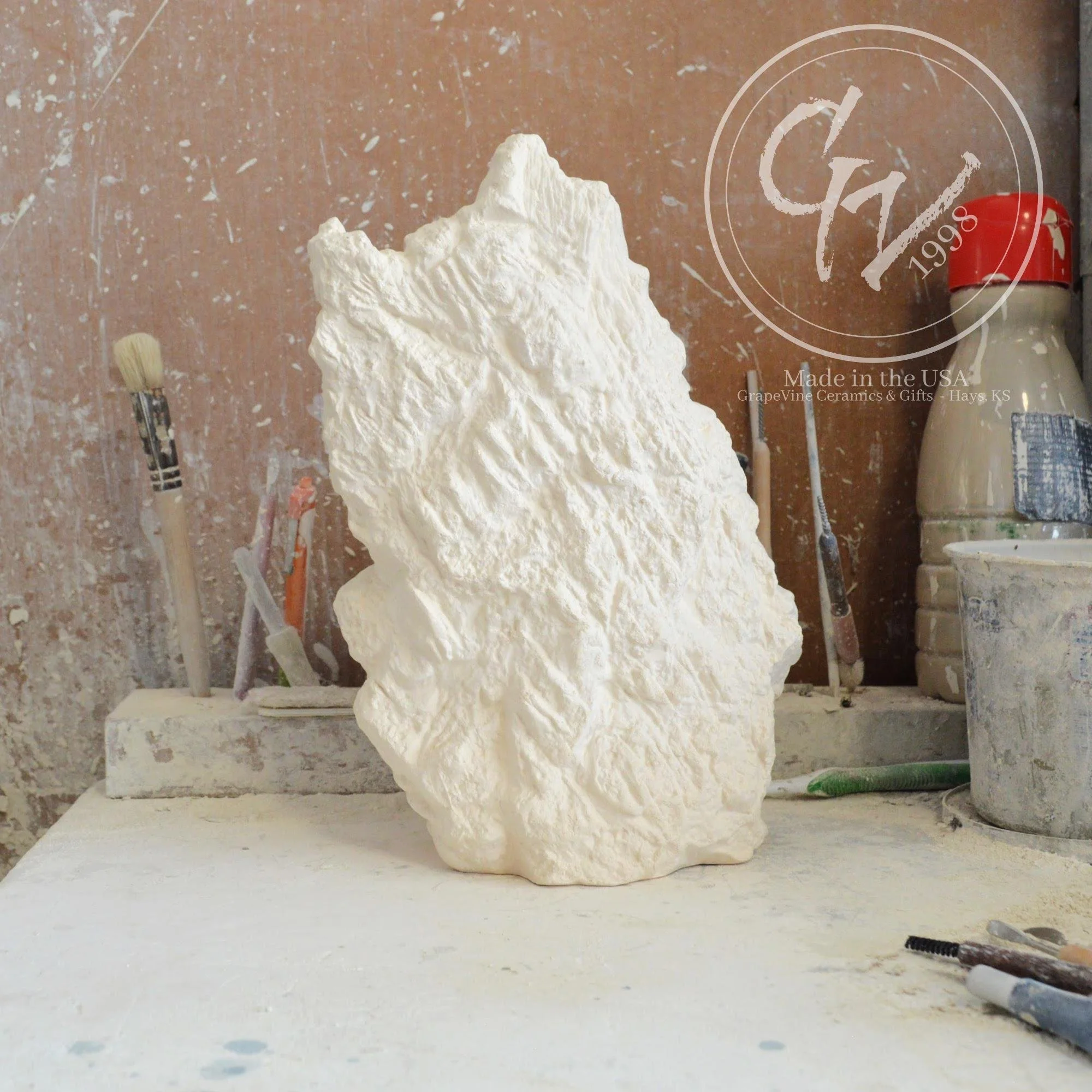 Our bisque is poured using earthenware ceramic liquid slip. Seams are then professionally cleaned, and imperfections are removed/repaired by hand. All pieces are ready for your personal touch using the medium of your choice. Recommended finishes for Cone 04 bisque: acrylic paints, artist chalk, oil paint sticks, or low-fire underglaze/glaze – the choice is yours, let your creativity flow. If you are creating items for food or liquid, please follow the directions provided by your glaze manufacturer to ensure food safe precautions. Please be aware that when using clear glaze, your piece will fire to a cream or ivory tone due to the talc content in our slip formulation. Currently, no adjustments appear necessary for pigmented glazes.