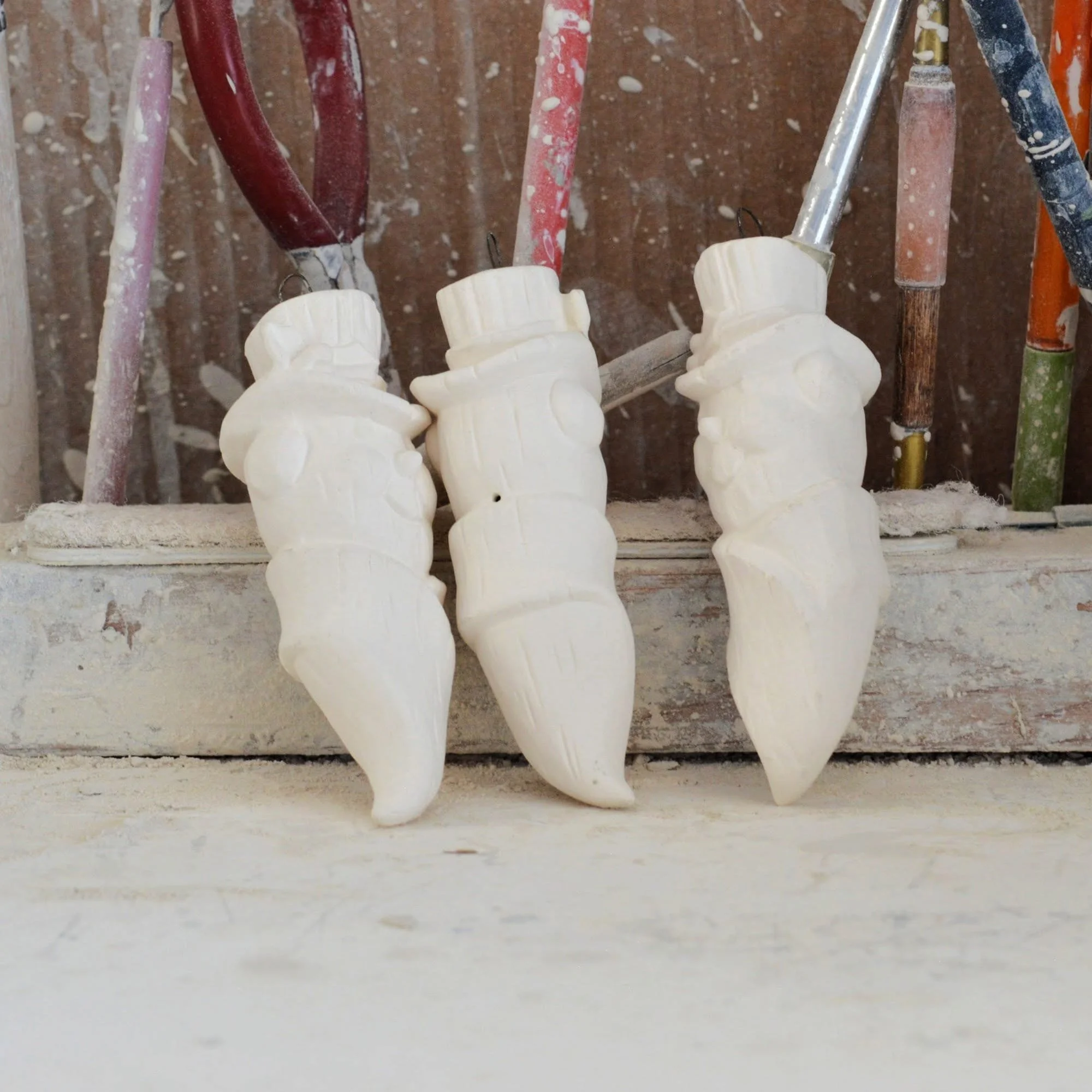 Ready to Paint - RARE Three Carved Snowman Ornaments - Kimple 2131