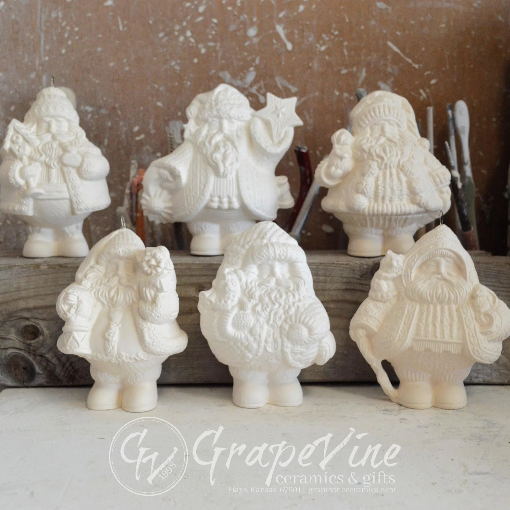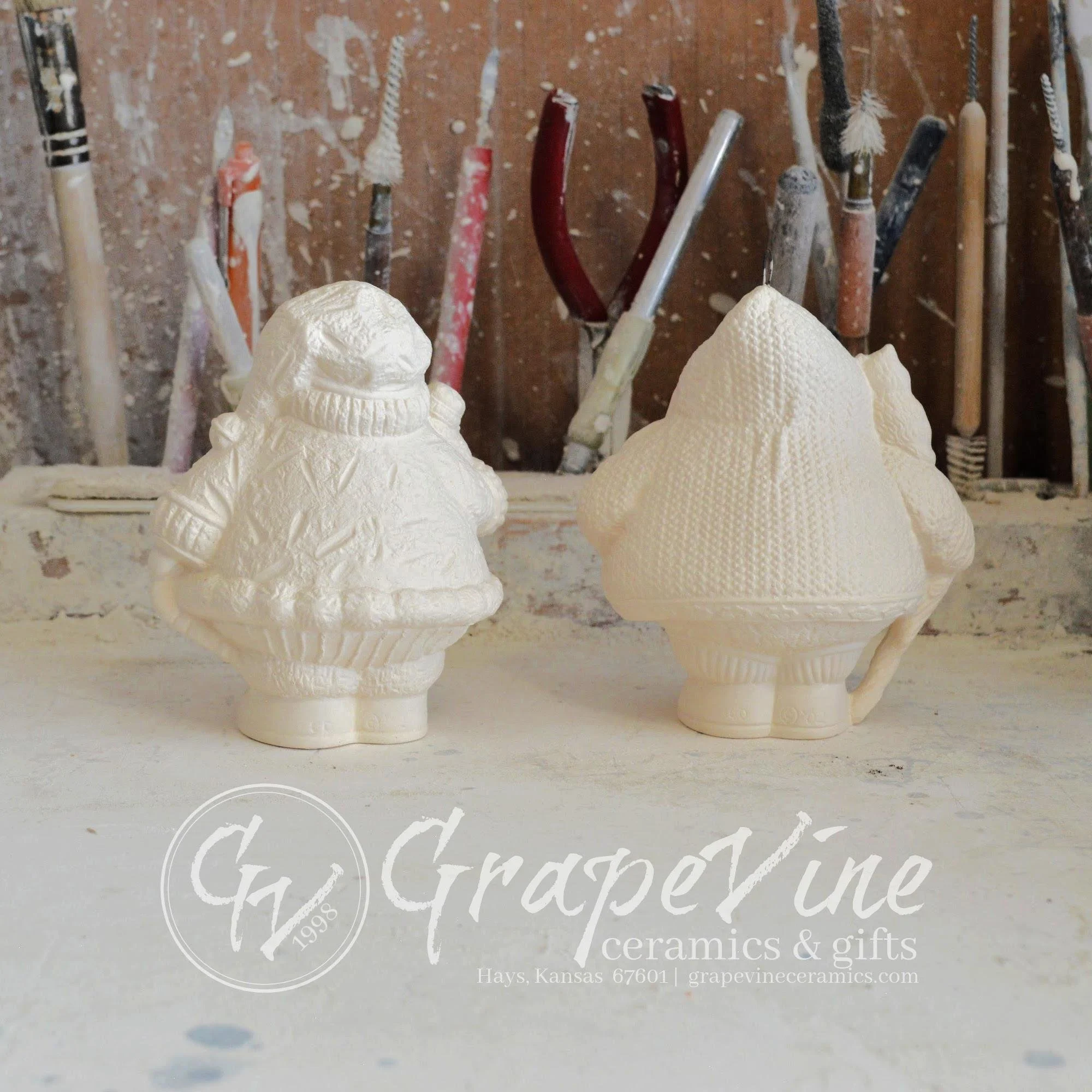 Ready to Paint-Set of 2 - Small Roly Poly Santa with North Woods and Snowman - Cardinal Designs CD-556