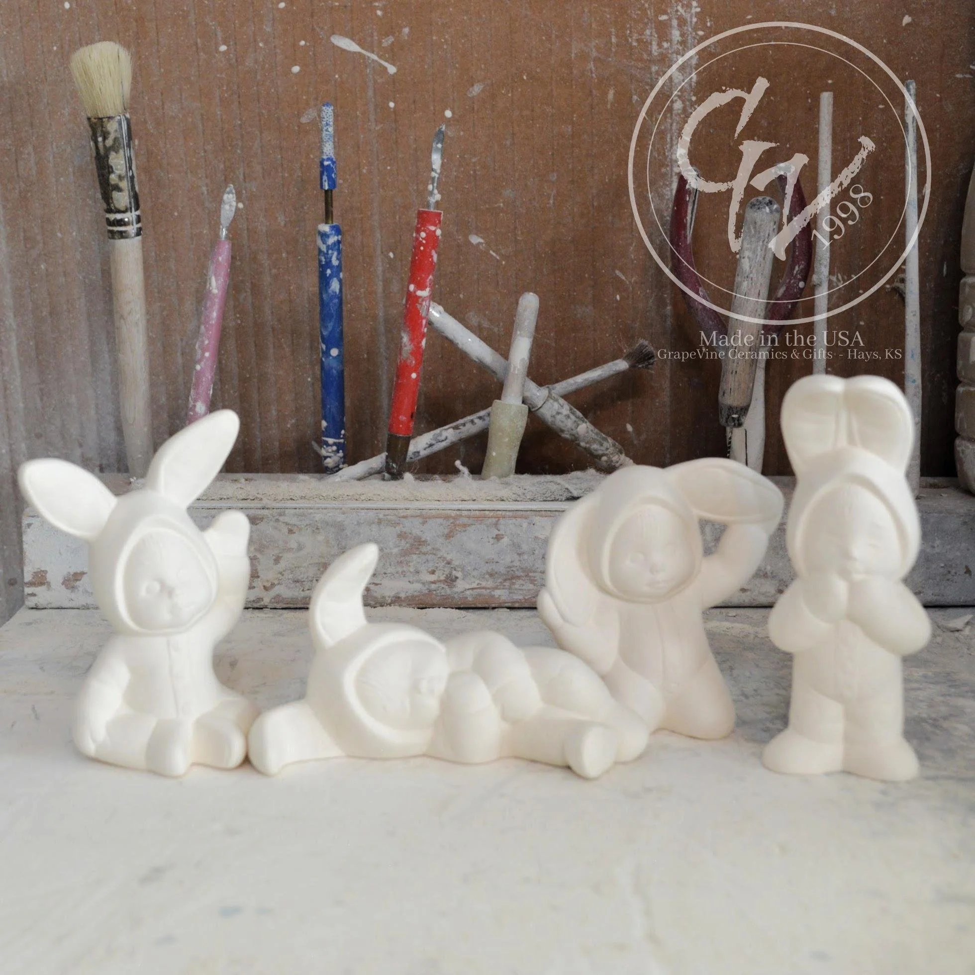 Ready to Paint - Set of 4 - 4-inch Tiny Tot Bunnies - Donas 862