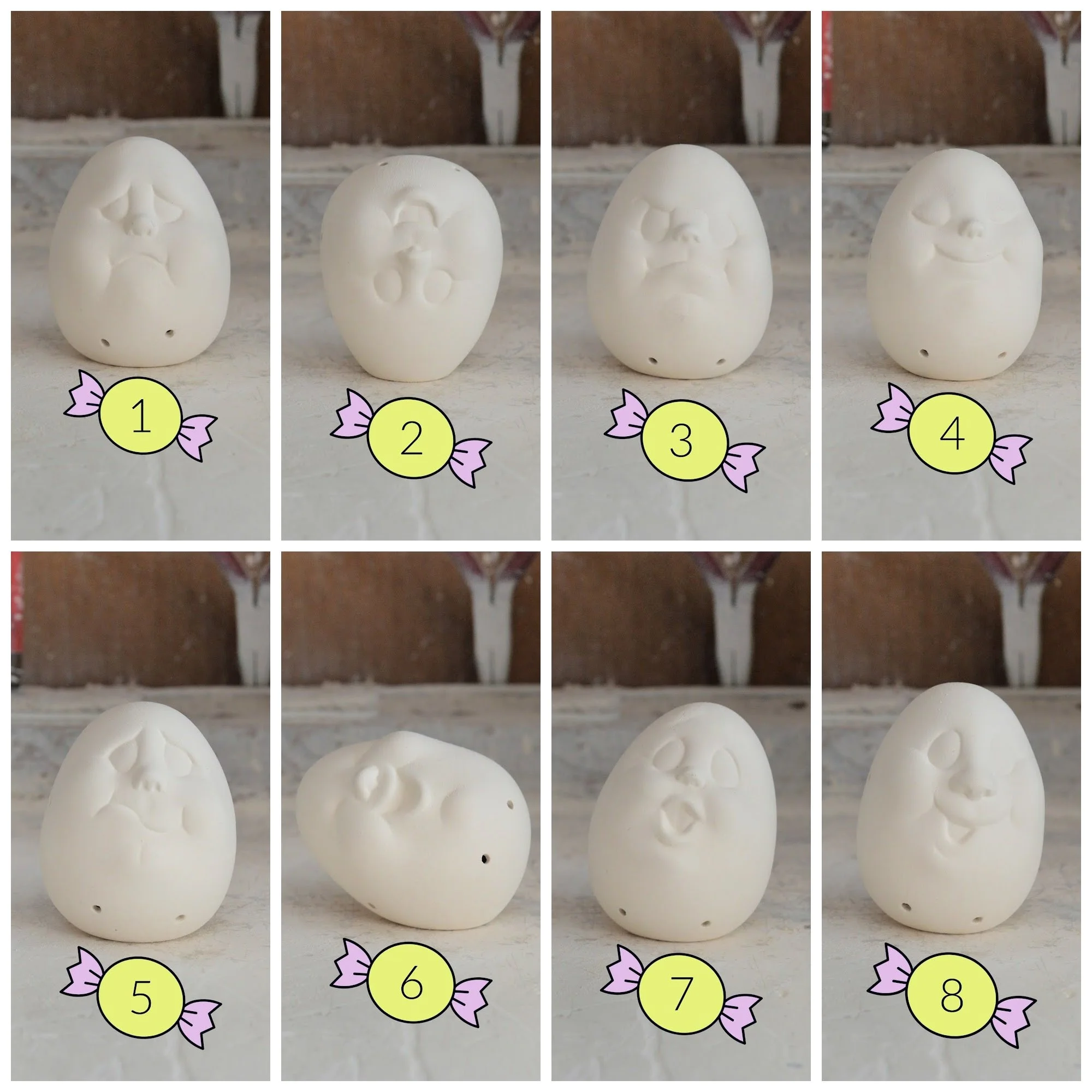 Ready to Paint - Set of 8 Egg Noggins including Hands and Feet - Donas 858