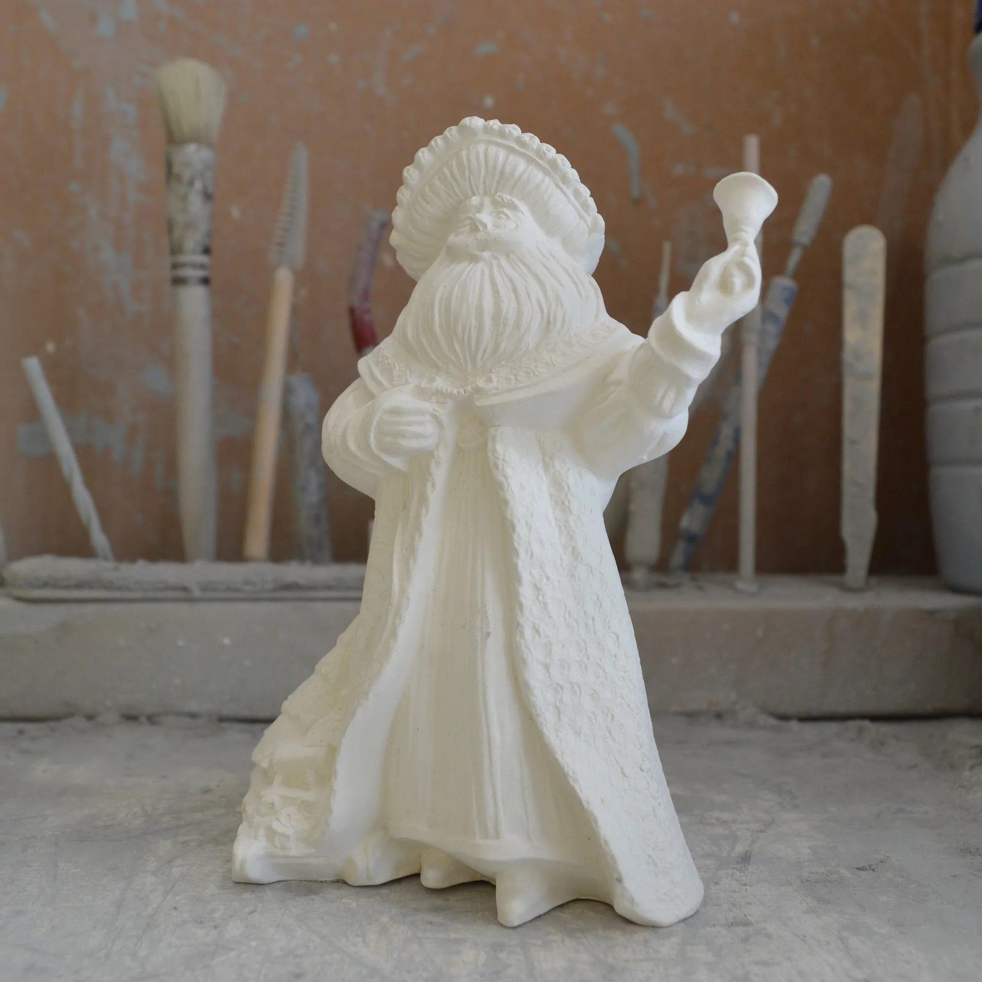 Ready to Paint - Small Antique Santa with Bell and Sled - Gare 2507