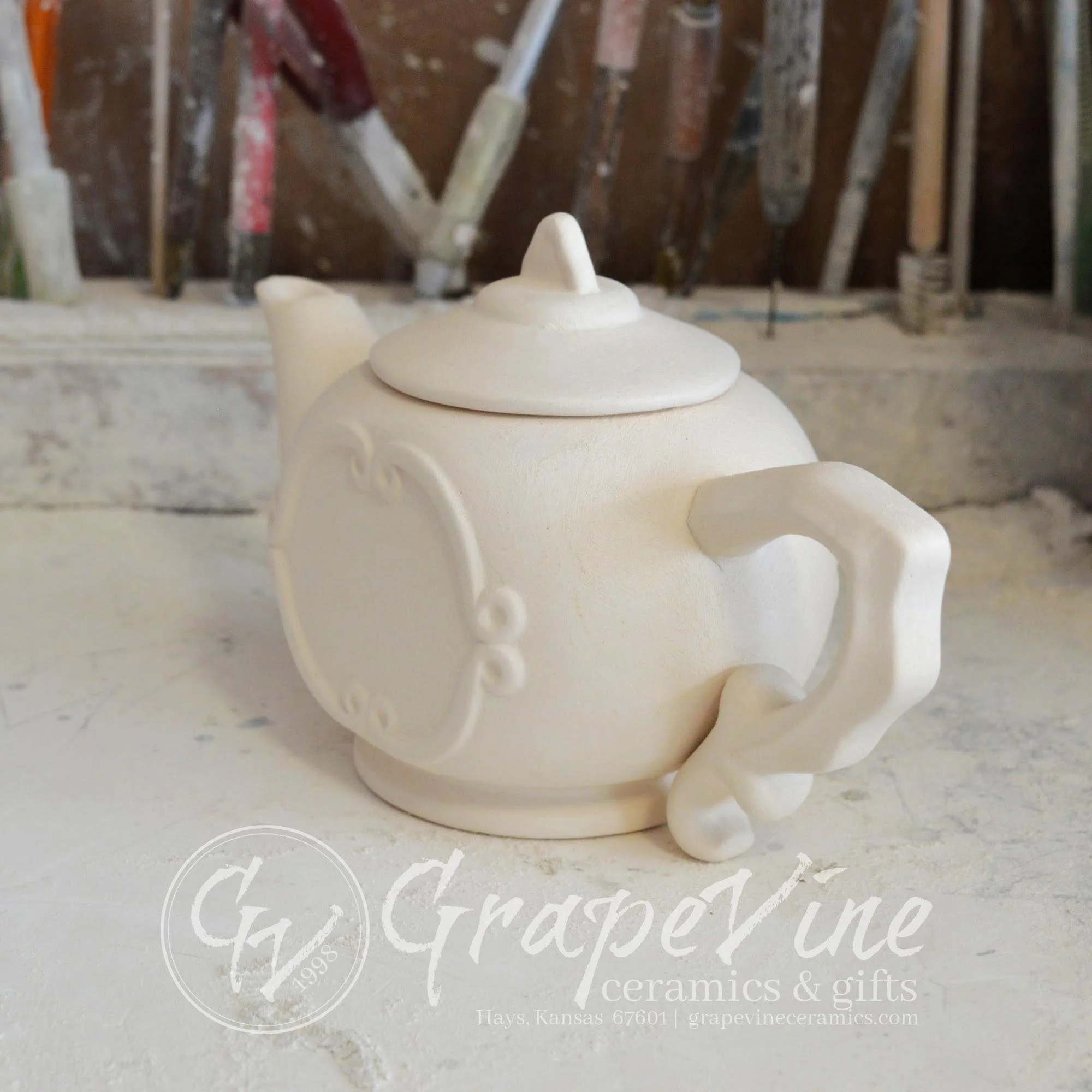 Transparency: GrapeVine Ceramics Bisque Shop is running in conjunction with GrapeVine Ceramics & Gifts and Darwin’s Caverns. To view our finished wares, visit: www.etsy.com/shop/GrapeVineCeramicsGft and www.etsy.com/shop/DarwinsCaverns