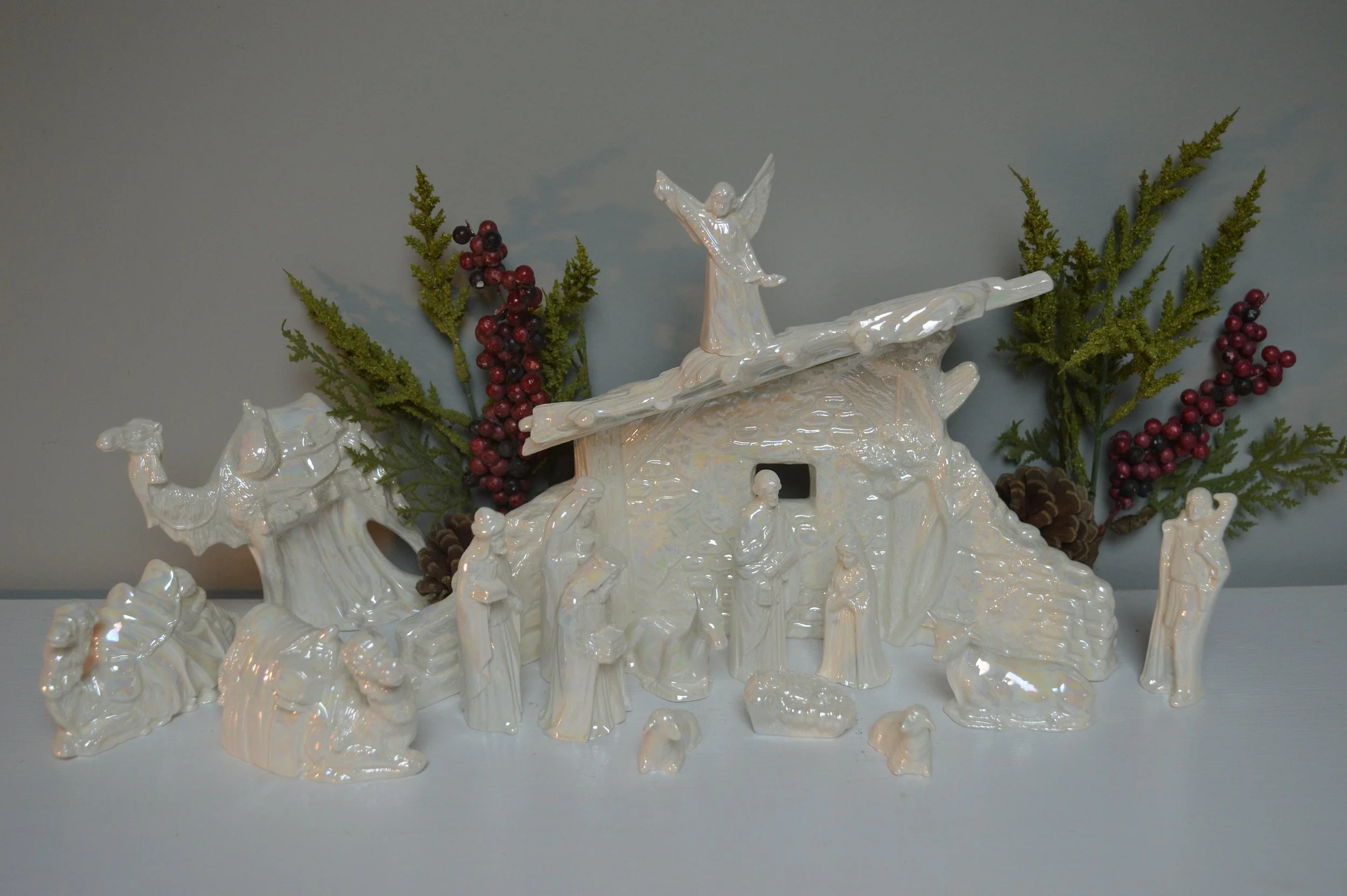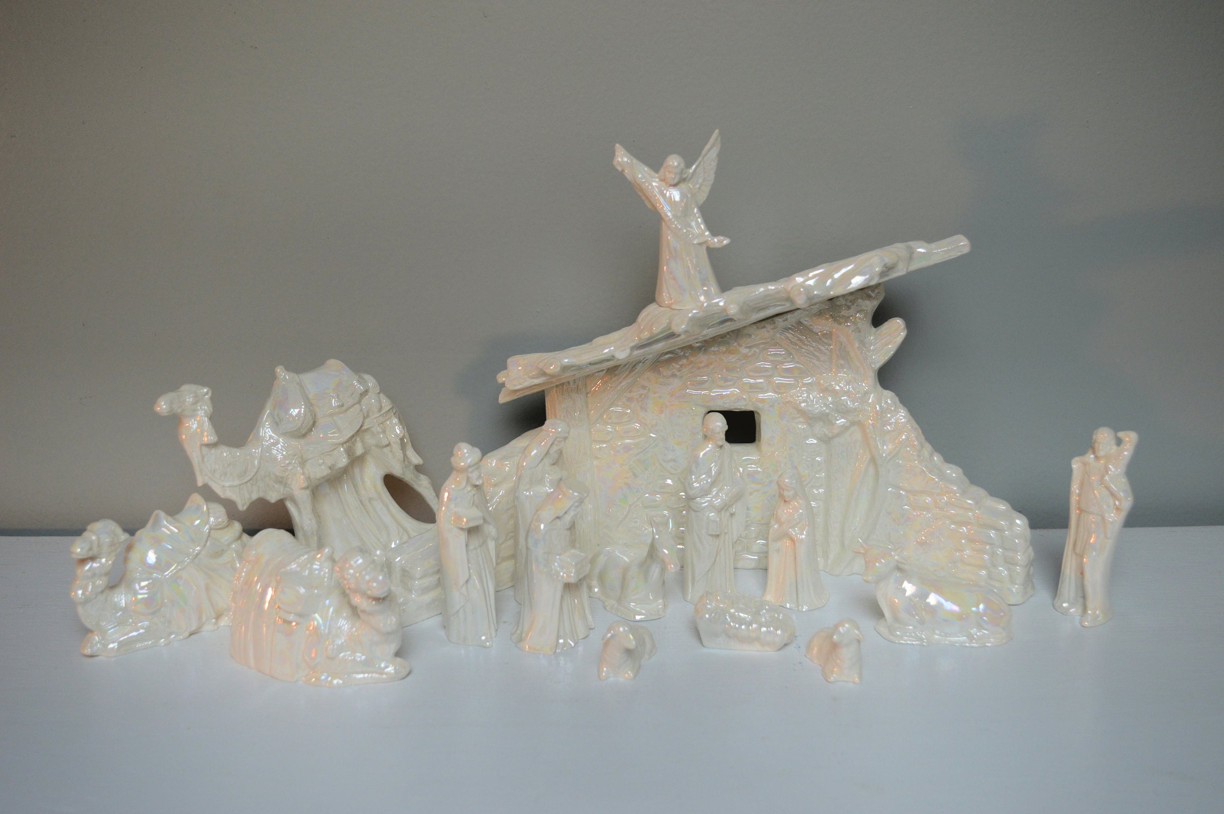 Small Riverview Ceramic Nativity Creche Scene Mother of Pearl