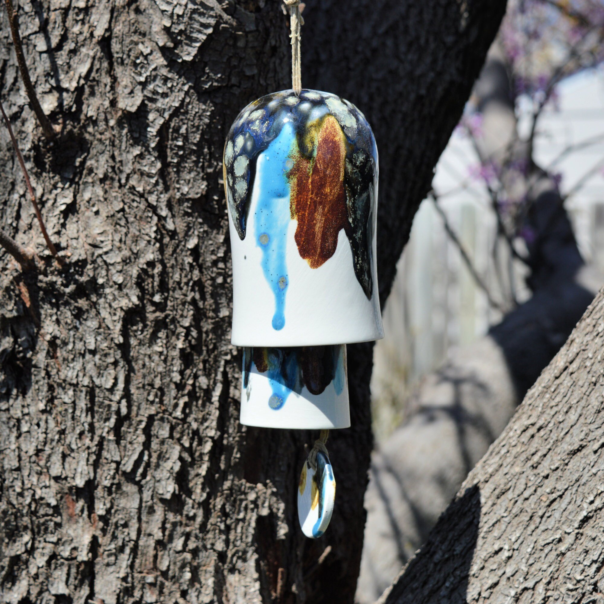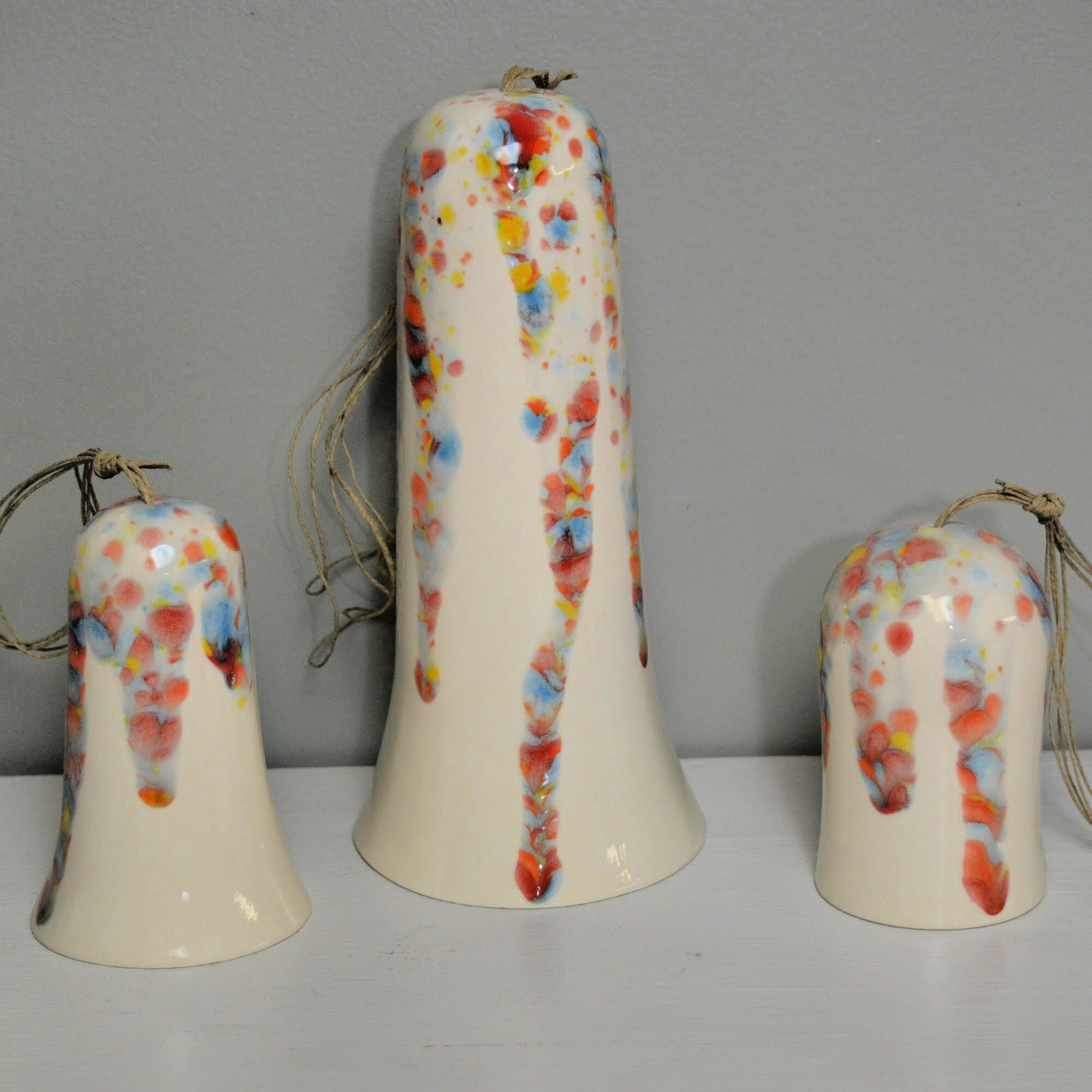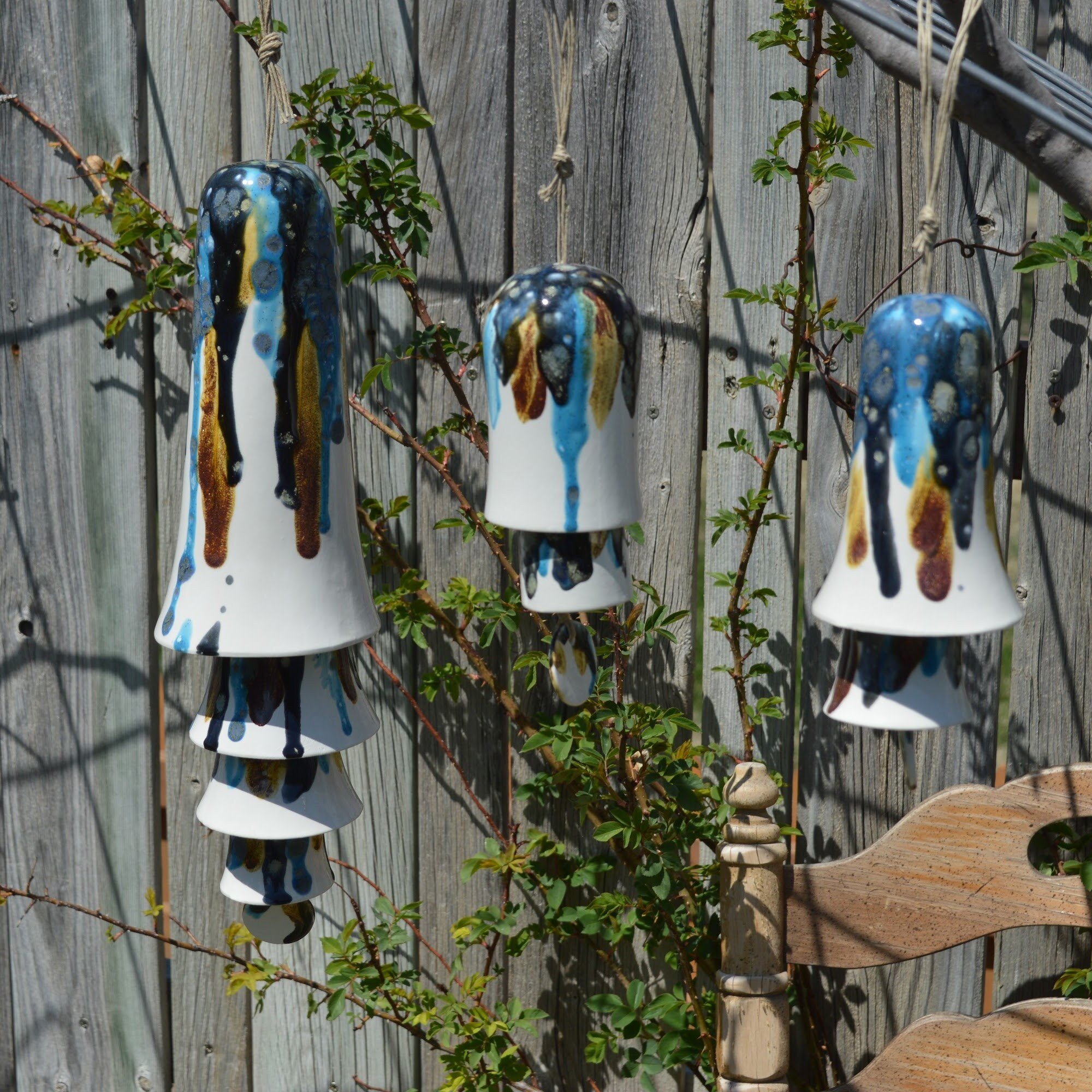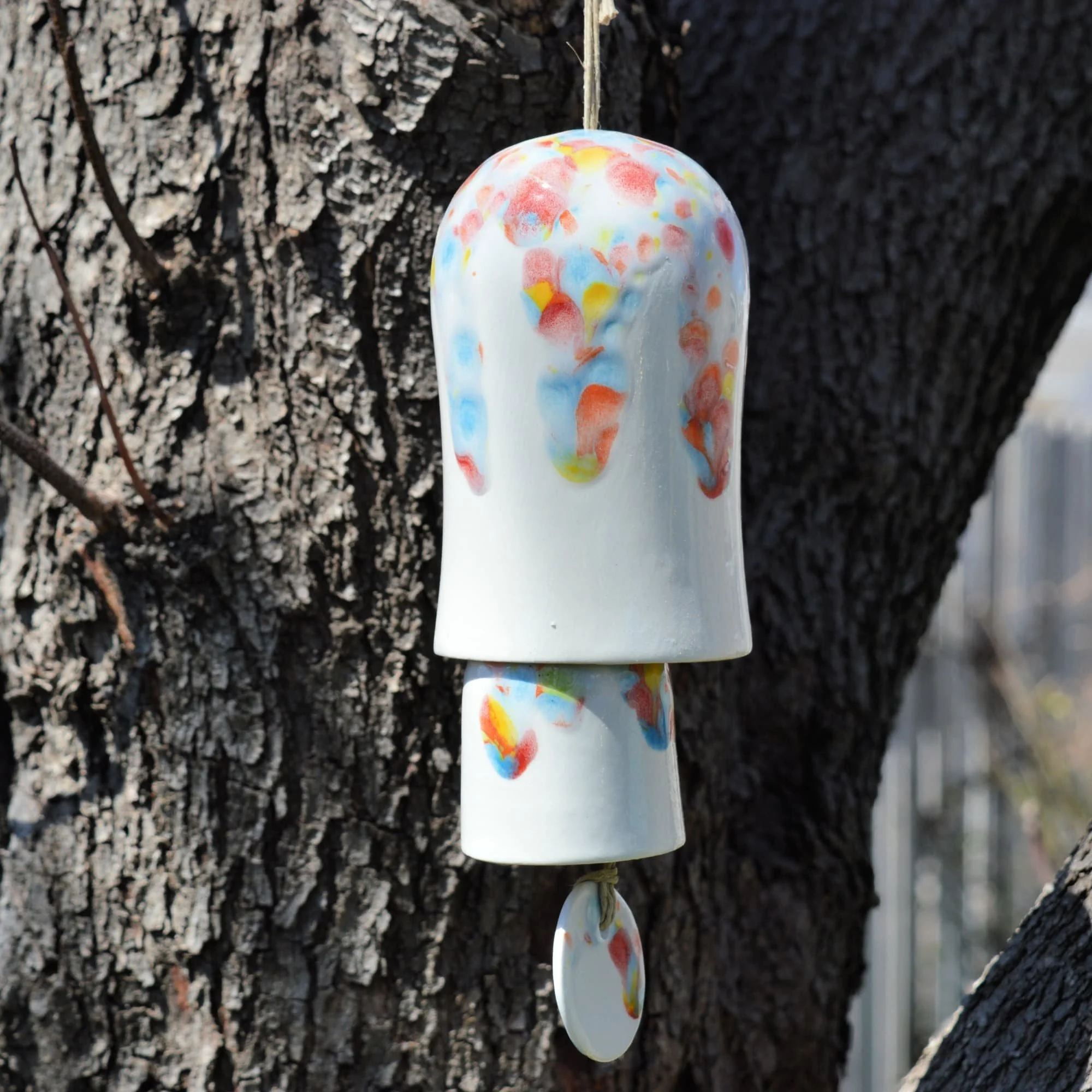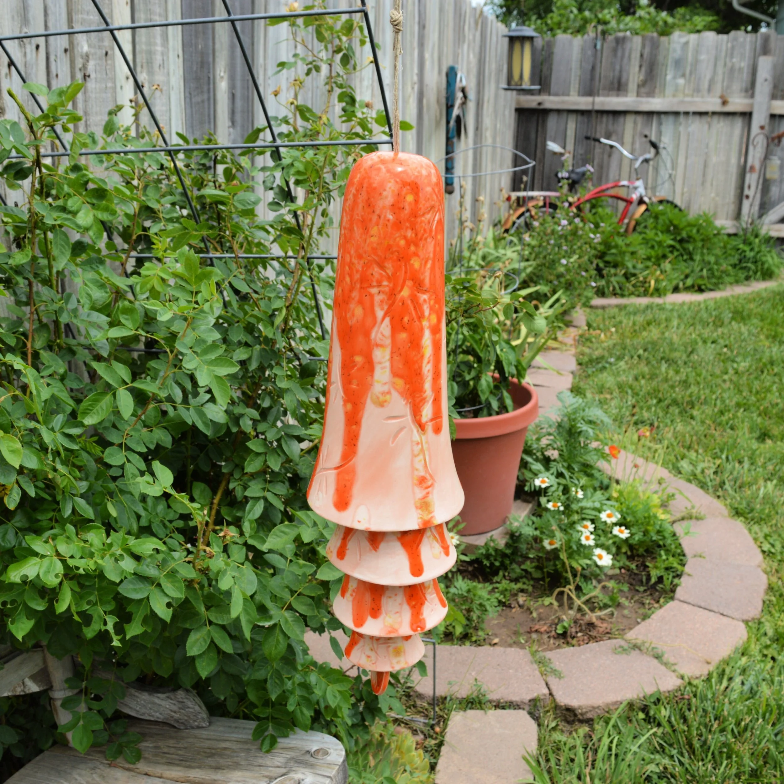 Ceramic Cone Bell Wind Chime -Pale Orange, Bright Orange, Cream