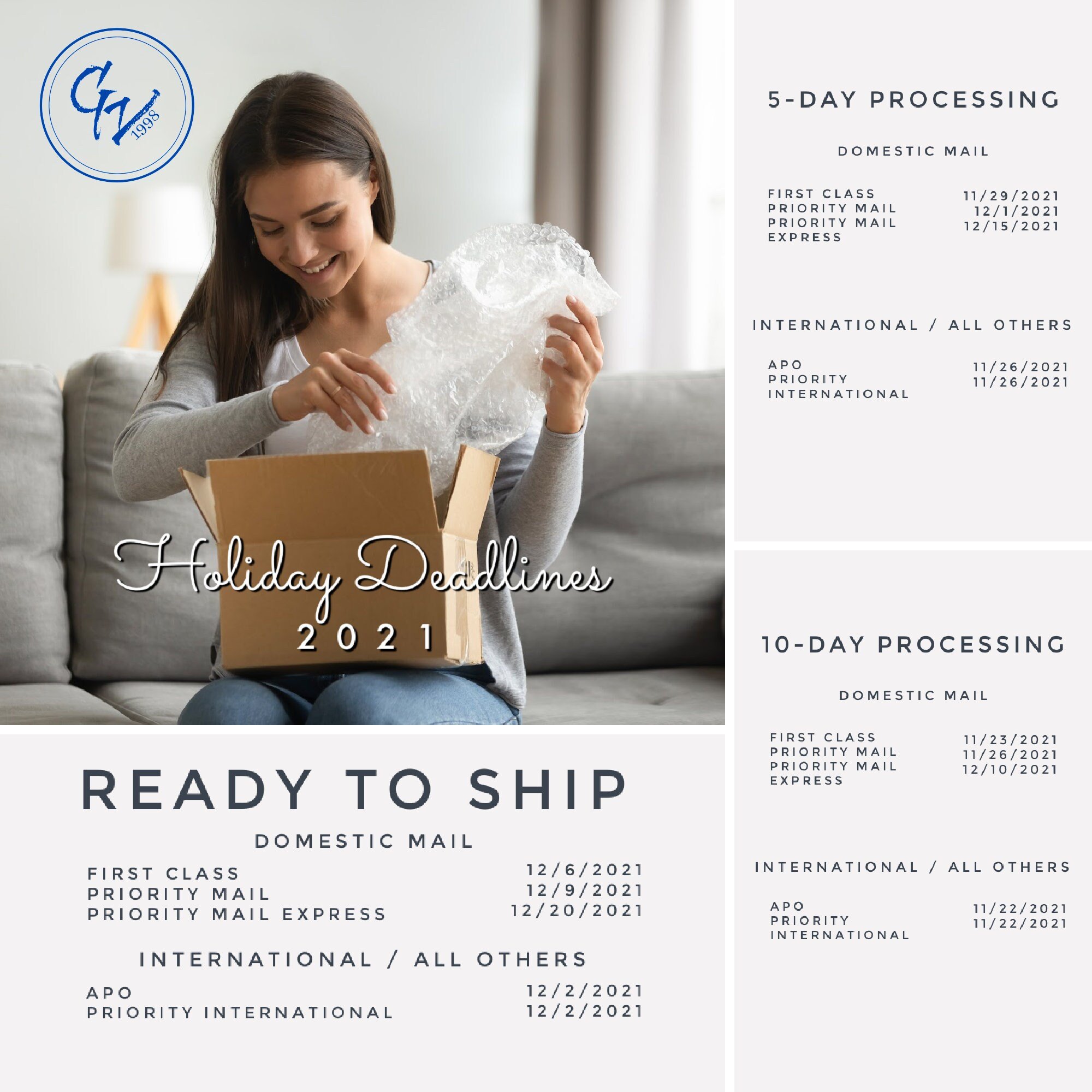 Unless noted, most finished items will ship within 3-10 business days. Ready to Paint Bisque generally ships within 3-4 weeks.